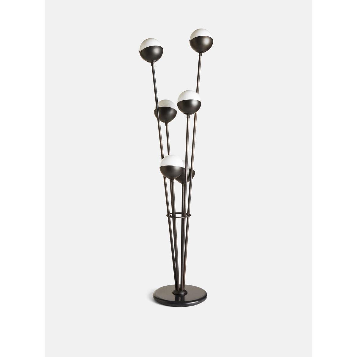 The lighting schemes in White City House and 180 House formed the inspiration for our Seed floor lamp, which features a cluster of bisected orbs connected to a raw brass frame. Ours is brushed to give the lamp its antique aesthetic, and is left without a protective coating. It therefore ages over time and develops a beautiful patina that adds character to new and old homes alike. Grounded by a honed Italian marble base, this floor lamp serves as a versatile lighting option for both narrow hallways and expansive living areas. Raw blackened brass frame Raw blackened brass and glass shades Brushed finish for an antique feel Honed Italian marble base Requires six x E12/ 2W max/ Pygmy LED dimmable bulbs Pair with the Seed chandelier Inspired by White City House and 180 House