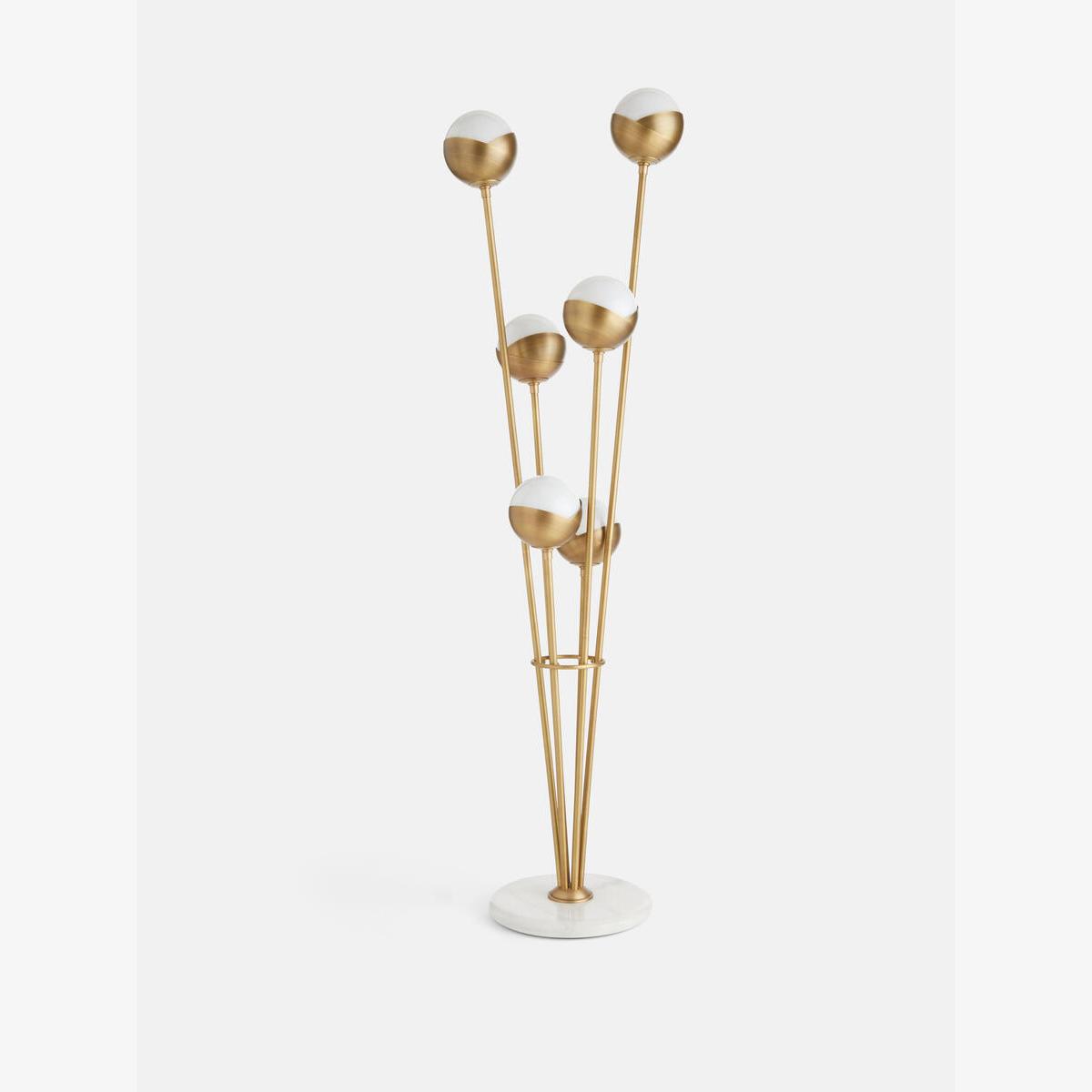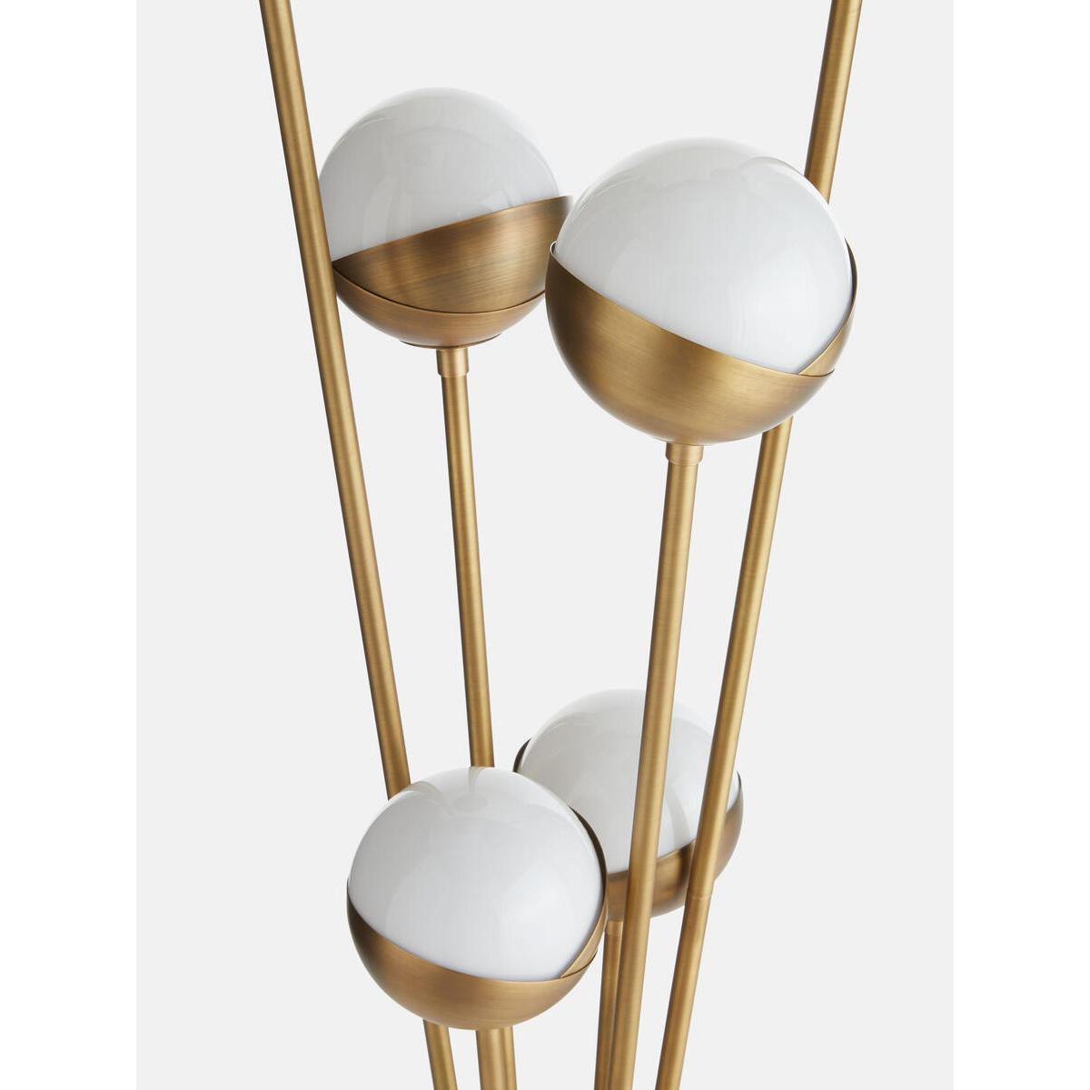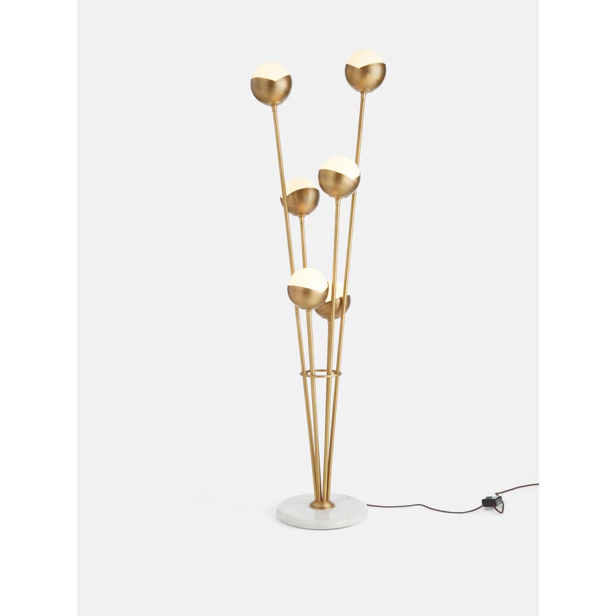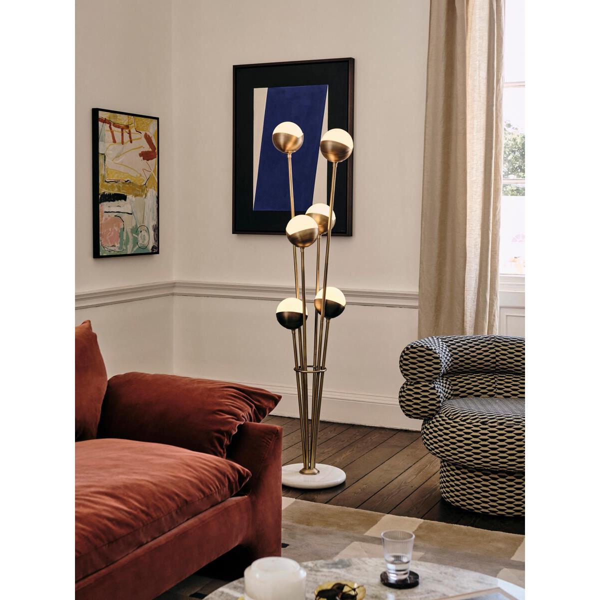 The lighting schemes in White City House and 180 House formed the inspiration for our Seed floor lamp, which features a cluster of bisected orbs connected to a solid brass frame. Also known as raw or uncoated brass, ours is brushed to give the lamp its antique aesthetic, and is left without a protective coating. It therefore ages over time and develops a beautiful patina that adds character to new and old homes alike. Grounded by a honed Italian marble base, this floor lamp serves as a versatile lighting option for both narrow hallways and expansive living areas. Raw solid brass frame Raw solid brass and glass shades Brushed finish for an antique feel Honed Italian marble base Requires six x E12/ 2W max/ Pygmy LED dimmable bulbs Pair with the Seed chandelier Inspired by White City House and 180 House