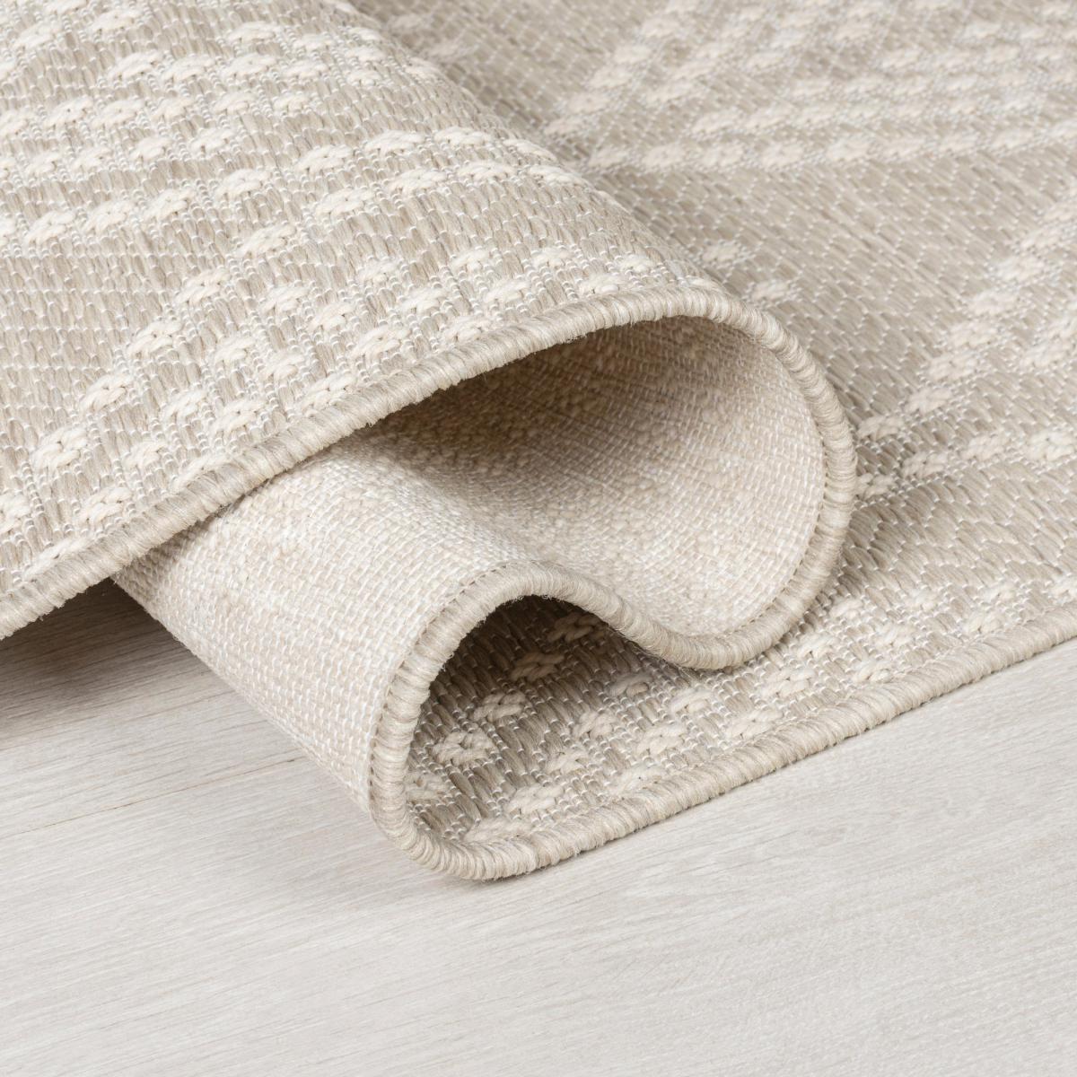 Add texture to your indoor and outdoor spaces with the Seed design. Pairing a neutral shade with contemporary leaf design in a textured pile. Our Indoor/Outdoor collections use a 100% polypropylene composition to make our designs perfect for both indoor and outdoor living. Built for the outdoors with weather-proof and UV-resistant qualities, don't worry about any mess, the Seed rug is stain-resistant and easy to clean with a simple hose down. The low-profile composition is perfect for sitting under furniture. We love using outdoor rugs to create social outdoor zones or add comfort underfoot in busy areas such as the kitchen. This is a hard wearing machine made rug suitable for indoor and outdoor use. When opening, re-roll your rug pile out and leave in a warm room for 24 hours before putting in place, this will help to reduce wrinkles and curling from packing. Turn your rug regularly to ensure even wear and reduce pressure marks from furniture. Do not pull any loose threads, please cut them carefully with scissors to remove. This rug is UV treated to prevent fading – however when not in use for extended periods roll the dry rug and store in a covered/shaded area. Before using any cleaning products on your rug, test an inconspicuous area first to ensure it does not affect the colour. Clean spills immediately by blotting with a clean dry white cloth - do not rub as this may stain the fibres. Vacuum your rug regularly to remove everyday dust. When using indoors we recommend the use of an anti-slip mat beneath your rug to prevent it from slipping and sliding out of place. When using outdoors please take care not to place on rough or sharp surfaces that may damage or pierce your rug. Please keep away from fire. Please do not leave babies or young children unsupervised on this rug.