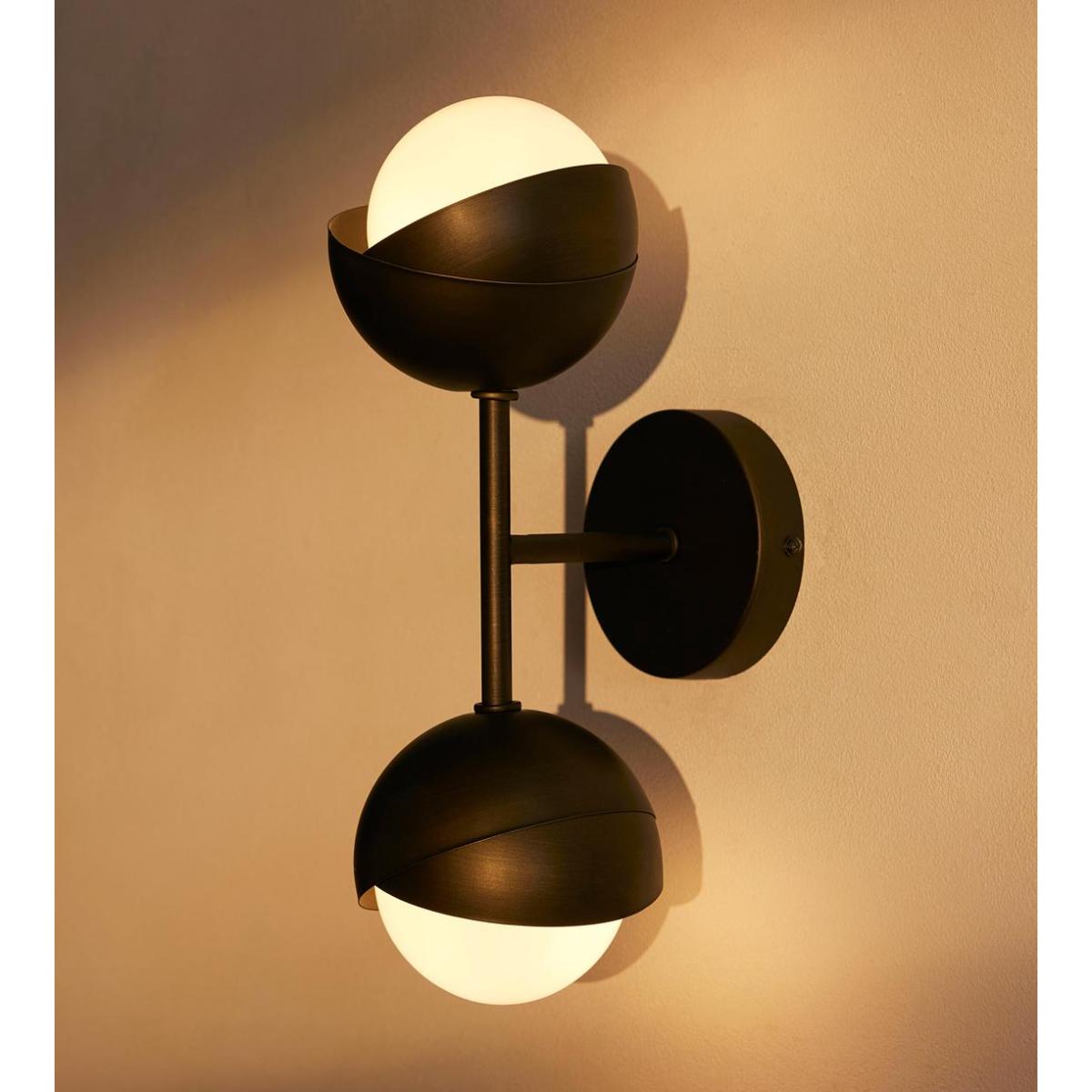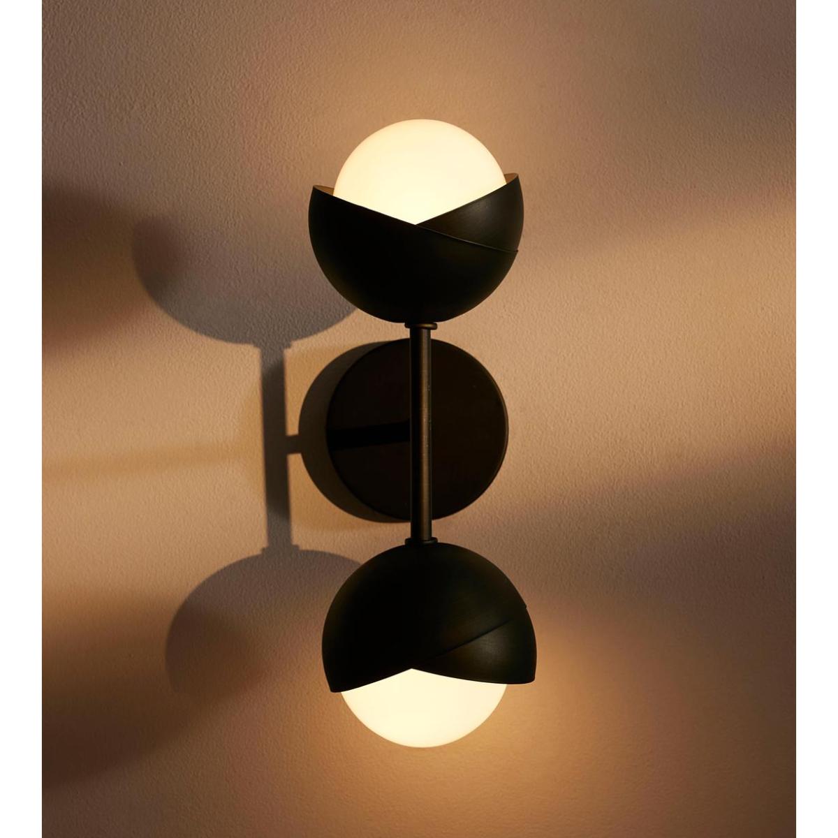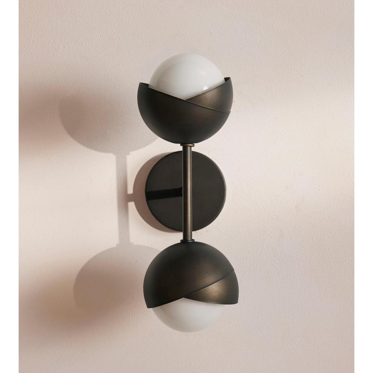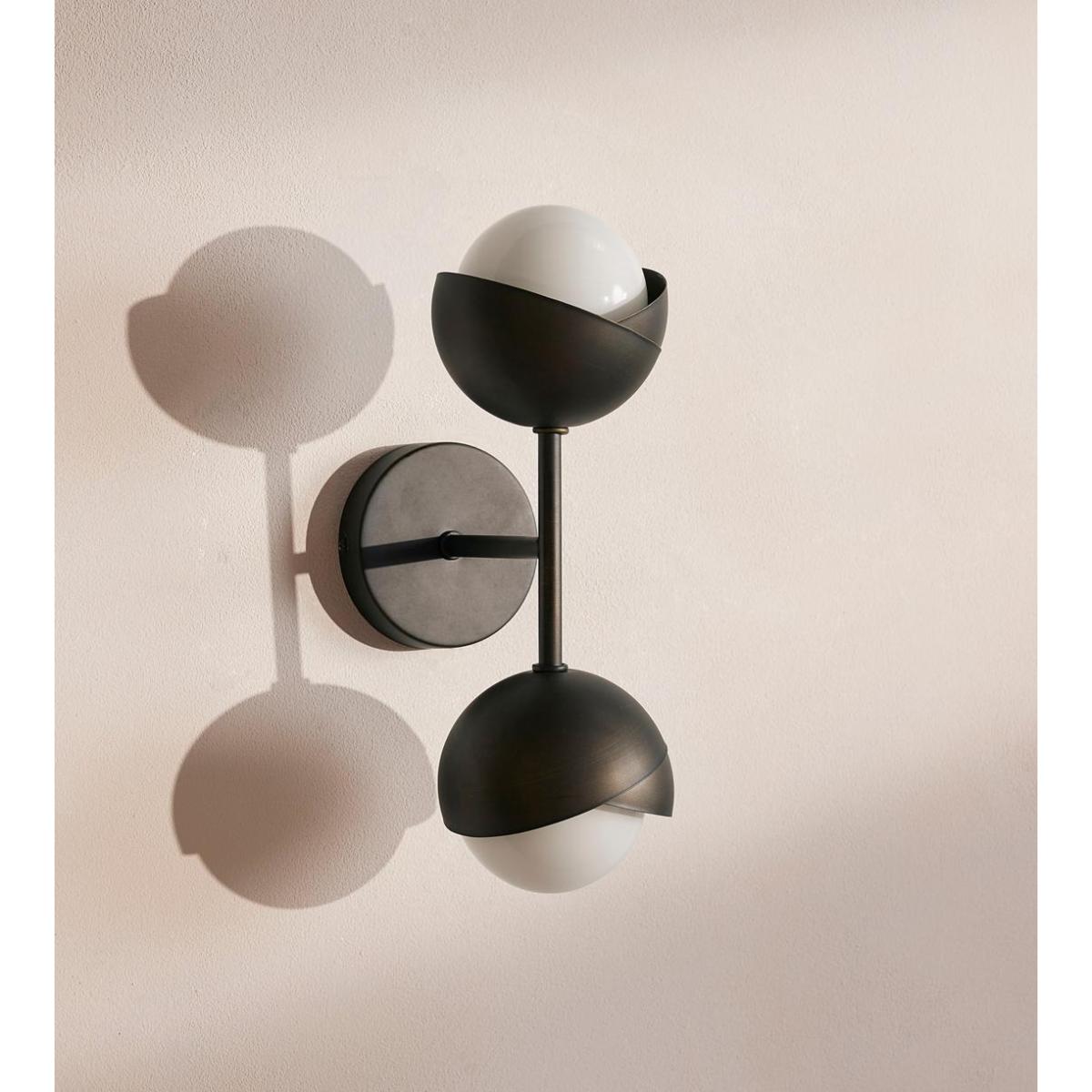 The lighting schemes in White City House and 180 House formed the inspiration for the Seed wall sconce. Comprising two bisected orbs in blackened brass plating, the wall sconce serves as a versatile lighting option that is suited to both narrow hallways and expansive living areas. Seed wall sconce Blackened brass plating Requires two x G9 / 28W max bulbs Inspired by White City House and 180 House