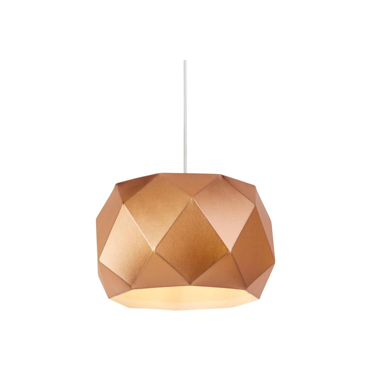 Modern geometric pendant light shade with a copper finish. Update your interiors without the need for an electrician with the contemporary copper Seeley ceiling pendant shade, exclusive to Pagazzi. Boasting a quirky and unique geometric shape, this ceiling pendant is finished in smooth copper effect. An easy- fit pendant, this ceiling shade can fit onto existing lamp holders and add a modern refresh into living areas, bedrooms and hallways. Style Tips! Pair this shade with one of our Yorth Lampholders for an ultra-modern style.