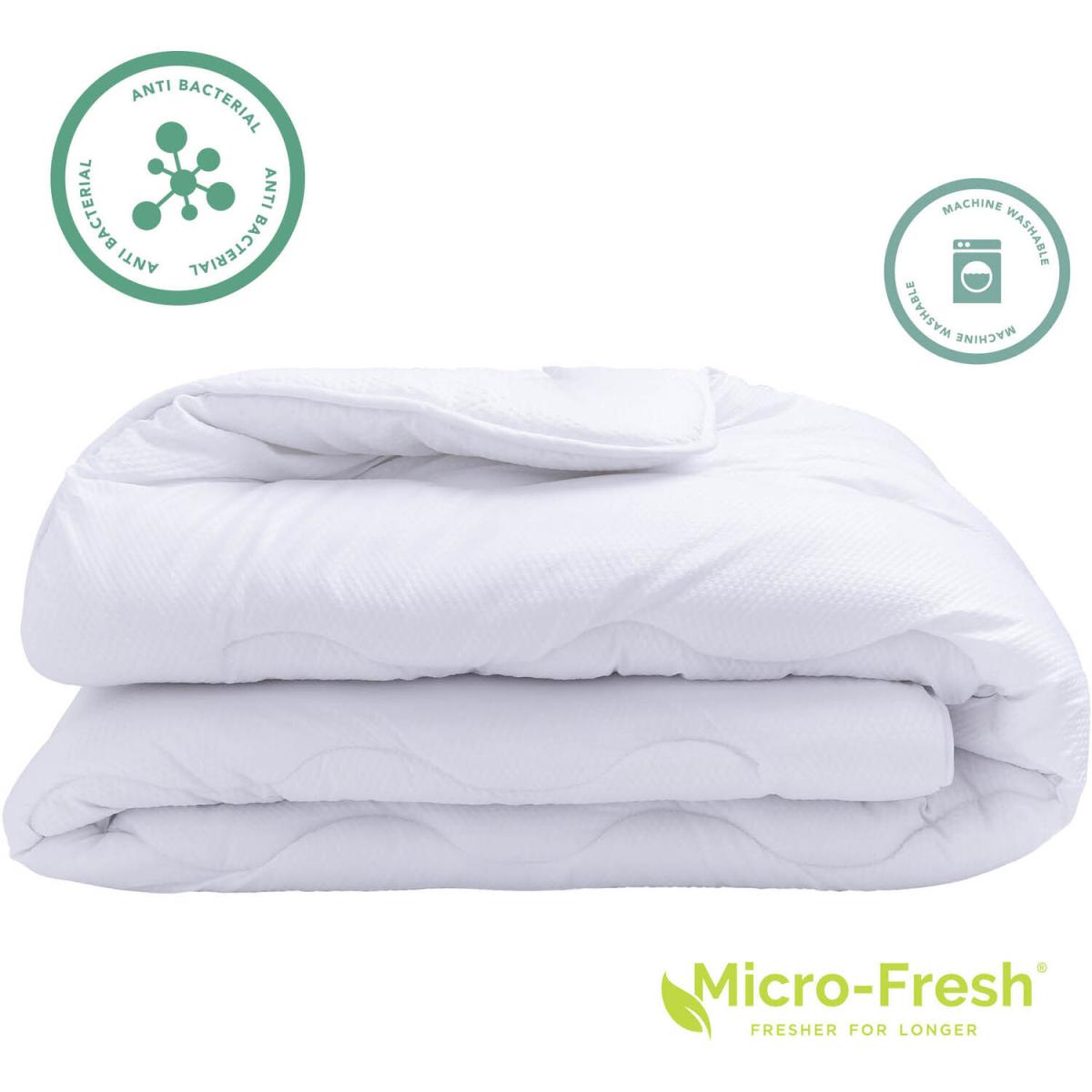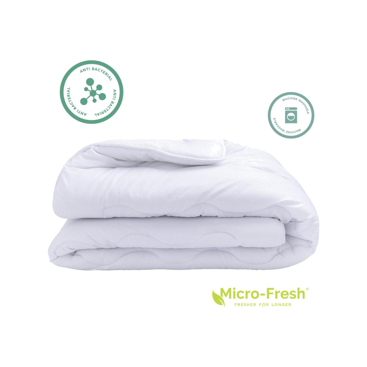 This anti-bacterial range features a super soft touch cover treated with Micro-Fresh which helps reduce dust mites and protect against bacteria. Keeping your bedding fresher for longer. Light and lofty, the fill remains evenly spread thanks to the stitch design.