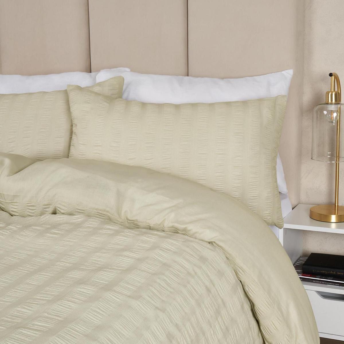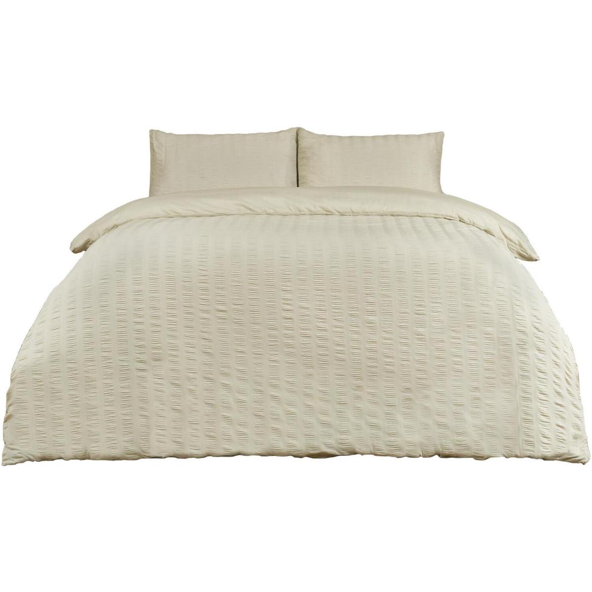 This contemporary duvet cover set from Highams is a bed linen design which will add a clean modern finish to any bedroom. With its ruffled seersucker design on the front, and the plain polycotton on the reverse, this set comes with matching pillowcase(s). This Hotel quality bedding set is made from a breathable, soft, comfortable and durable material, which will ensure a relaxing night's sleep, whilst retaining easy-care qualities.
