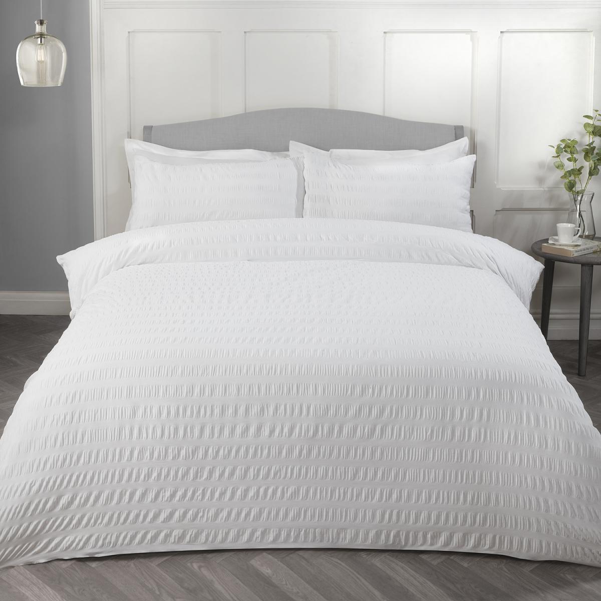 Simple and elegant, this Seersucker Duvet Set is comfortable to sleep with night after night. Rich in cotton for those warmer nights, the set has a classic striped, textured design that brings modern style to your bedroom. Thanks to the contemporary colour, this duvet sets easily matches your existing bedroom decor. It can also be accented with your scatter cushions or throw for an extra cosy atmosphere.