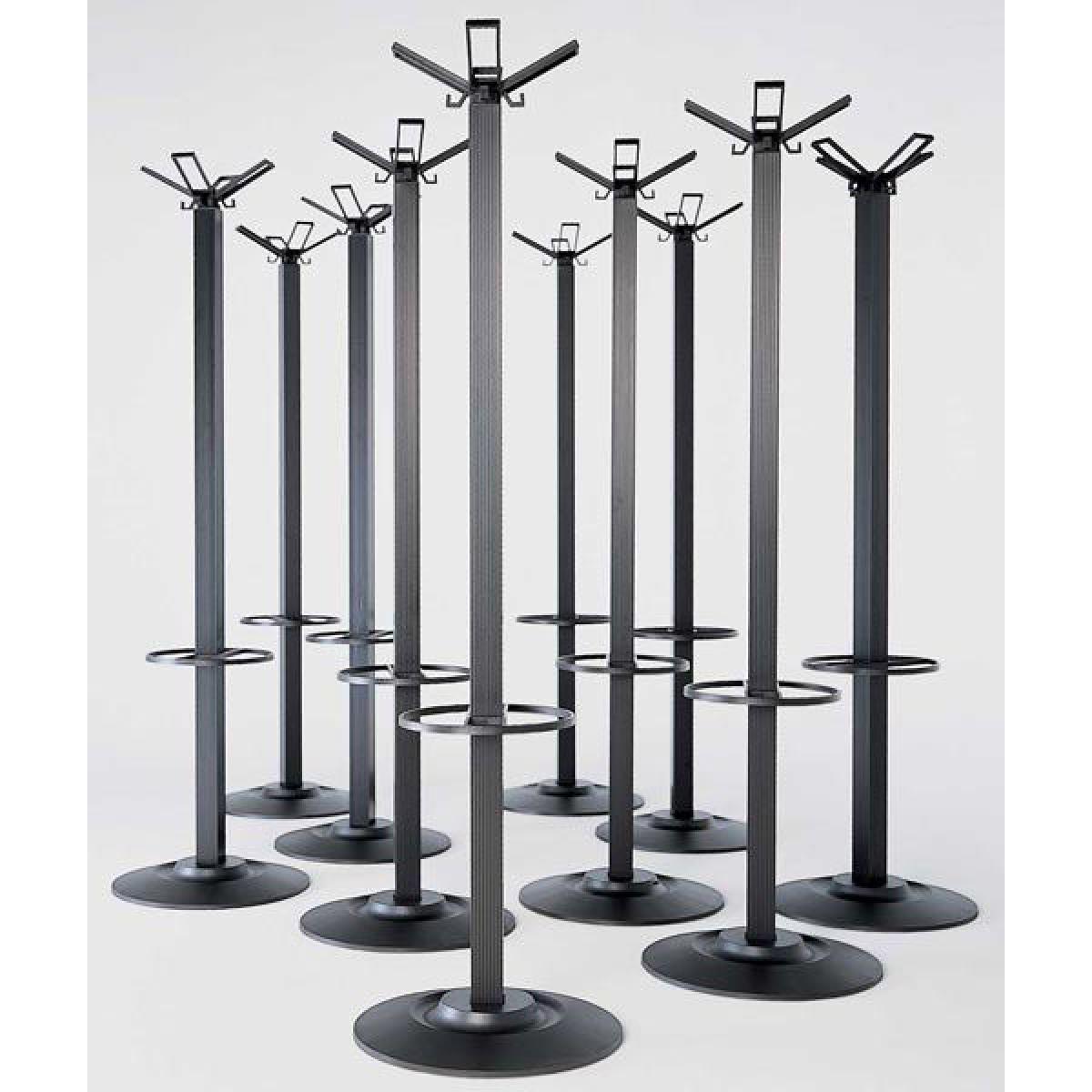 The coat hanger with umbrella holder is distinguished by its simple design and for the upper coat hanger element available in the same colour even in the wall version. The line is completed with the square-based basket made of ABS.