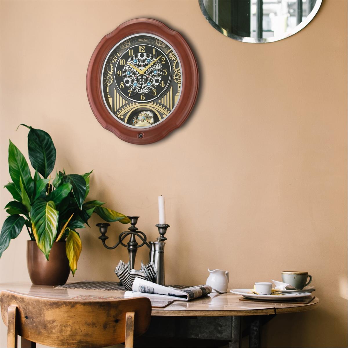 I love the Seiko Melody in Motion clock for its eye-catching blend of classic design and intricate detailing, which makes it a real statement piece. It works particularly well in interiors with vintage, eclectic, or traditional themes, where its decorative details can shine. When styling, consider placing it on a feature wall with complementary metallic accents or antique furniture to highlight its timeless appeal. Practical tips include pairing it with simple, understated surrounds to let the clock’s movement and charm take centre stage, and ensuring it hangs at eye level for optimal viewability. This clock is a fantastic way to inject a touch of elegance and character into any room.