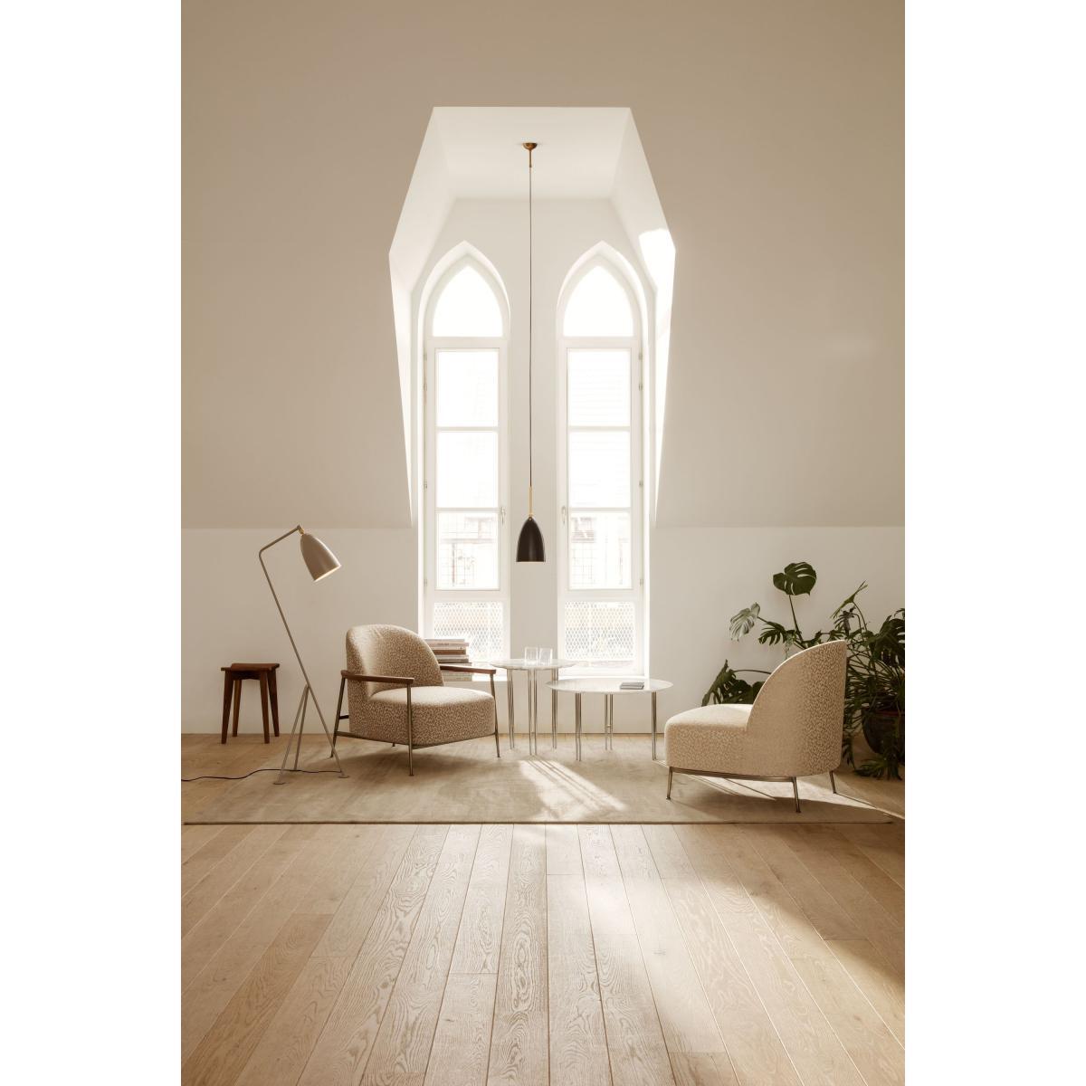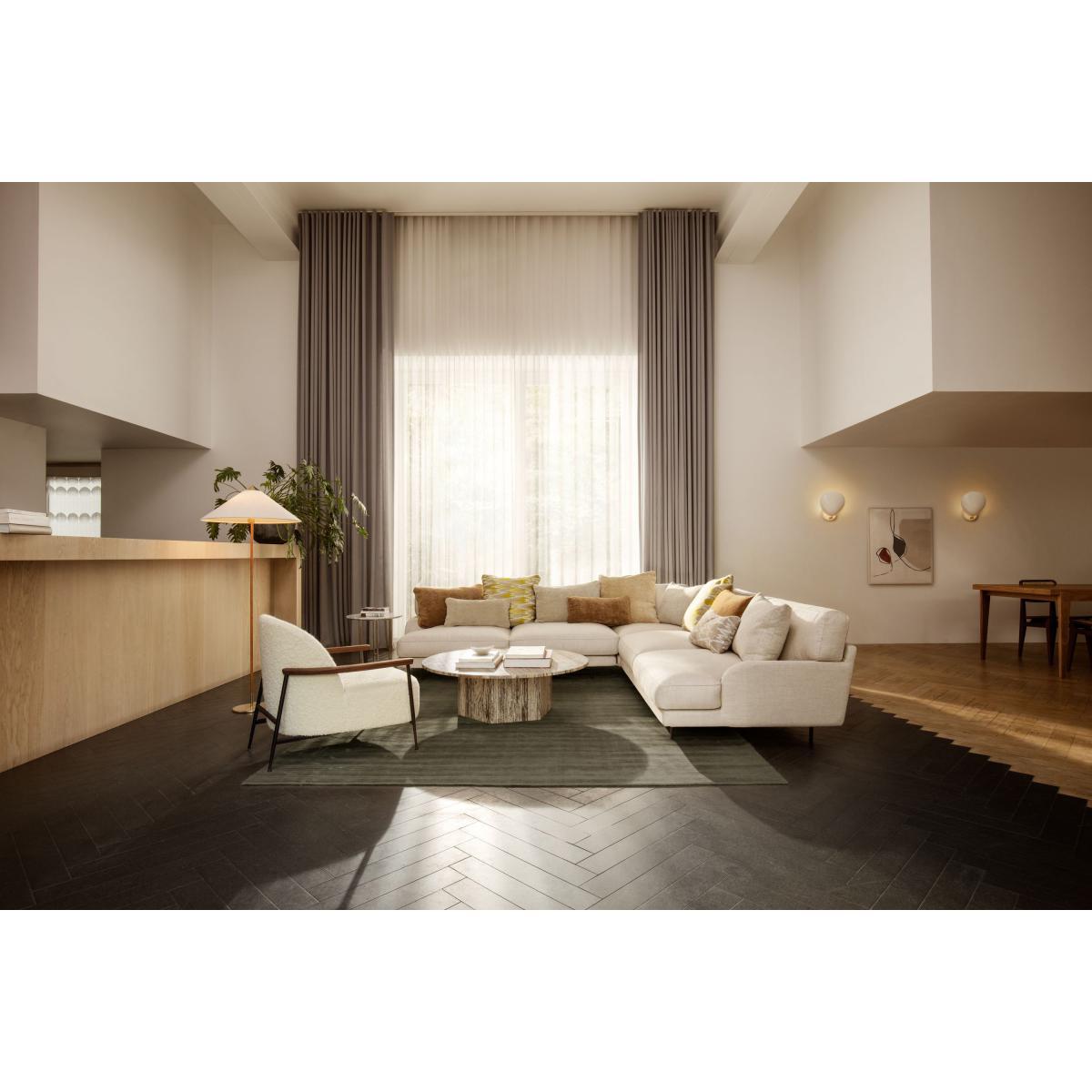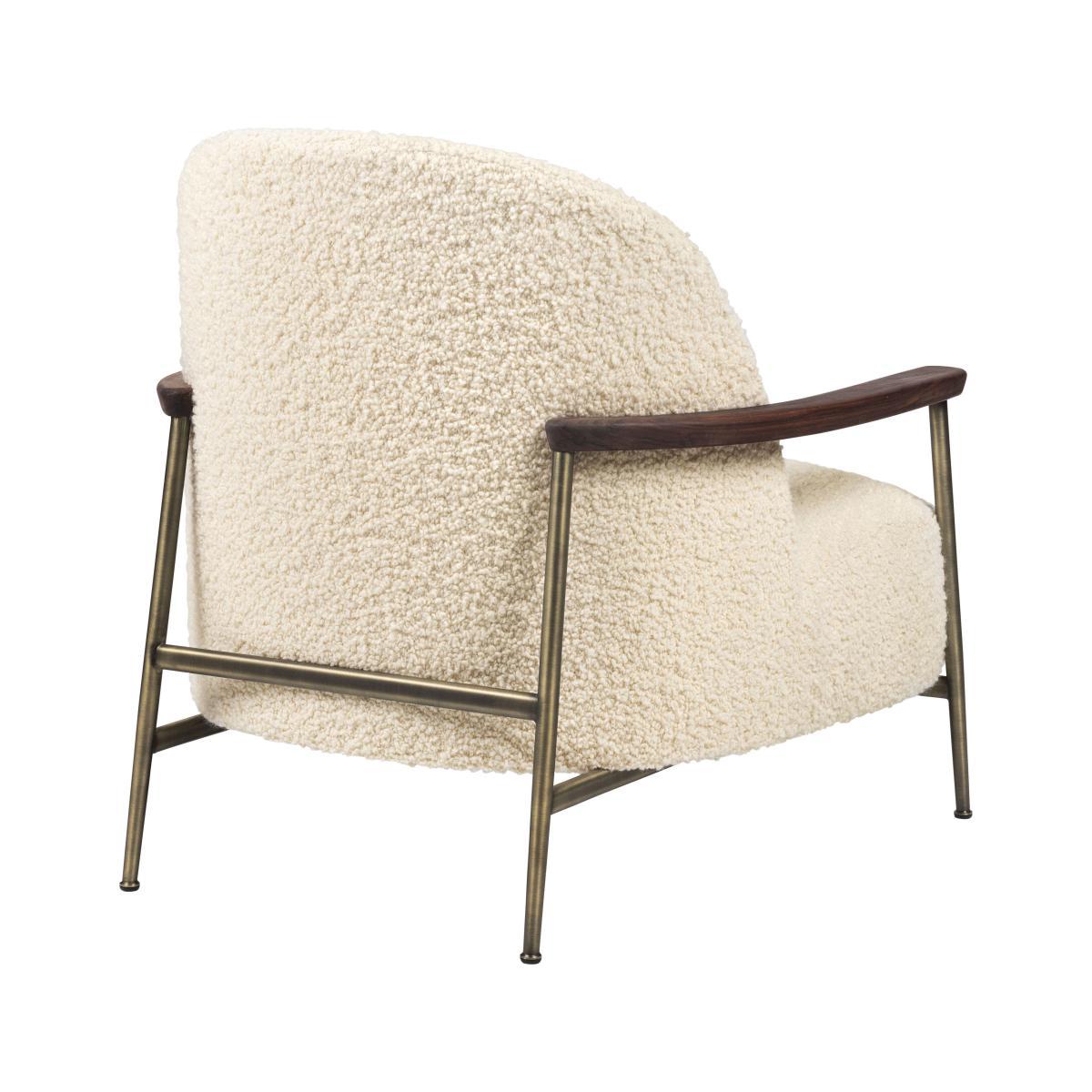 Elegant and charismatic, the Sejour low armchair is a delicious blend of tradition and modernity. It offers a superb combination of refined materials: antique brass structure, armrests in walnut and upholstery in soft looped alpaca wool fabric, a tactile, cosy, comforting material. Despite its compact dimensions, the Sejour armchair is extremely comfortable with its rounded shapes, thick padding and curved backrest. The covering is in Artemidor fabric from Dedar: Alpaca wool and cotton make up this loop fabric. The irregularity of the surface is the distinctive feature of the fabric, warm and soft to the touch. Artemidor is durable and natural.