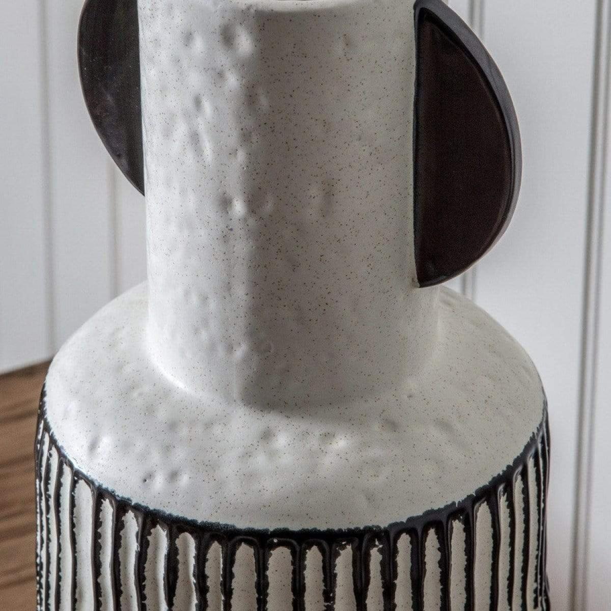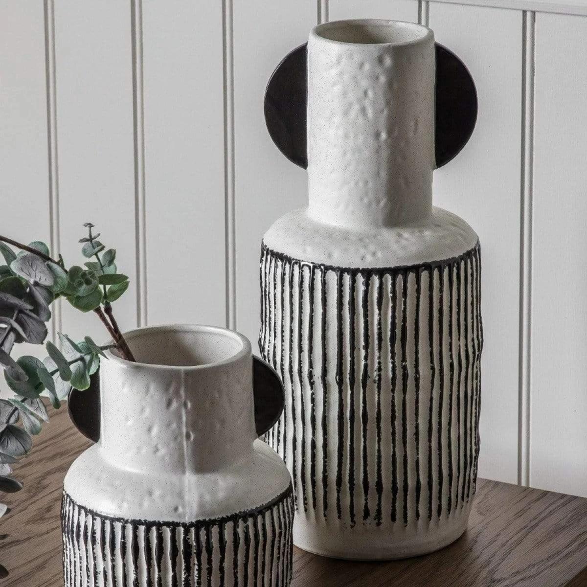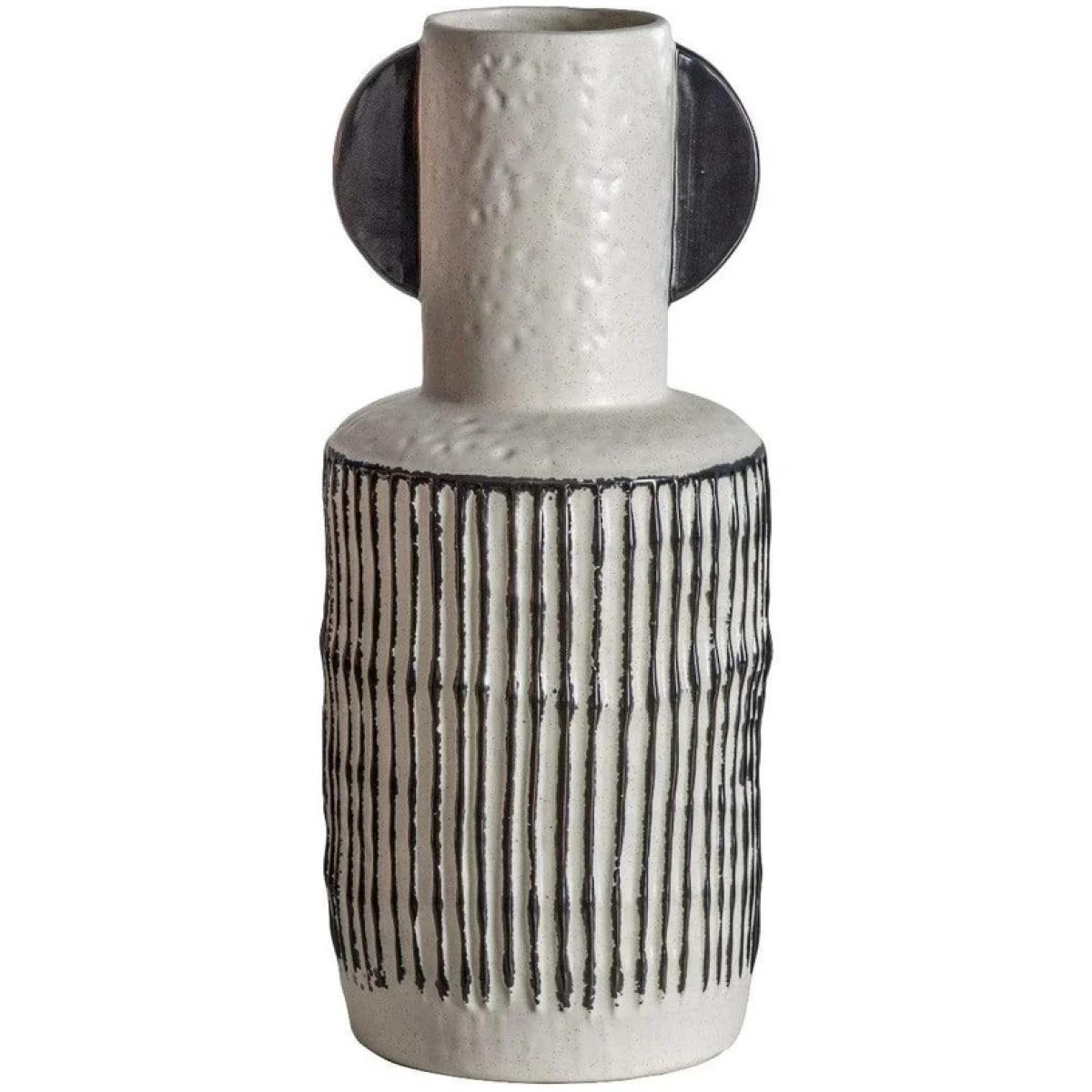 The Seki vase in brown and cream is a versatile piece that works well in both contemporary and eclectic interiors. I love how its textured surface and subtle colour palette add visual interest without overpowering a space. It’s perfect for showcasing single stems or dried arrangements, making it practical for a variety of styles. For best styling, consider placing it on a sideboard or mantel with other natural materials or minimalistic decor to highlight its geometric form. In more layered interiors, it can serve as a focal point on a dining table or console, bringing warmth and texture to the room.