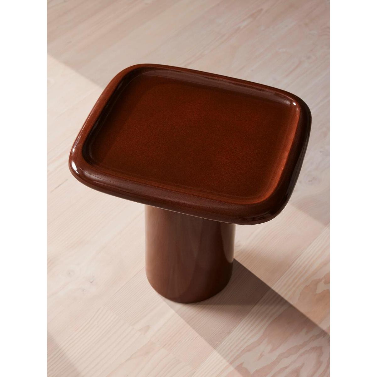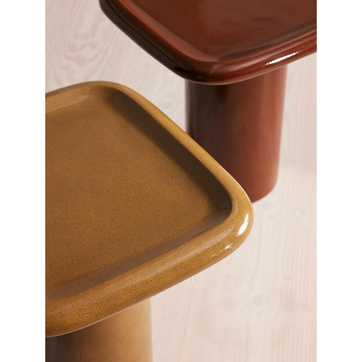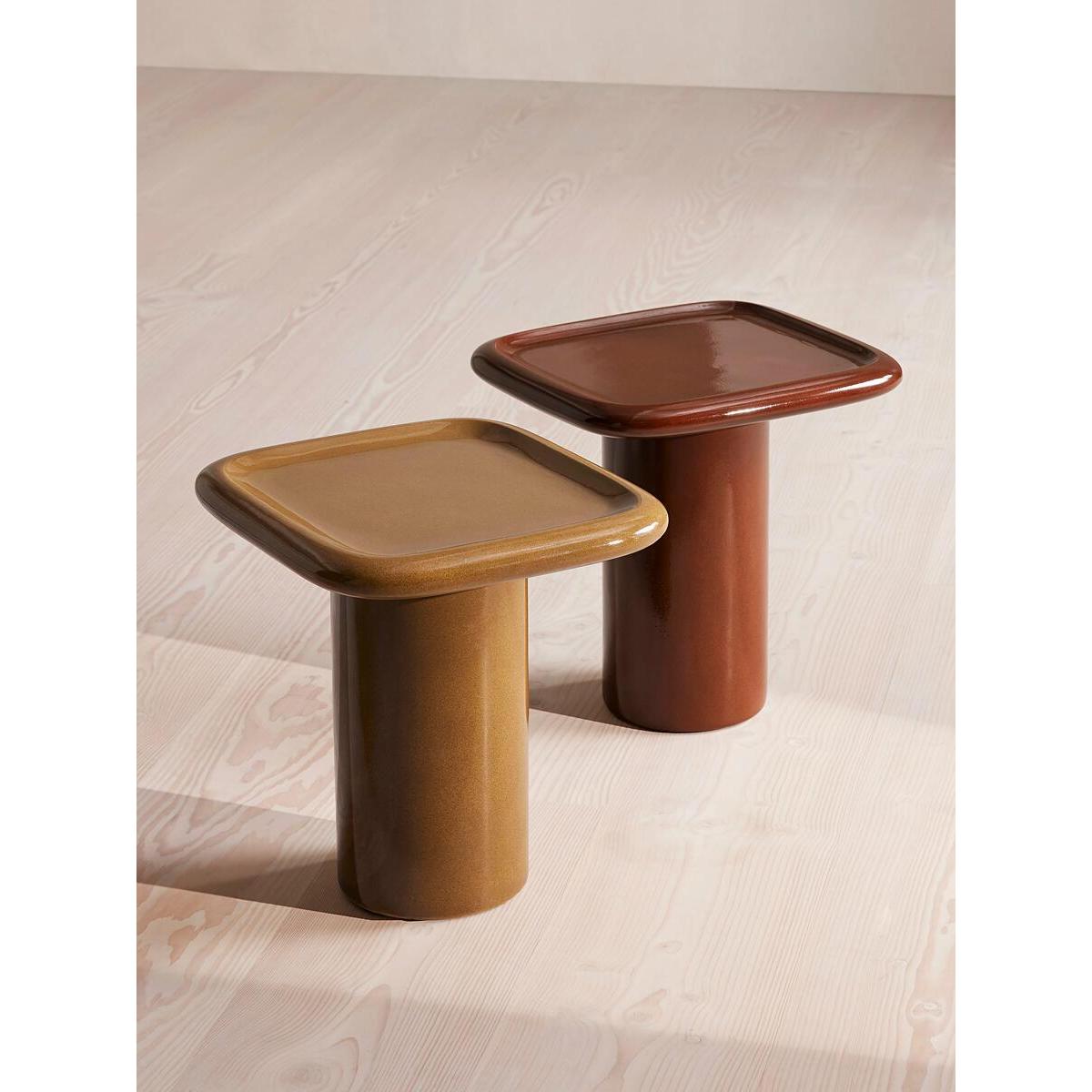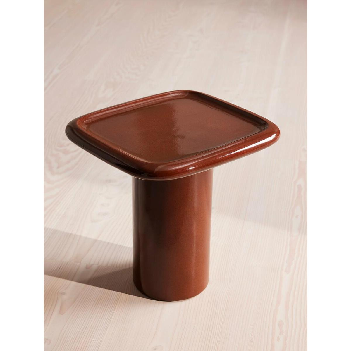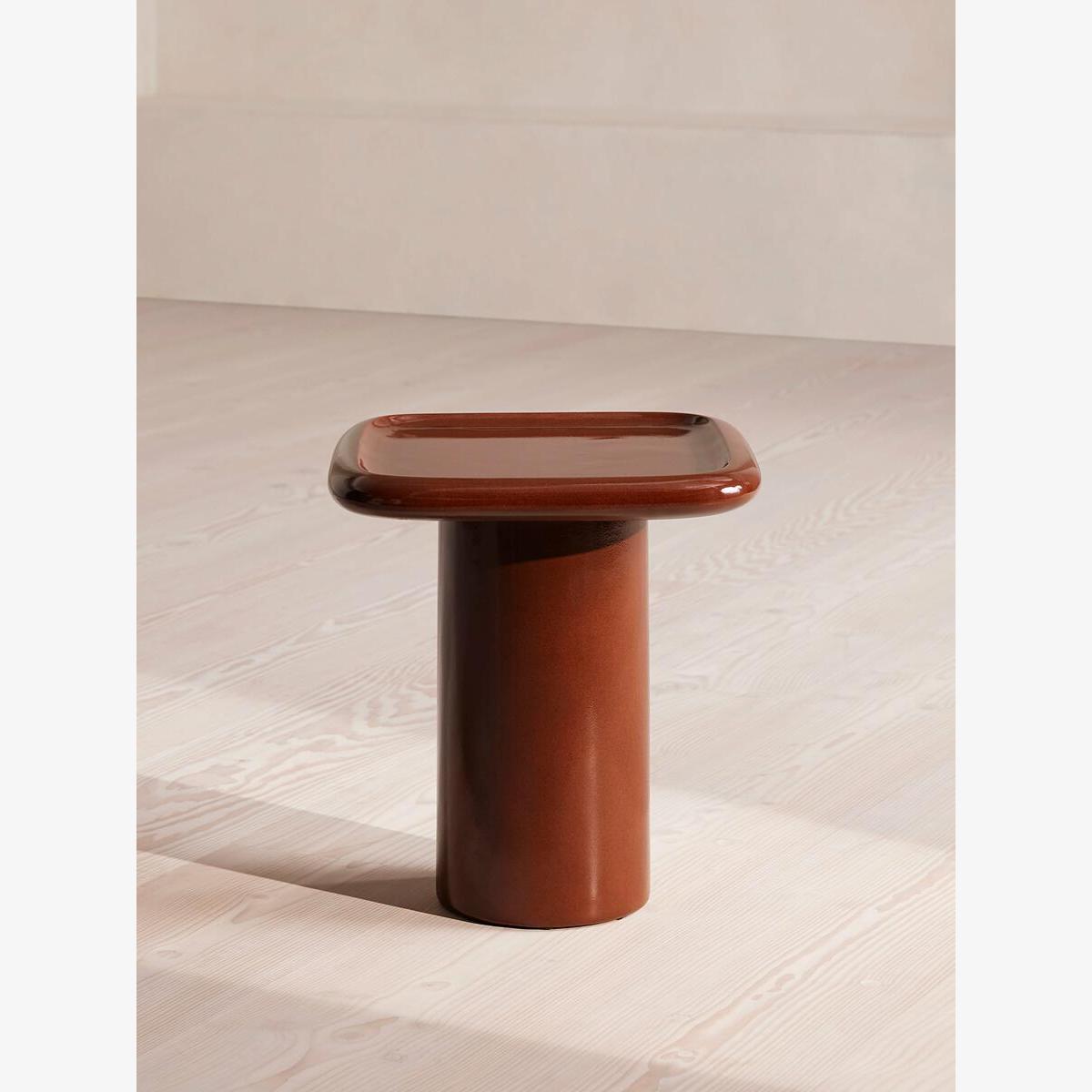 Available as both a coffee table and side table, our Selby design brings the inside out with a contemporary House feel. Rounded, lipped edges soften this piece with a translucent glazed top forming the Modernist-inspired shape, inspired by Soho House Rome. With its rich maroon colour, pair either side of your outdoor seating to add depth and interest. Outdoor side table Also available as a coffee table Crafted from reinforced concrete Maroon colour Also available in Ochre Transluscent glazed top Rounded, lipped edges Pedestal base Inspired by Soho House Rome