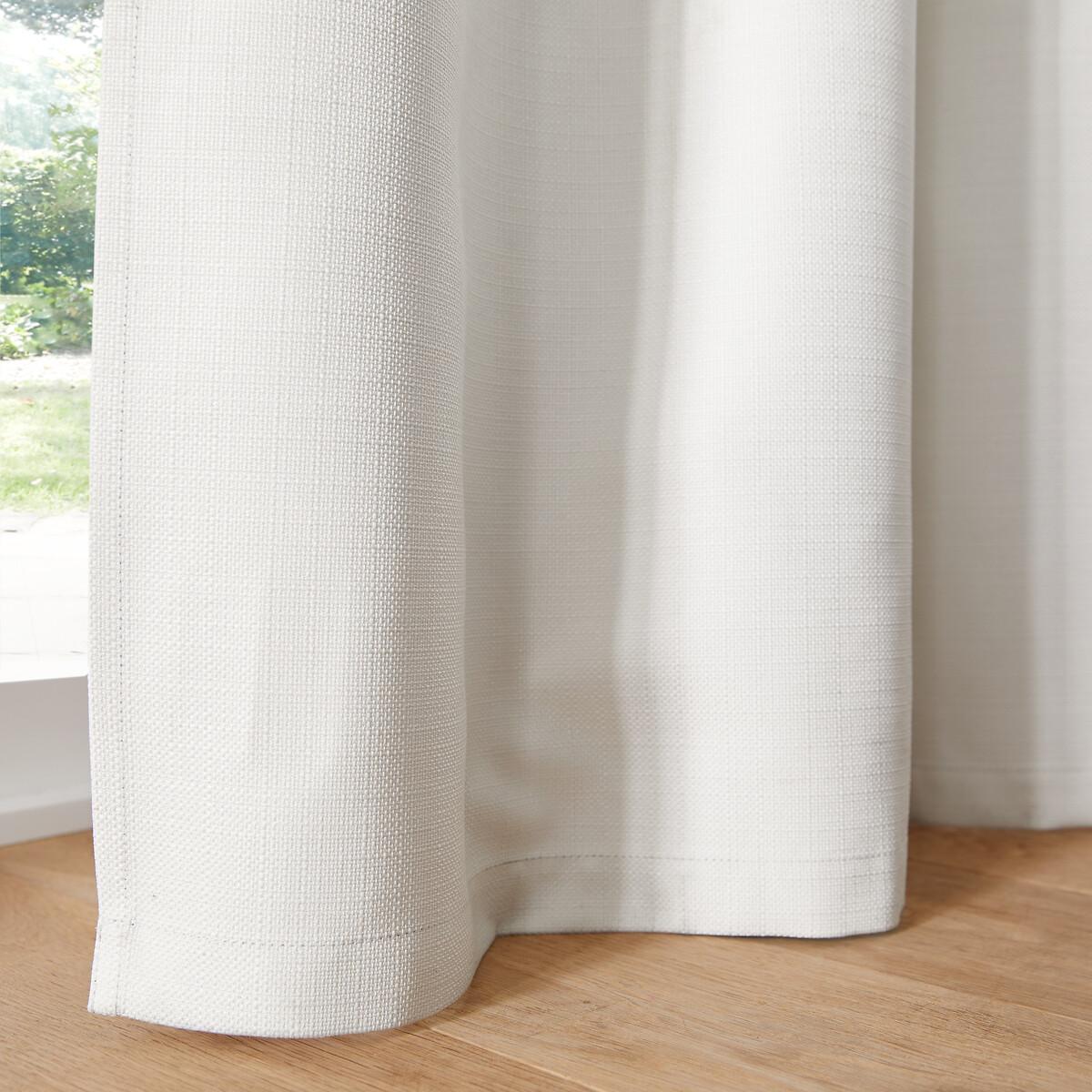 Preserve the privacy of your interior in style with the Select recycled polyester blackout curtain with hidden tabs. Its textured fabric will create a cozy and contemporary atmosphere, while keeping the light out. This blackout curtain blocks out light and keeps your home private. Perfect for a bedroom without shutters. The tabs give a regular wave to the curtain and an impeccable straight fall. Hidden behind the fabric for an impeccable finish, they also hide the rod. Product Details • Blackout • 100% recycled polyester, (240g/m²) • Blackout lining : 100% recycled polyester • Top finish : hidden legs • Finished bottom :Plain hemmed edging. To help you in the choice and maintenance of your curtains, do not hesitate to consult our guide by typing "Curtain Buying Guide" in our search engine on the site. Care Advice • Machine washable at 30°C • Maximum shrinkage after washing : 3% approx. Fabrics made from natural fibres may shrink in the first wash. Always wash your curtains before making any alterations. • Do not tumble dry • If you don't need to iron them (linen curtains, Voile Panel...), let the curtains air dry by hanging them immediately after washing, making sure to spread them out to their full width. • If you want to iron your curtains, we recommend using a low-temperature steam iron or a steamer. Dimensions • Drop 180 x Width 140cm • Drop 220 x Width 140cm • Drop 260 x Width 140cm • Drop 350 x Width 140cm • Recycled polyester. Using recycled polyester is all about conserving resources and reducing waste. • OEKO-TEX® Standard 100. Standard 100 certification by OEKO-TEX® tests textile products for harmful substances via an independent, international label.