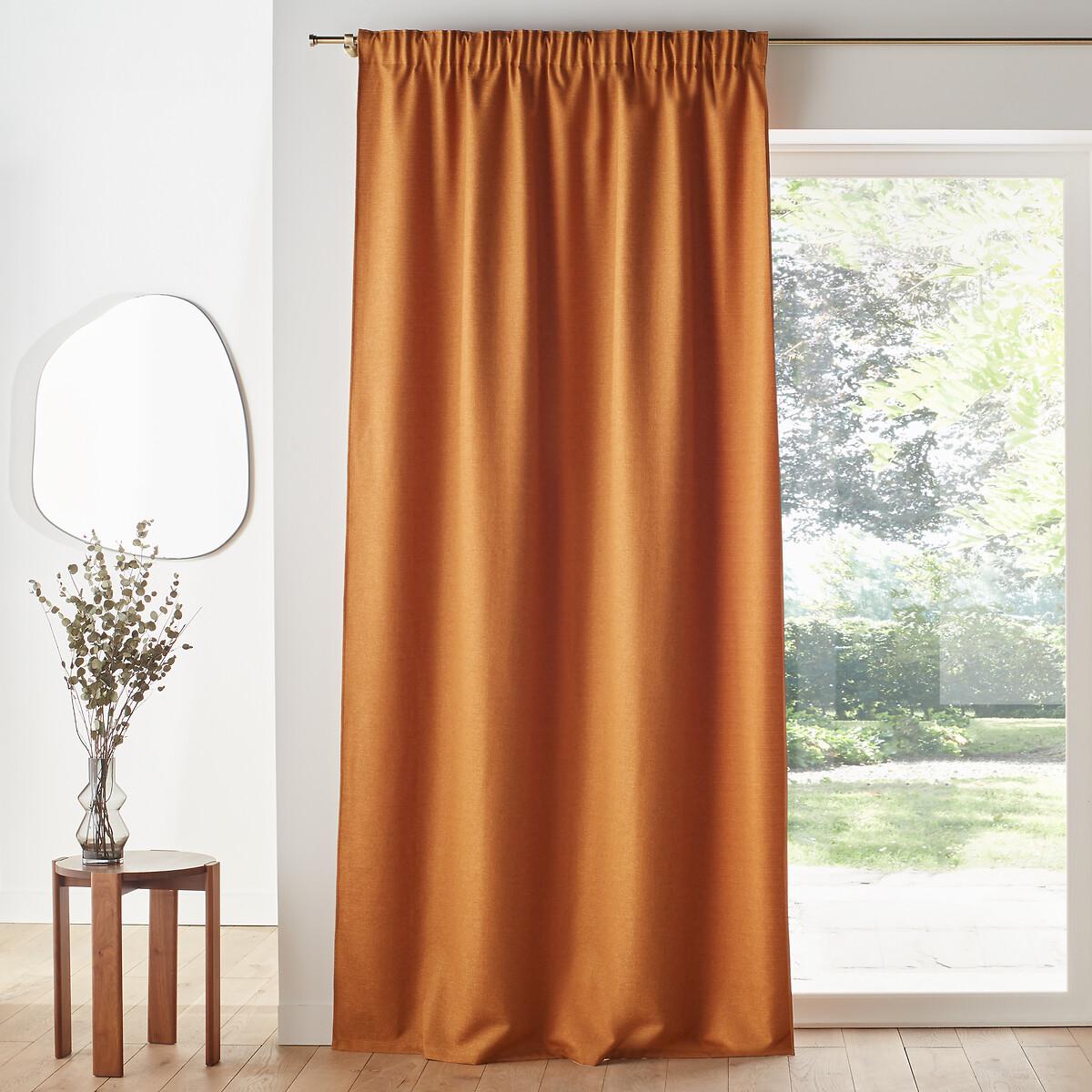Preserve the privacy of your home in style with the Select Recycled Polyester Gathered Blackout Curtain. Its textured fabric will create a cozy and contemporary atmosphere, while keeping the light out. This blackout curtain blocks out light and keeps your home private. Perfect for a bedroom without shutters. The gathering braid creates pleats according to the spacing you want. Several levels of hooks let you choose the height to leave the curtain rod visible or not. Product Details • Blackout • 100% recycled polyester, (240g/m²) • 100% recycled polyester blackout lining • Top finish : gathering tape • Finished bottom :Plain hemmed edging. To help you in the choice and maintenance of your curtains, do not hesitate to consult our guide by typing "Curtain Buying Guide" in our search engine on the site. Care Advice • Machine washable at 30°C • Maximum shrinkage after washing : 3% approx. Fabrics made from natural fibres may shrink in the first wash. Always wash your curtains before making any alterations. • Do not tumble dry • If you don't need to iron them (linen curtains, Voile Panel...), let the curtains air dry by hanging them immediately after washing, making sure to spread them out to their full width. • If you want to iron your curtains, we recommend using a low-temperature steam iron or a steamer. Dimensions • Drop 180 x Width 140cm • Drop 220 x Width 140cm • Drop 260 x Width 140cm • Drop 350 x Width 140cm • Recycled polyester. Using recycled polyester is all about conserving resources and reducing waste. • OEKO-TEX® Standard 100. Standard 100 certification by OEKO-TEX® tests textile products for harmful substances via an independent, international label.