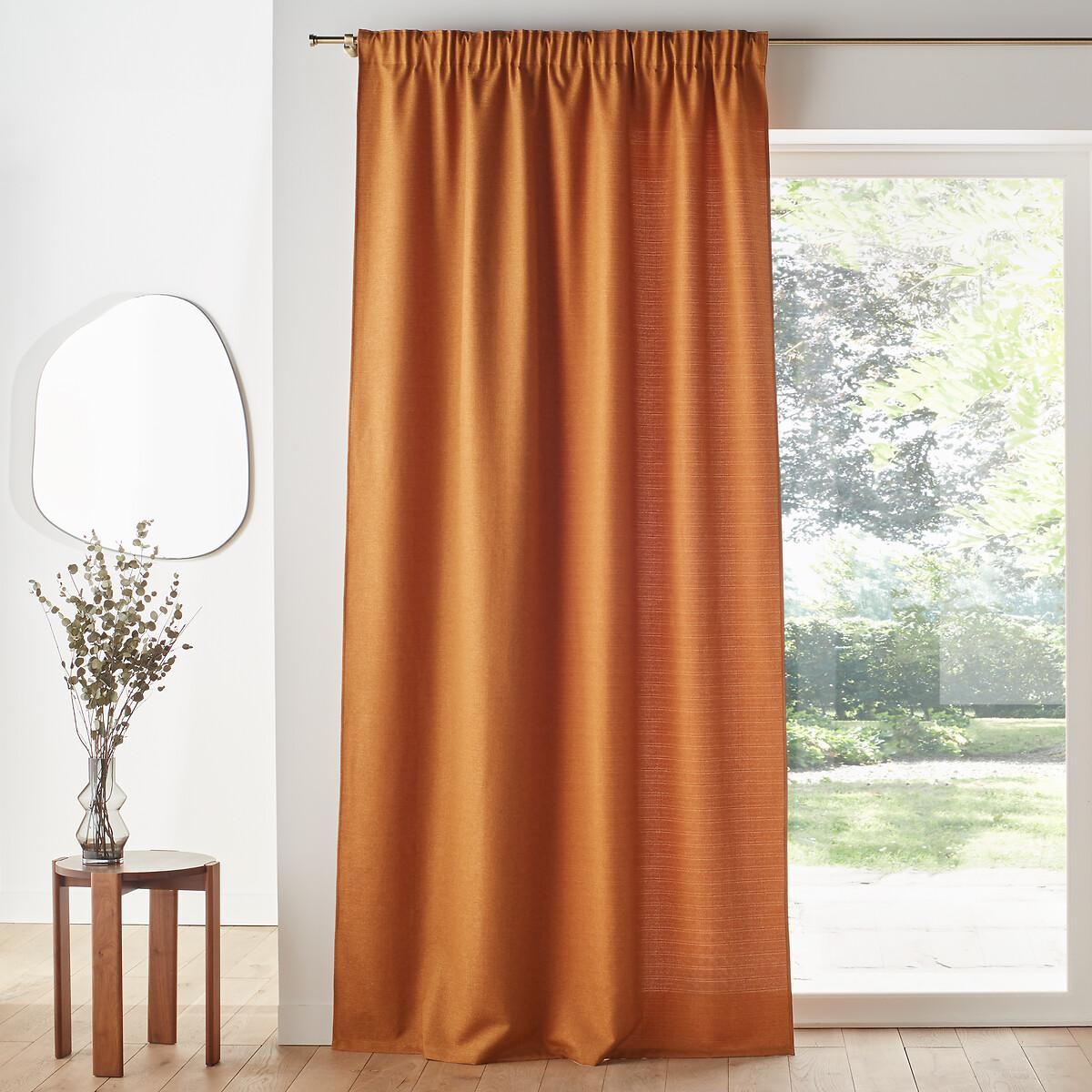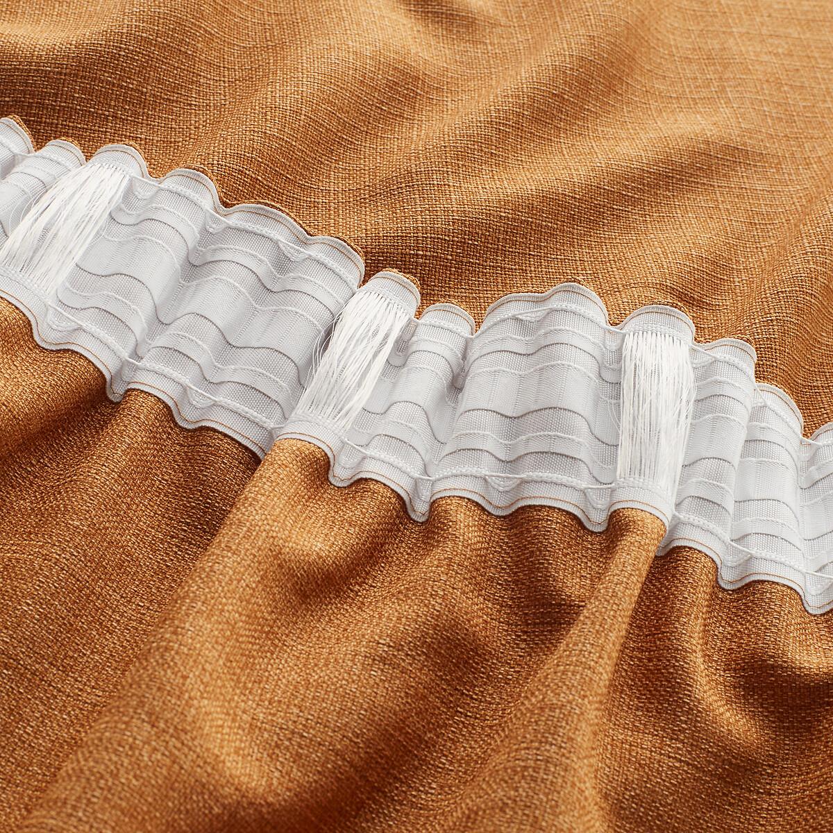 Preserve the privacy of your interior in style with the Select recycled polyester gathered curtain. Its textured fabric will create a cozy and contemporary atmosphere at the same time.. Light and airy, polyester sifts outdoor light. Easy to care for, it does not crease and does not require ironing.. The gathering braid creates pleats according to the spacing you want. Several levels of hooks let you choose the height to leave the curtain rod visible or not. Product Details • Screening • 100% recycled polyester, (240g/m²) • Top finish : gathering tape • Finished bottom : Plain hemmed edging. To help you in the choice and maintenance of your curtains, do not hesitate to consult our guide by typing "Curtain Buying Guide" in our search engine on the site. Care Advice • Machine washable at 30°C • Maximum shrinkage after washing : 3% approx. Fabrics made from natural fibres may shrink in the first wash. Always wash your curtains before making any alterations. • Do not tumble dry • If you don't need to iron them (linen curtains, Voile Panel...), let the curtains air dry by hanging them immediately after washing, making sure to spread them out to their full width. • If you want to iron your curtains, we recommend using a low-temperature steam iron or a steamer. Dimensions • Drop 180 x Width 140cm • Drop 220 x Width 140cm • Drop 260 x Width 140cm • Drop 350 x Width 140cm • Recycled polyester. Using recycled polyester is all about conserving resources and reducing waste. • OEKO-TEX® Standard 100. Standard 100 certification by OEKO-TEX® tests textile products for harmful substances via an independent, international label.