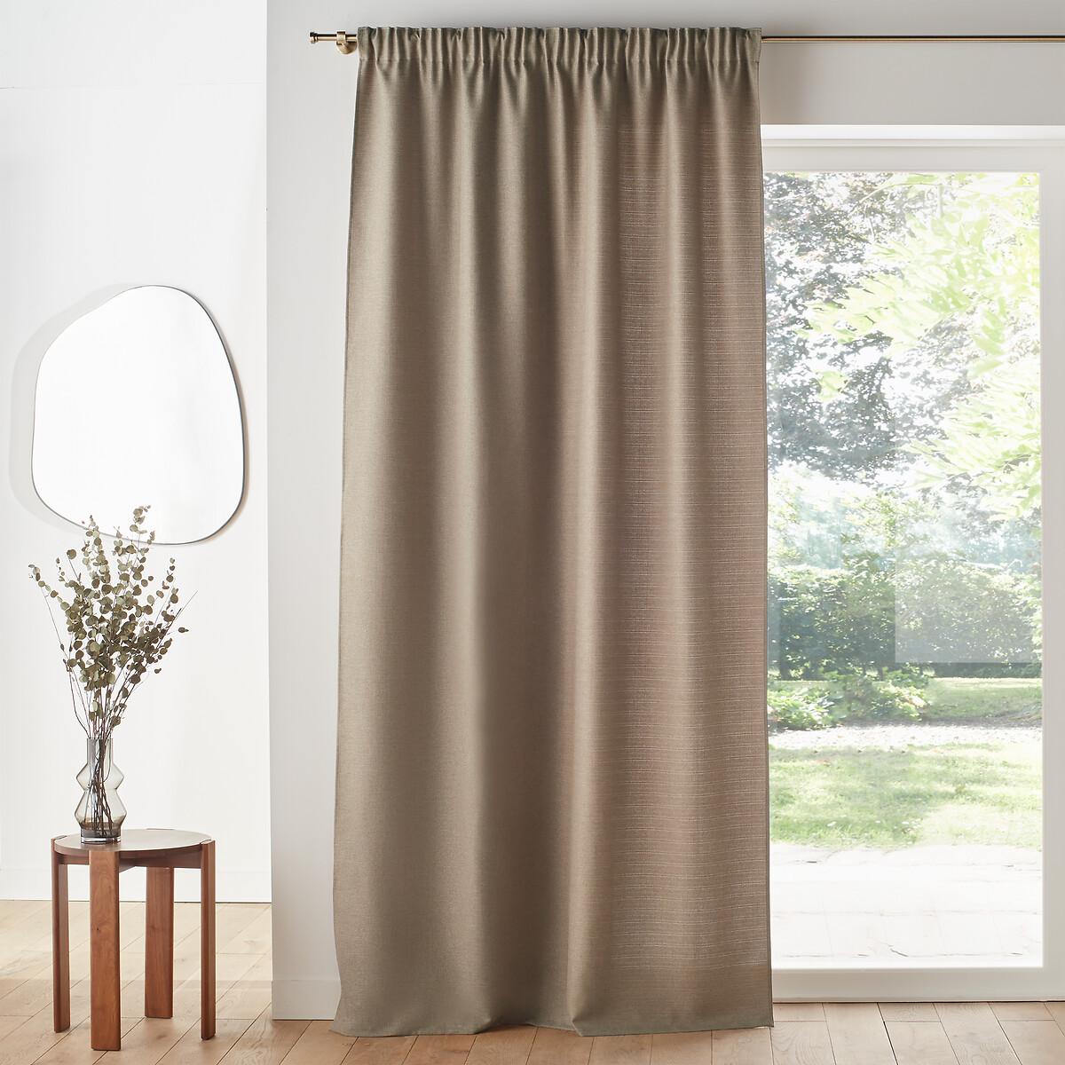 Preserve the privacy of your interior in style with the Select recycled polyester gathered curtain. Its textured fabric will create a cozy and contemporary atmosphere at the same time.. The gathering braid creates pleats according to the spacing you want. Several levels of hooks let you choose the height to leave the curtain rod visible or not. Product Details • 100% polyester • Recycled polyester • Gathering braid finish • Fixing hooks sold on our site. • Finished hem Care Advice • Machine washable. Sizes • Drop 180 x Width 140cm • Drop 220 x Width 140cm • Drop 260 x Width 140cm • Drop 350 x Width 140cm • Recycled polyester. Using recycled polyester is all about conserving resources and reducing waste. • OEKO-TEX® Standard 100. Standard 100 certification by OEKO-TEX® tests textile products for harmful substances via an independent, international label.