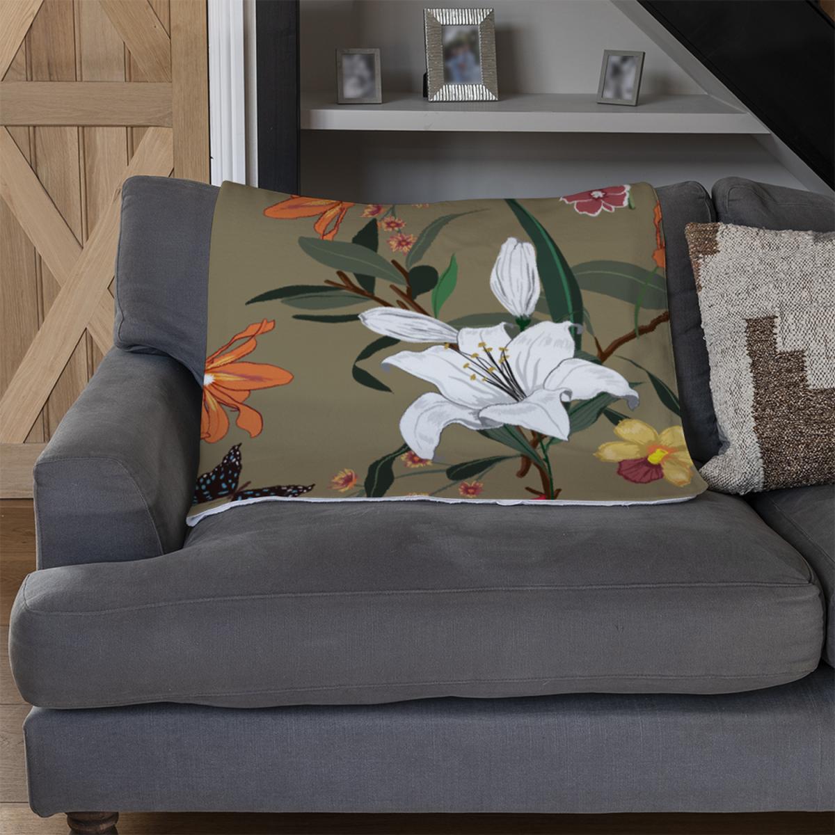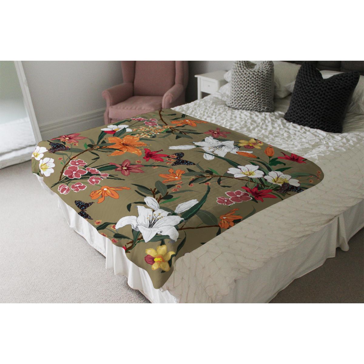 Selection Of Flowers Blanket - Brown