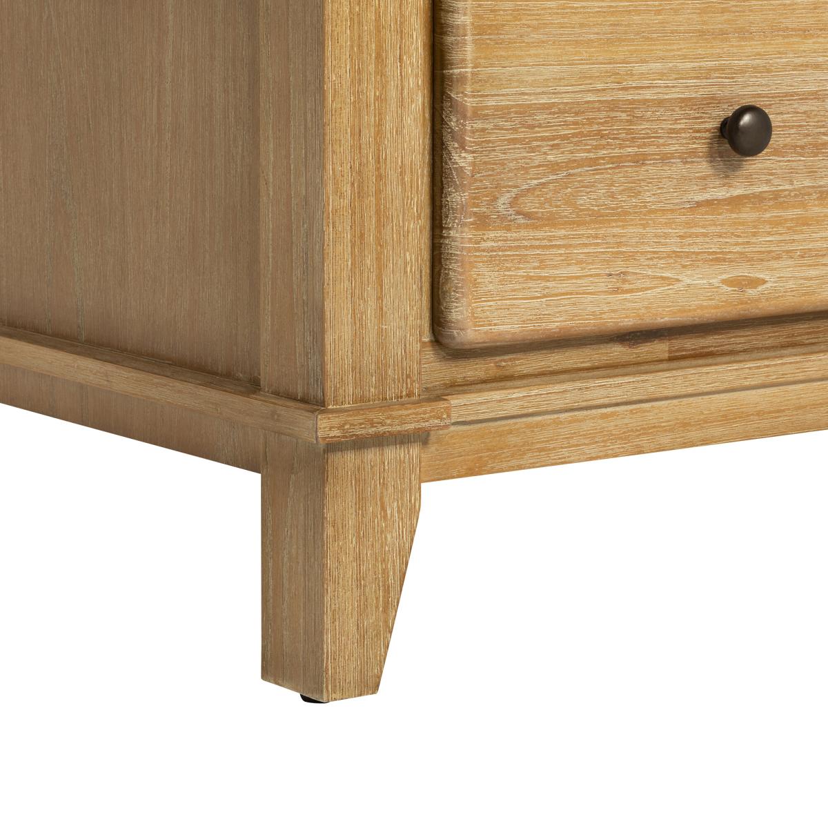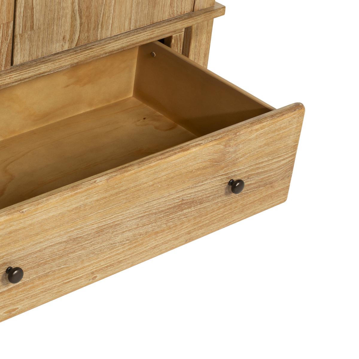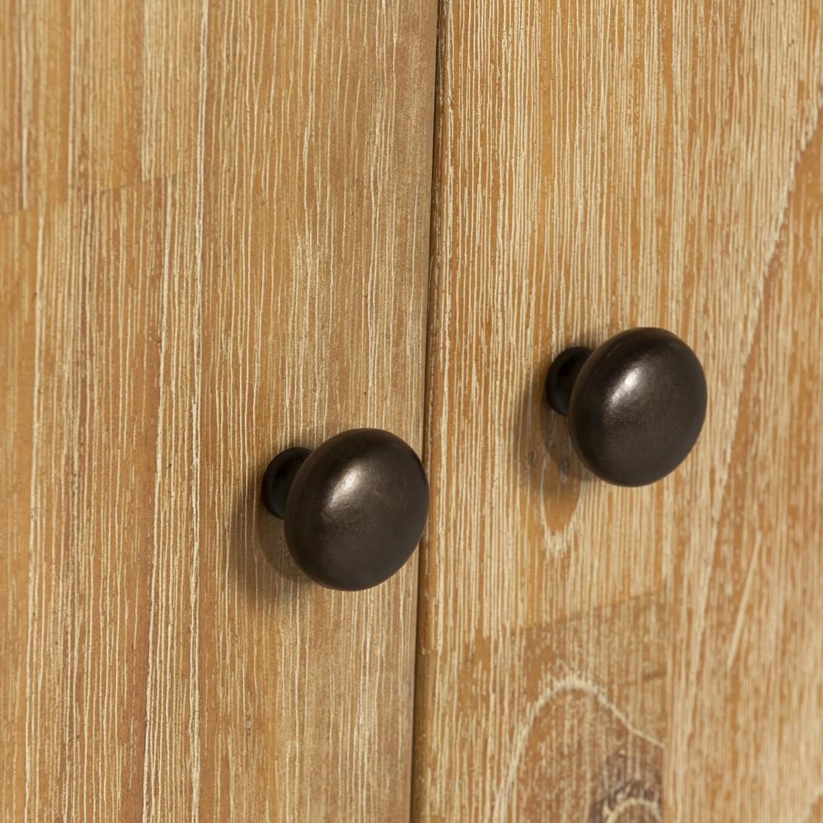I really rate this Mindi-wood wardrobe for its clean lines and subtle fluted detailing - it brings warmth without overwhelming a space. Its neutral tone and simple brass knobs mean it sits just as well in a Scandinavian-inspired bedroom as it does in a modern country or coastal retreat. For styling, keep the top clear or add just a low plant and a couple of ceramics to emphasise its understated look. Inside, organise with matching slim wooden hangers and woven storage baskets in the lower drawer for scarves or off-season layers. Position beside a minimal bedside table or against a pale-washed wall to let the wood grain sing.