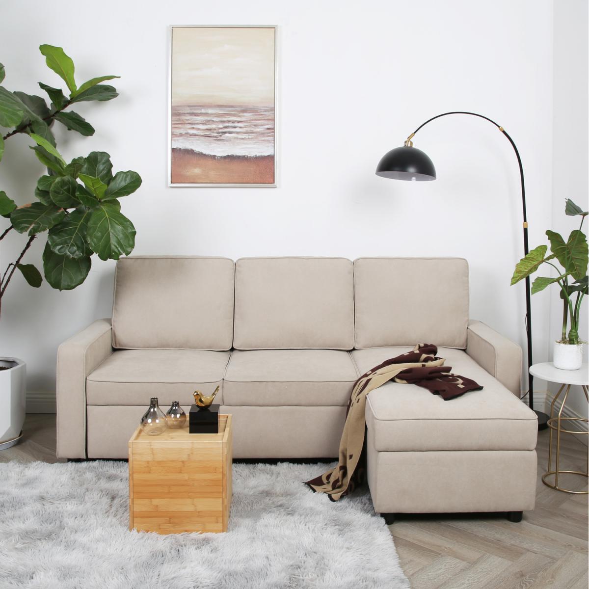 The Selene corner sofa bed is a versatile and stylish addition to any living space. This pull out sofa bed is designed to comfortably be a 3 seater sofa bed for family gatherings or entertaining guests. Upholstered in high-quality linen fabric, this fold out sofa convertible into a bed offers a soft and durable surface that enhances both comfort and longevity. The sturdy wood frame provides robust support, while the plastic legs ensure stability and durability. In addition to its elegant design, the Selene L shape sofa is highly functional due to its pull-out function, allowing it to convert into a double bed. Available in three colours, the Selene corner sofa bed can easily complement various interior decors with its options in light grey, dark grey and beige.