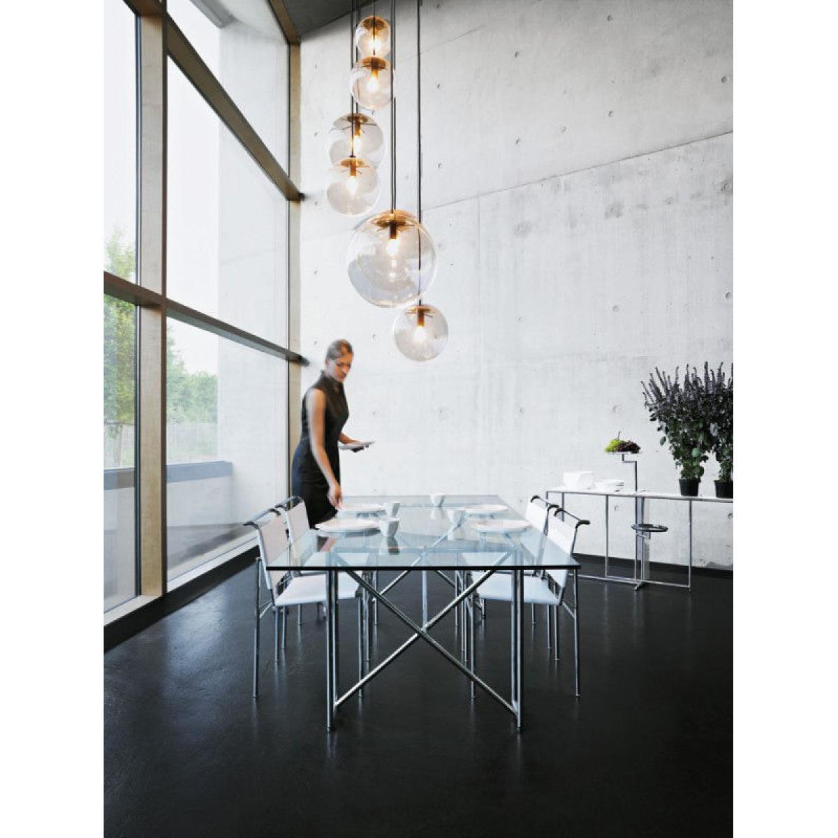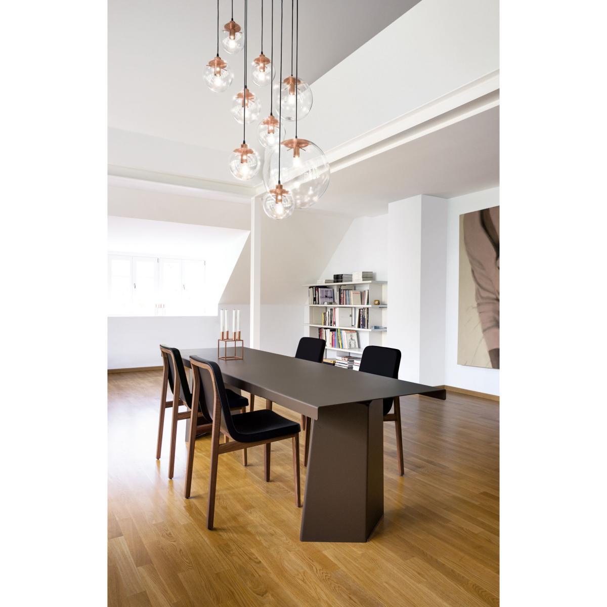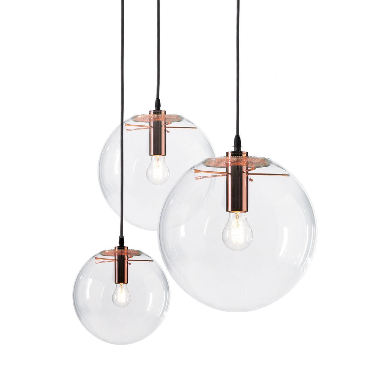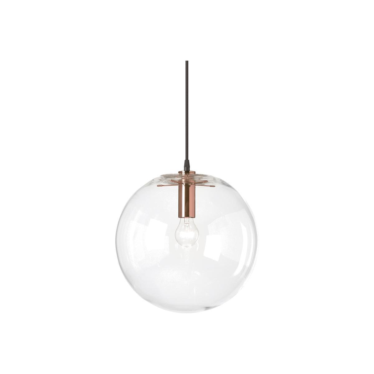 I really like this pendant for its clean, modern look combined with a subtle touch of warmth from the copper detail. Its large, mouth-blown glass globe gives it a timeless appeal that works well in both contemporary and slightly more eclectic interiors. It's particularly versatile-ideal over kitchen islands, dining tables, or in a bedroom where you want a statement light without overpowering the space. For practical styling, consider pairing it with minimalist furniture and neutral palettes to let its transparency and simple elegance shine, or hang a series of them at varying heights for a striking visual effect. It’s a well-balanced piece that adds a touch of sophistication while remaining functional and easy to incorporate into different styles.