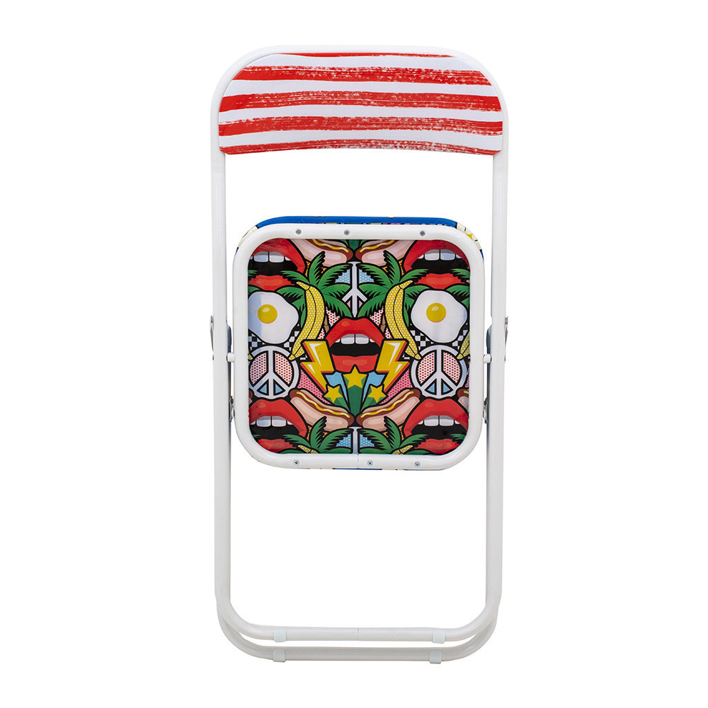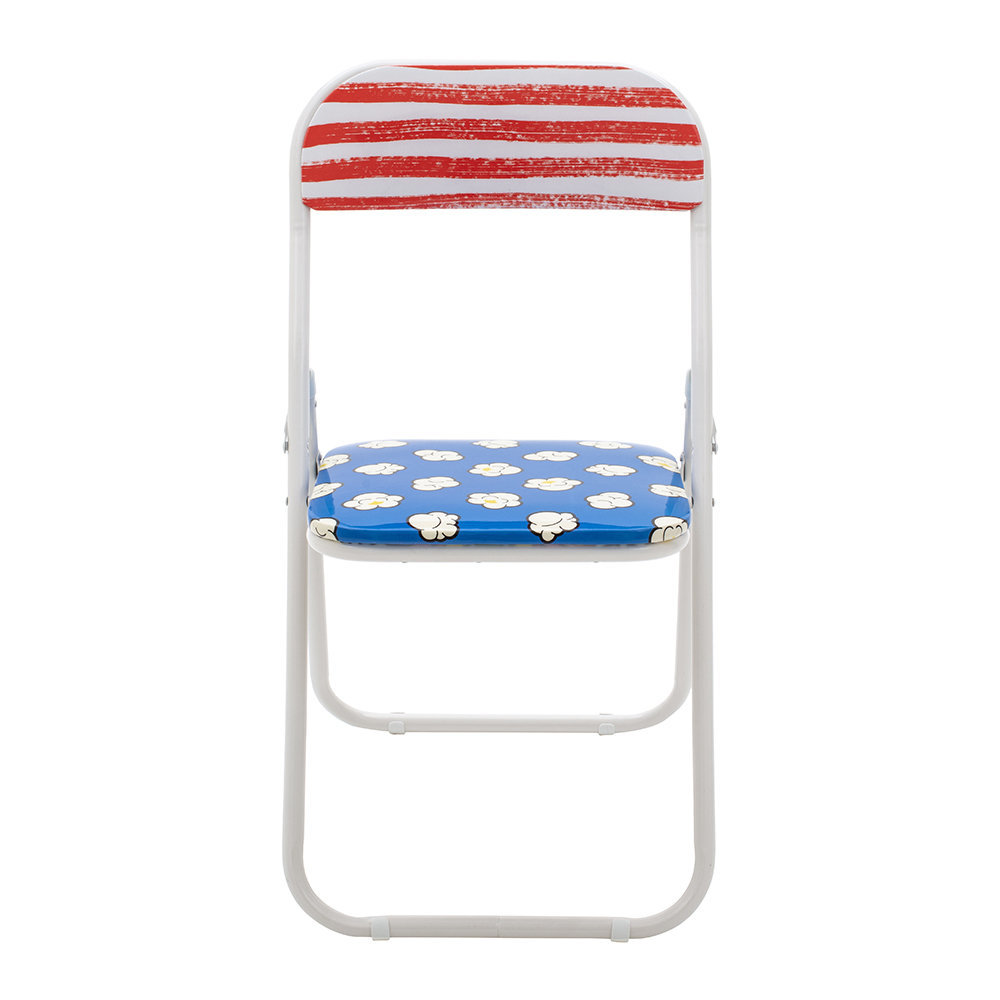 I love this folding chair because it combines playful elements with practicality, making it a versatile piece for both everyday dining and occasional use. Its colourful popcorn-themed fabric adds a whimsical touch, making it especially suited to casual or eclectic interiors, or spaces designed with a fun, youthful vibe. It works well in kitchens, breakfast nooks, or even outdoor patios where a pop of colour and a laid-back feel are desired. To style it effectively, pair it with simple, neutral surroundings to let the chair stand out, or mix it with other vintage or eclectic elements for a layered look. Keep in mind its folding feature for easy storage, making it a practical choice for hosts or those with limited space.