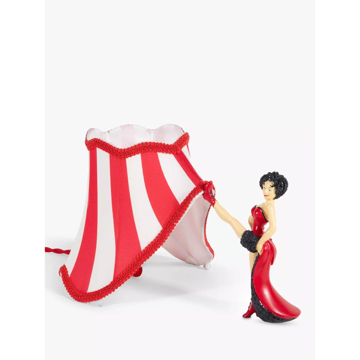 Step right up and bring the enchanting world of the circus into your space with Seletti's Abat Jour Lucy Table Lamp. Featuring characterful Lucy from the circus realm, guiding the way into a striped circus marquee, the red and white lampshade. Includes a braided red cable.