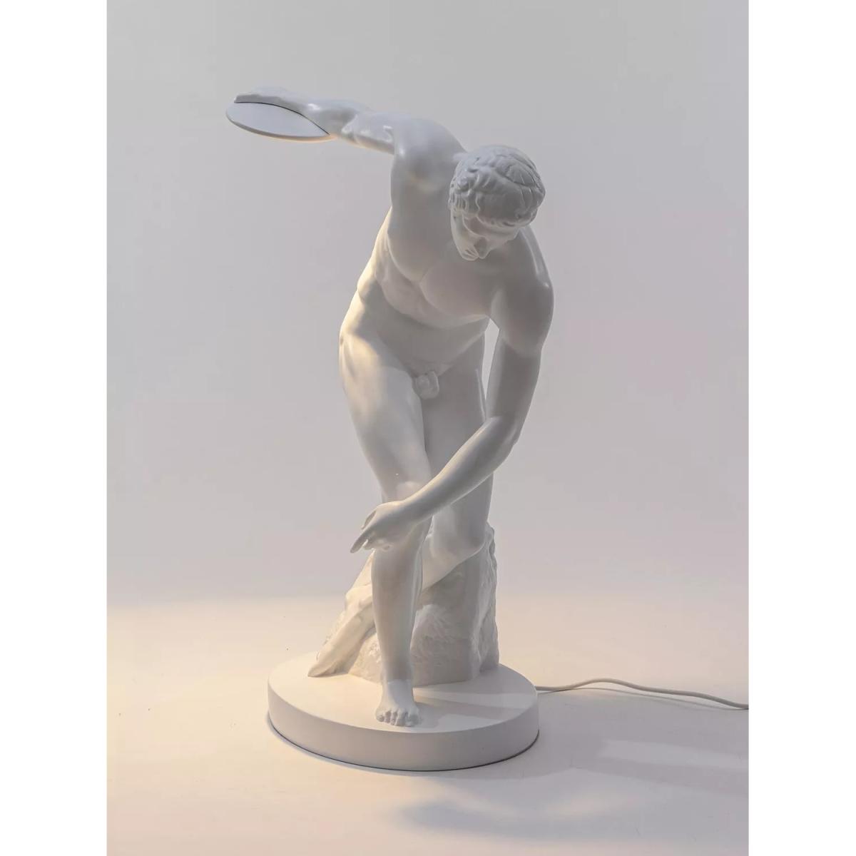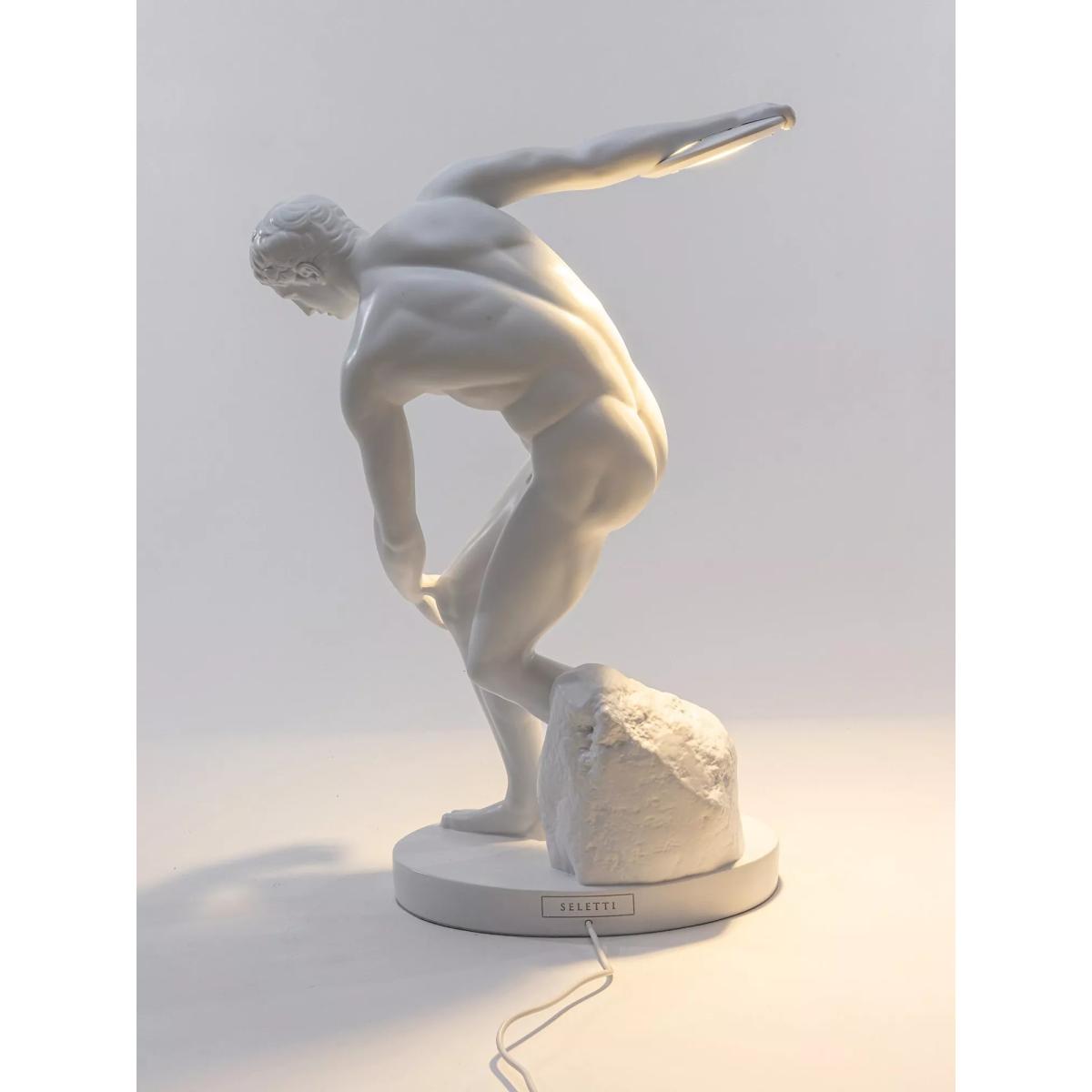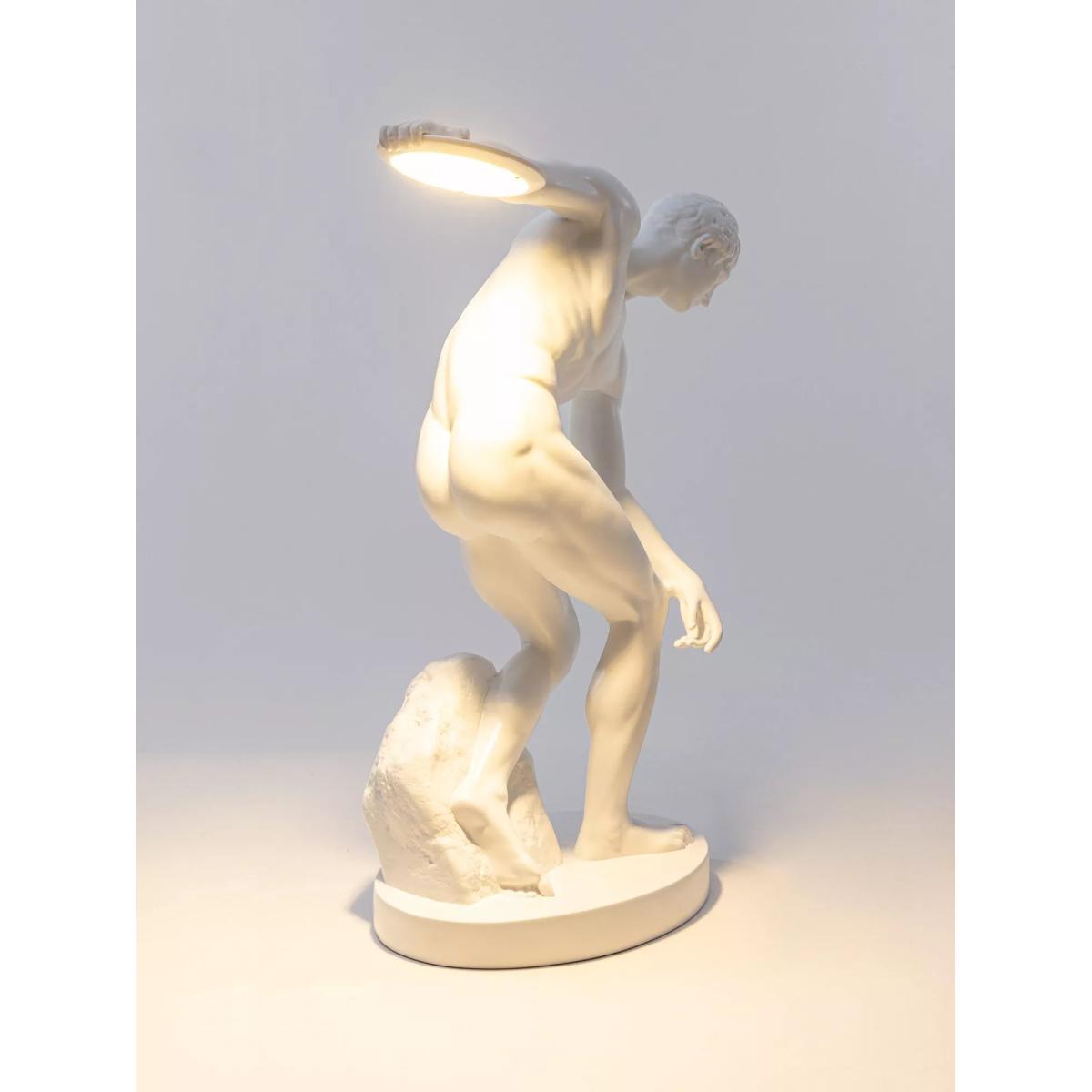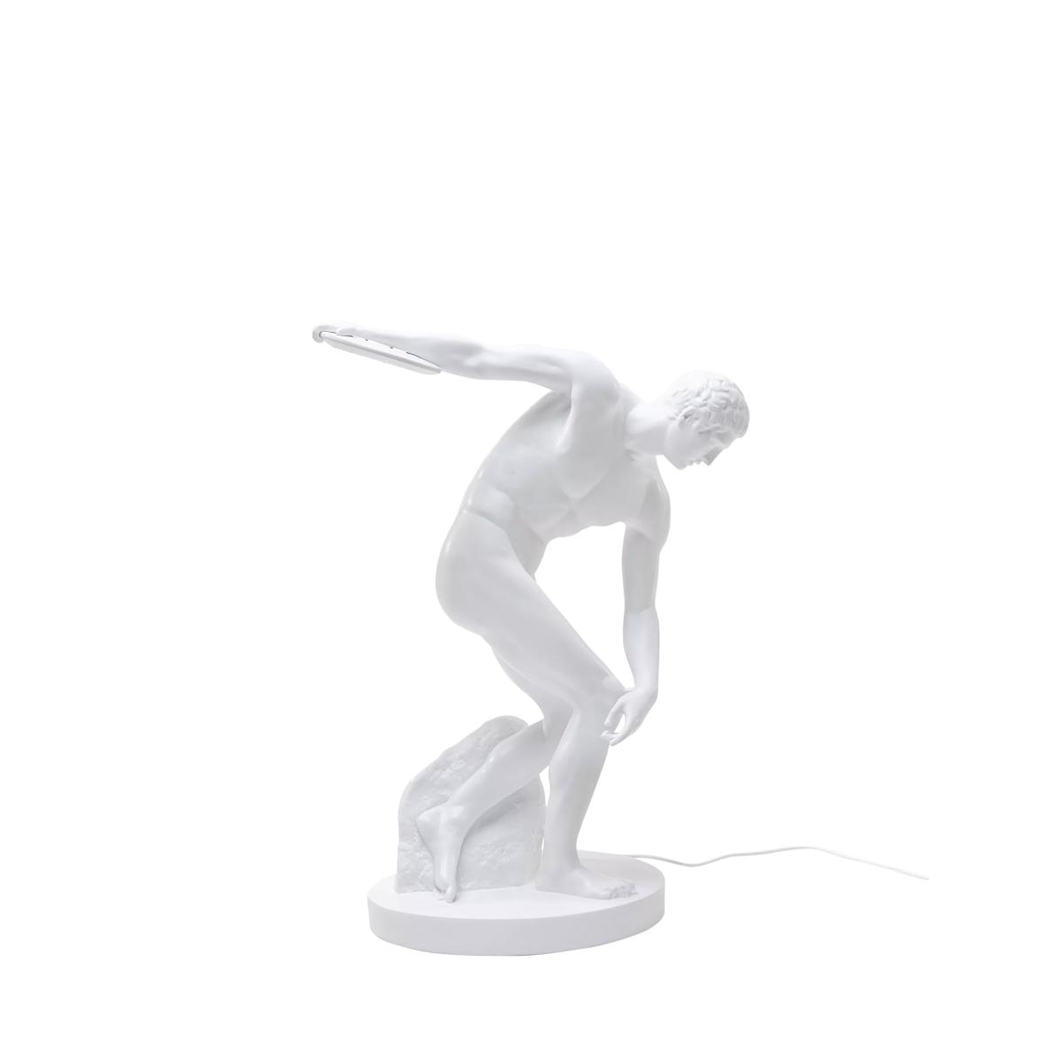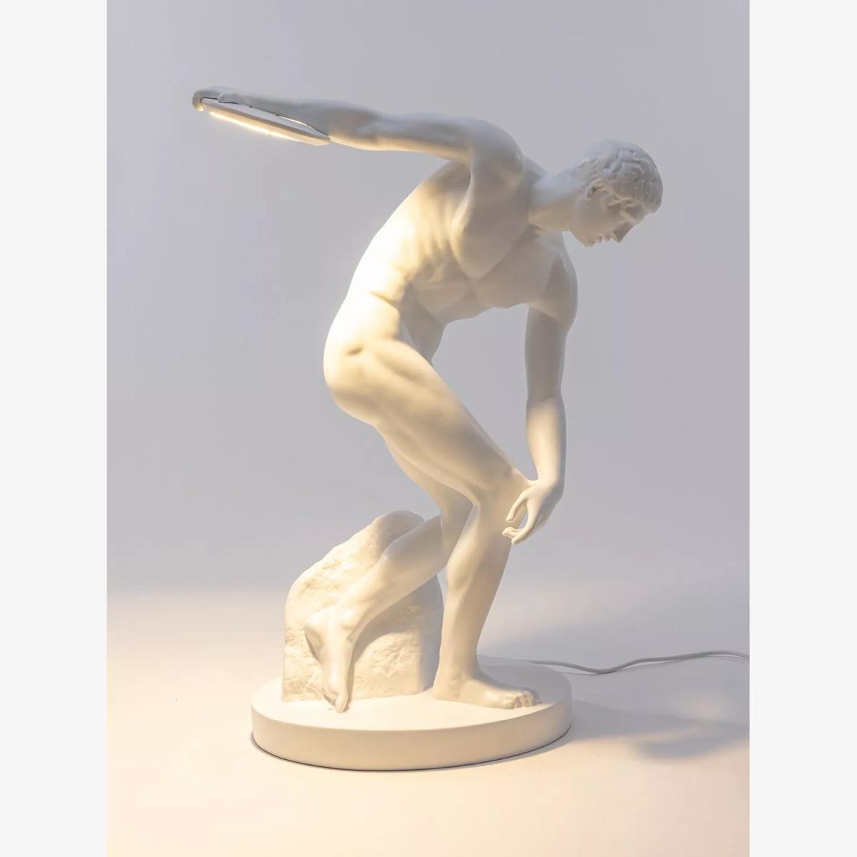 I love this lamp because it combines art and function effortlessly; the classic Discobolus pose adds a sculptural element to any space. It works particularly well in contemporary or minimalist interiors where its white finish stands out as a statement piece. Practical styling tips include placing it on a sideboard or desk where its dramatic form can be appreciated up close, or using it as a bedside lamp for a touch of modern artistry. Its unique design makes it a great conversation starter, and it pairs well with monochrome palettes or metallic accents for a sleek, sophisticated look.