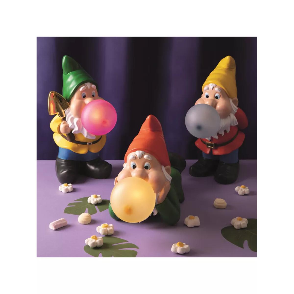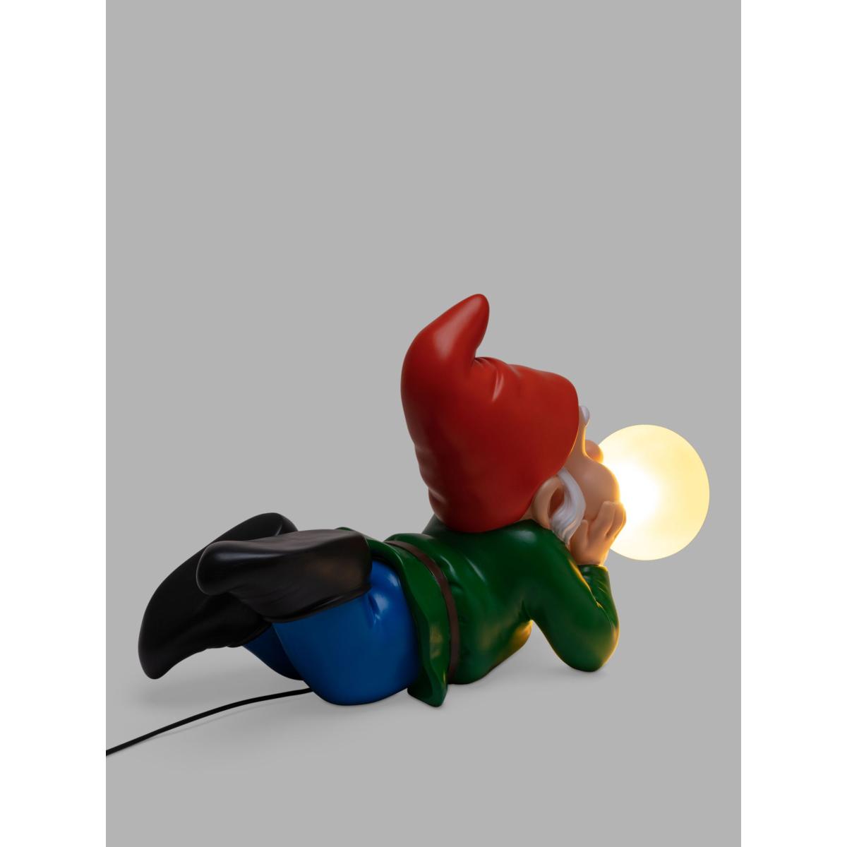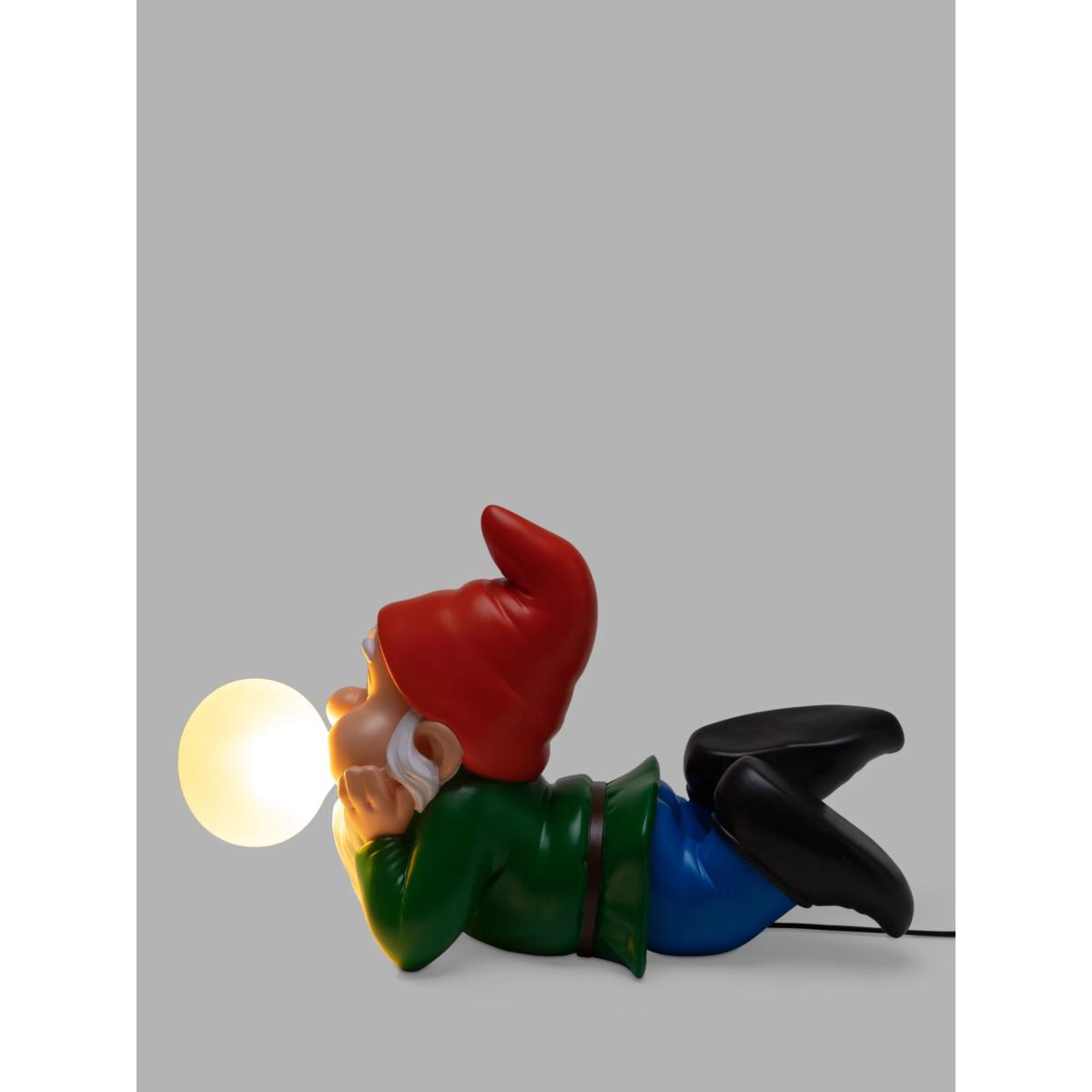 Part of a range of lighting featuring oversized gnomes, blowing giant bubble gum bubbles by Uto Balmoral for Seletti. Made from resin and painted in bright colours, with long beards and black clogs, they would be a delightful addition to any home.