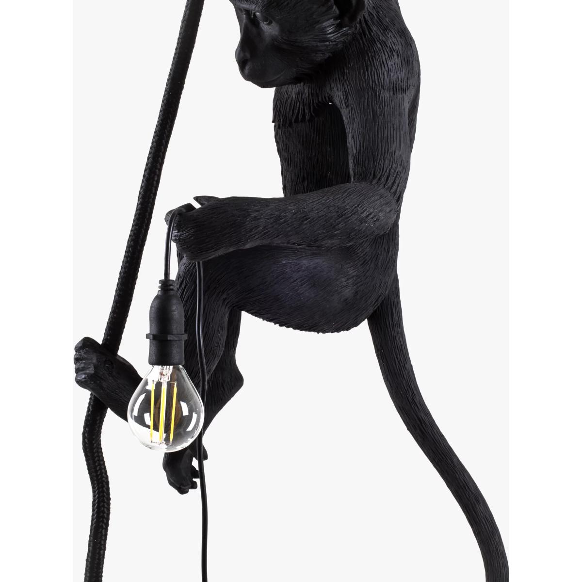 Designed by Marcantonio for Seletti, this cheeky hanging monkey is ideal for adding a quirky accent to your home style. Suitable for indoor and outdoor use, it can also be used in bathrooms and kitchens. This monkey is attached via a rope - adjustable, maximum six meters in length - through the supplied ceiling rose. The power supply is via a transformer on an eight meter long electrical cable with a three pin plug. There is no rocker switch. Please note: this light cannot be hard wired.
