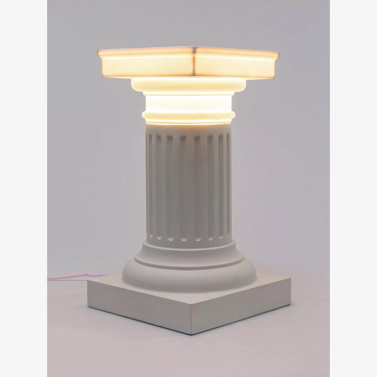 I’m a fan of this “Vegas” lamp for the way it channels a classical column in a crisp, all-white finish - its architectural form works equally well in a pared-back Scandi scheme or an eclectic, gallery-style loft. As a side-table lamp it’s practical too: the flat top doubles as a perch for a small vase or your evening read, while the warm glow highlights the fluted detailing. For a pulled-together look, pair it with tonal ceramics or a chunky wool throw on an adjacent armchair, and keep surrounding surfaces clear so the lamp remains the focal point.