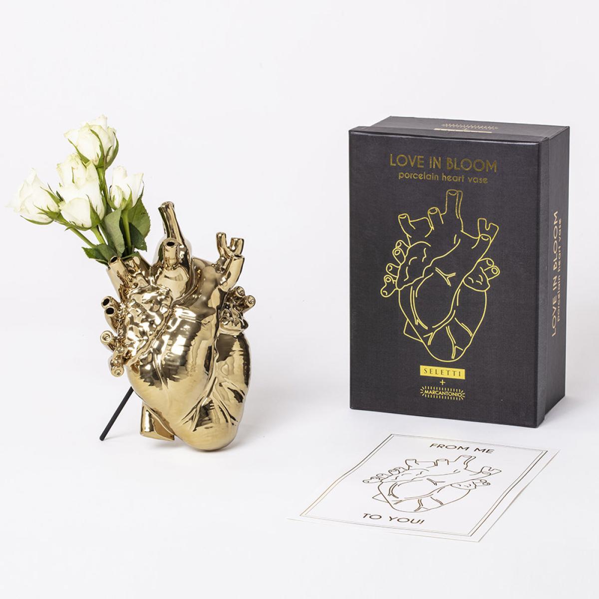 This golden Love in Bloom vase gets our hearts beating faster. Utterly original and anatomically impeccable, this Heart lamp designed by Marcantonio is perfect for the undercover romantic. In the shape of a real heart, it is made from porcelain and each vein and artery is concaved to hold a single flower bud. Including a slim metal stand, it can be displayed upright or even suspended on the wall thanks to the hole in the back, allowing you to showcase your unique love around the home.