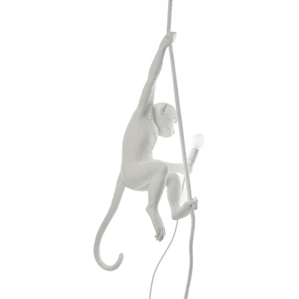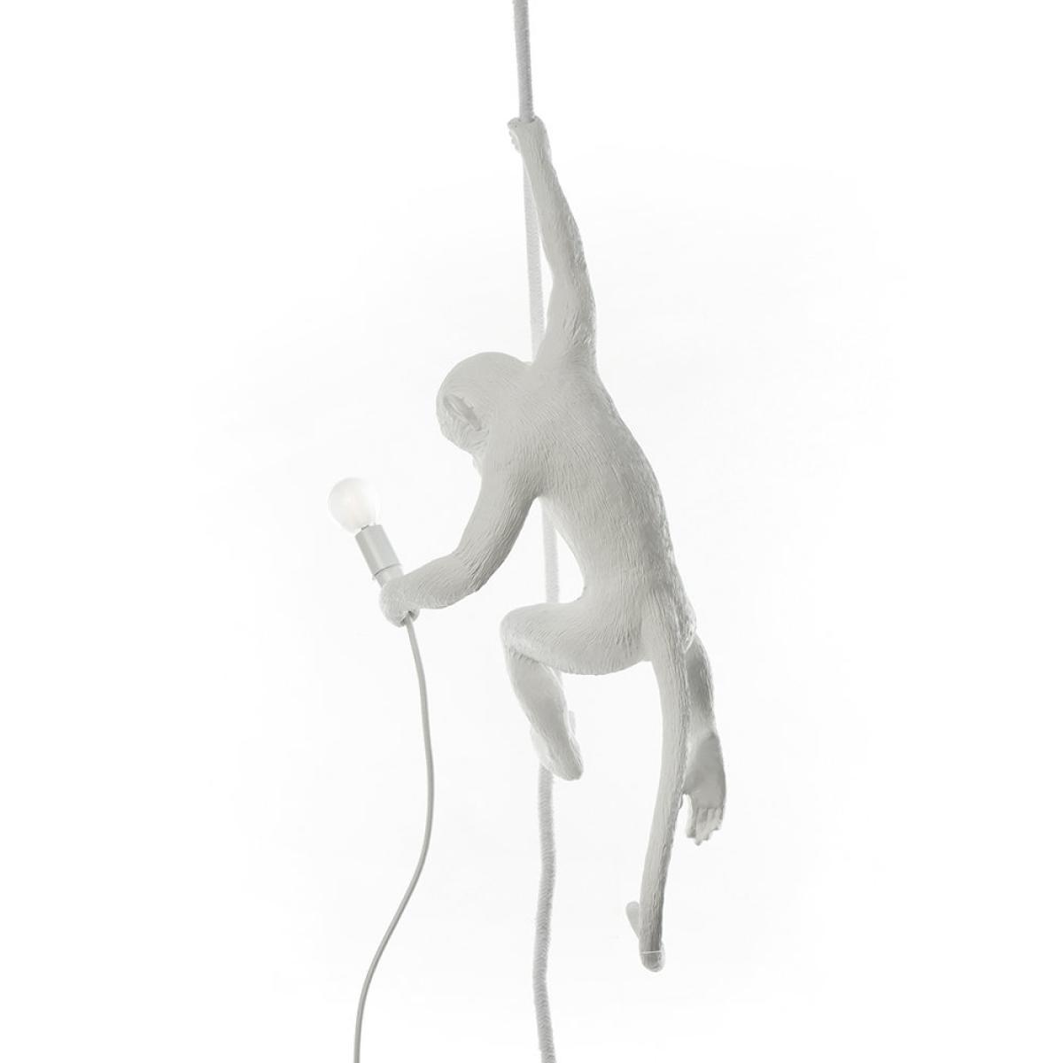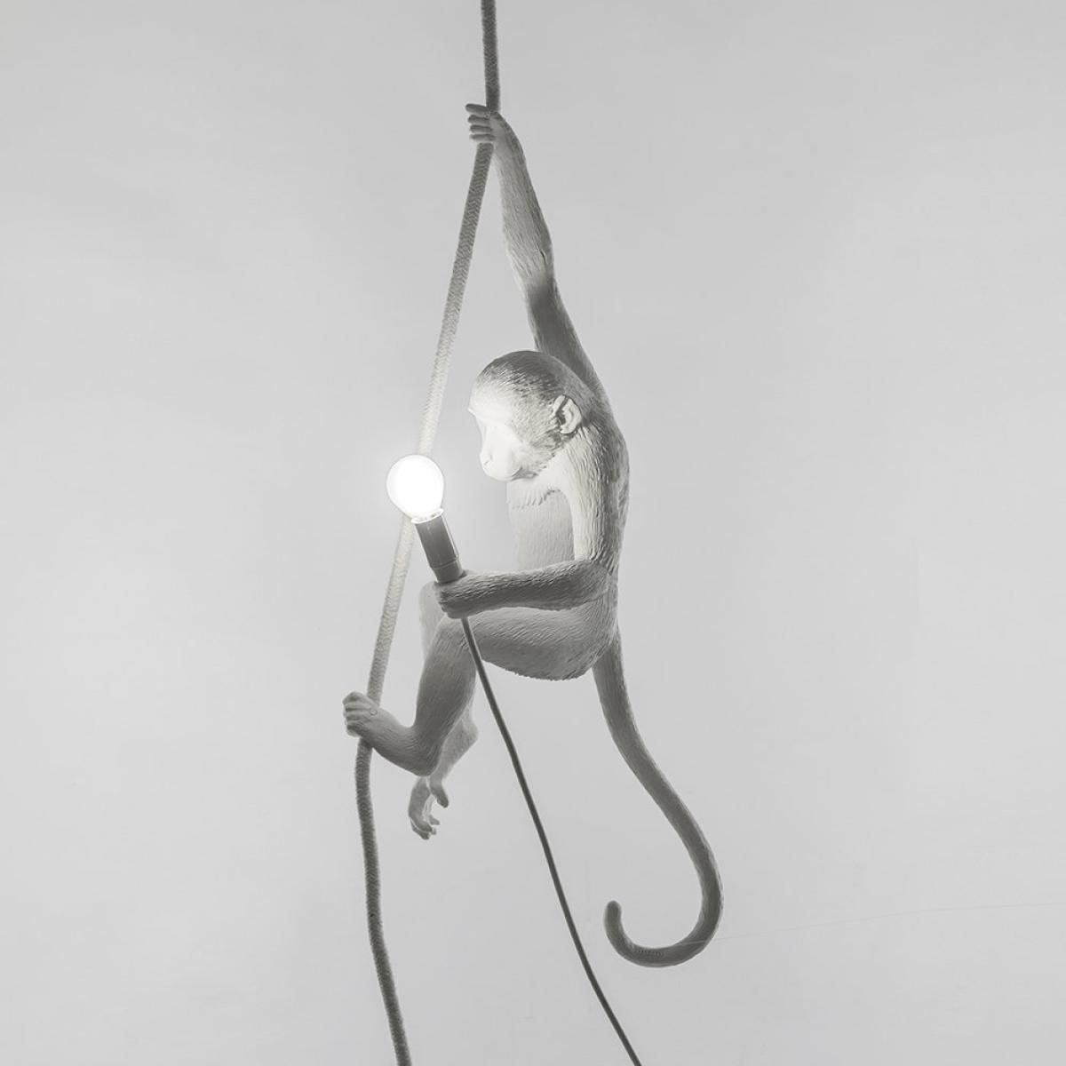 Update your home lighting with this innovative Swinging monkey lamp from Seletti. This quirky design is made from resin and takes the shape of a monkey swinging on a 3m rope holding a lightbulb to illuminate the home. In a chic white colour, this unique lighting solution looks fabulous placed in any room of the home or team with the standing, sitting or hanging monkey available separately to transform your home.