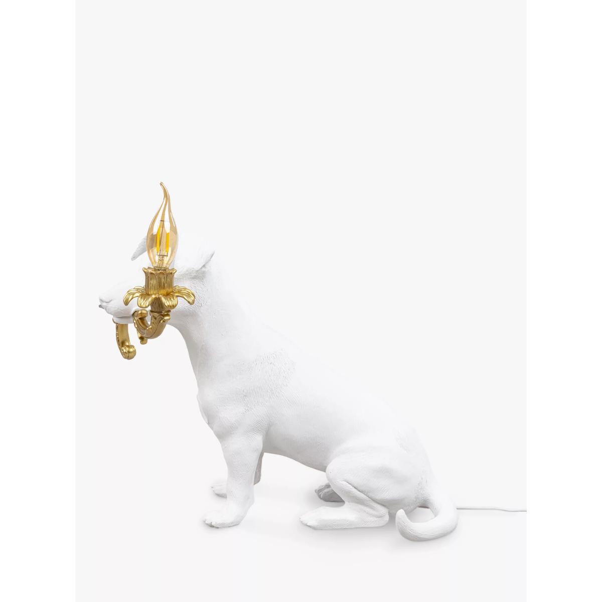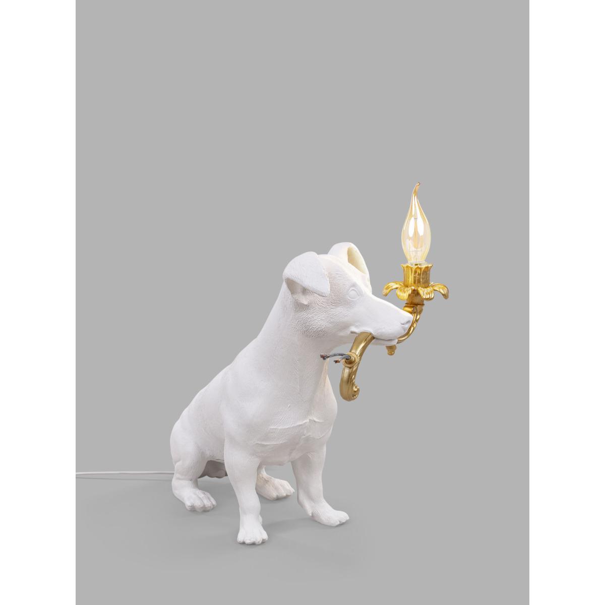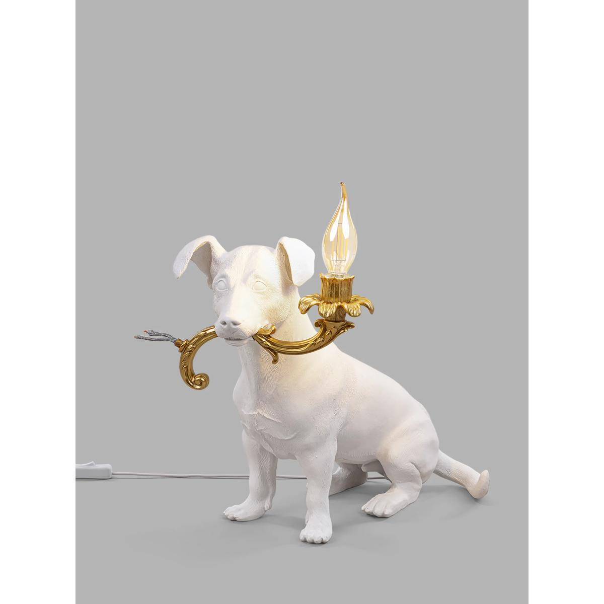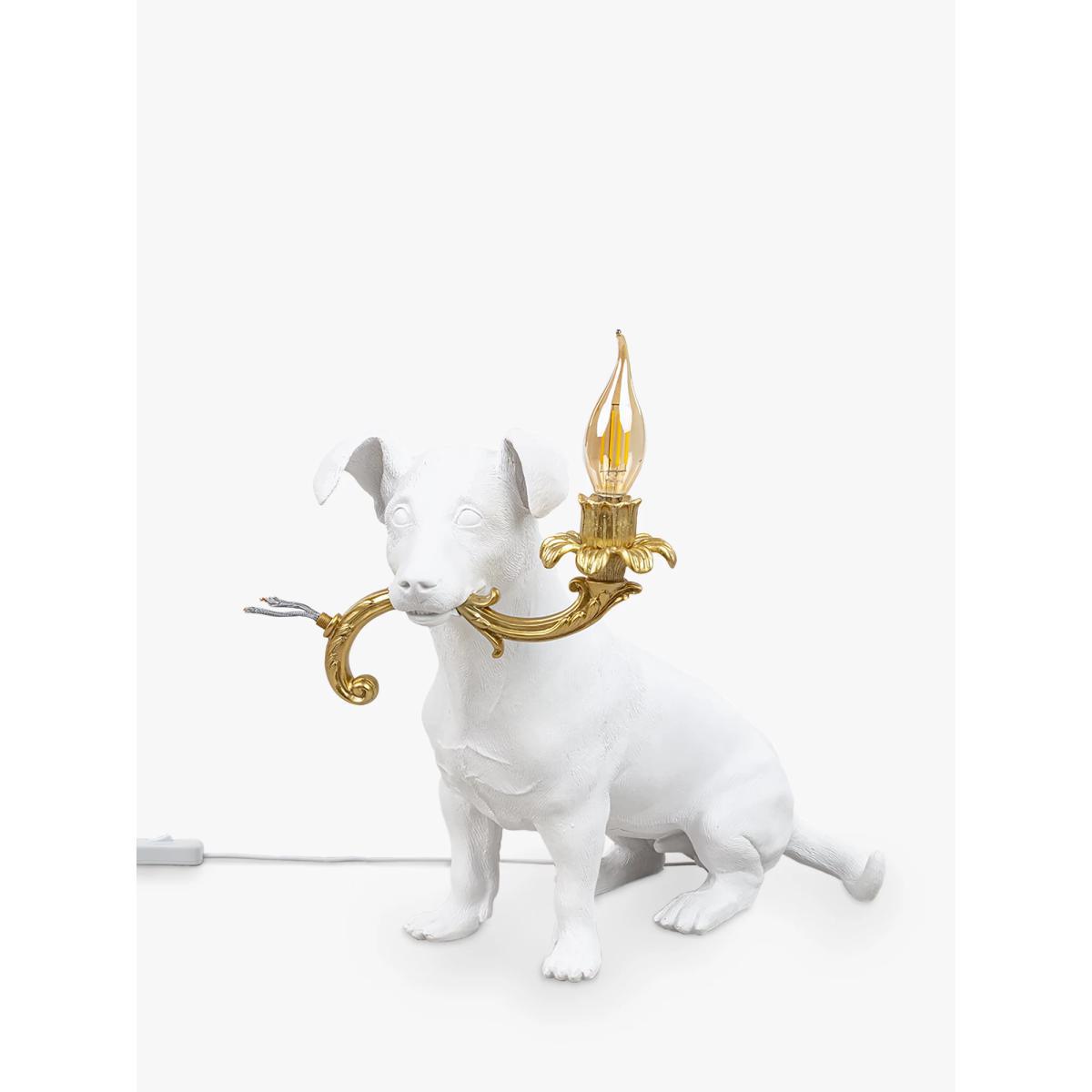 Modelled on Stefano Seletti's own Jack Russel Terrier, this life-sized table lamp offers a fun and quirky way to style your space. He's been up to his naughty old tricks and stolen an arm from a chandelier, proudly holding his work in his mouth. A replaceable LED bulb is provided which offers an ambient glow of light, making this lamp perfect for warming up cosy corners. For indoor use only.