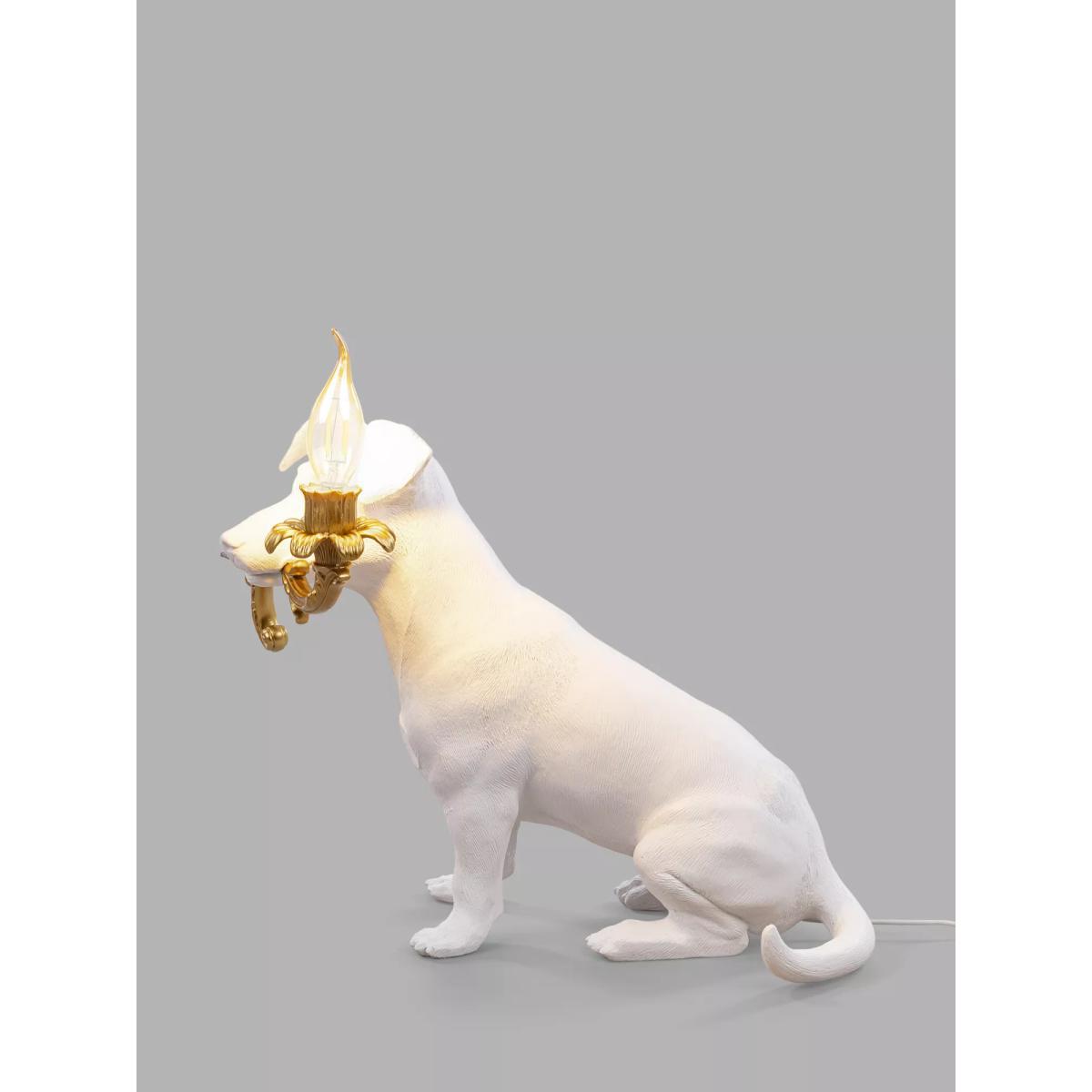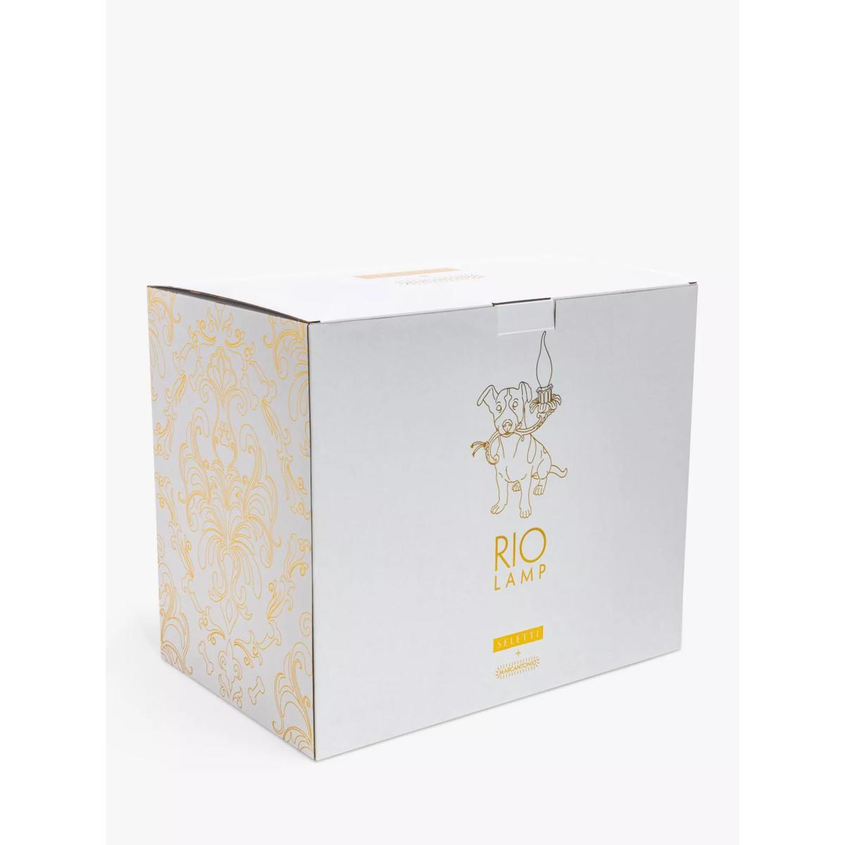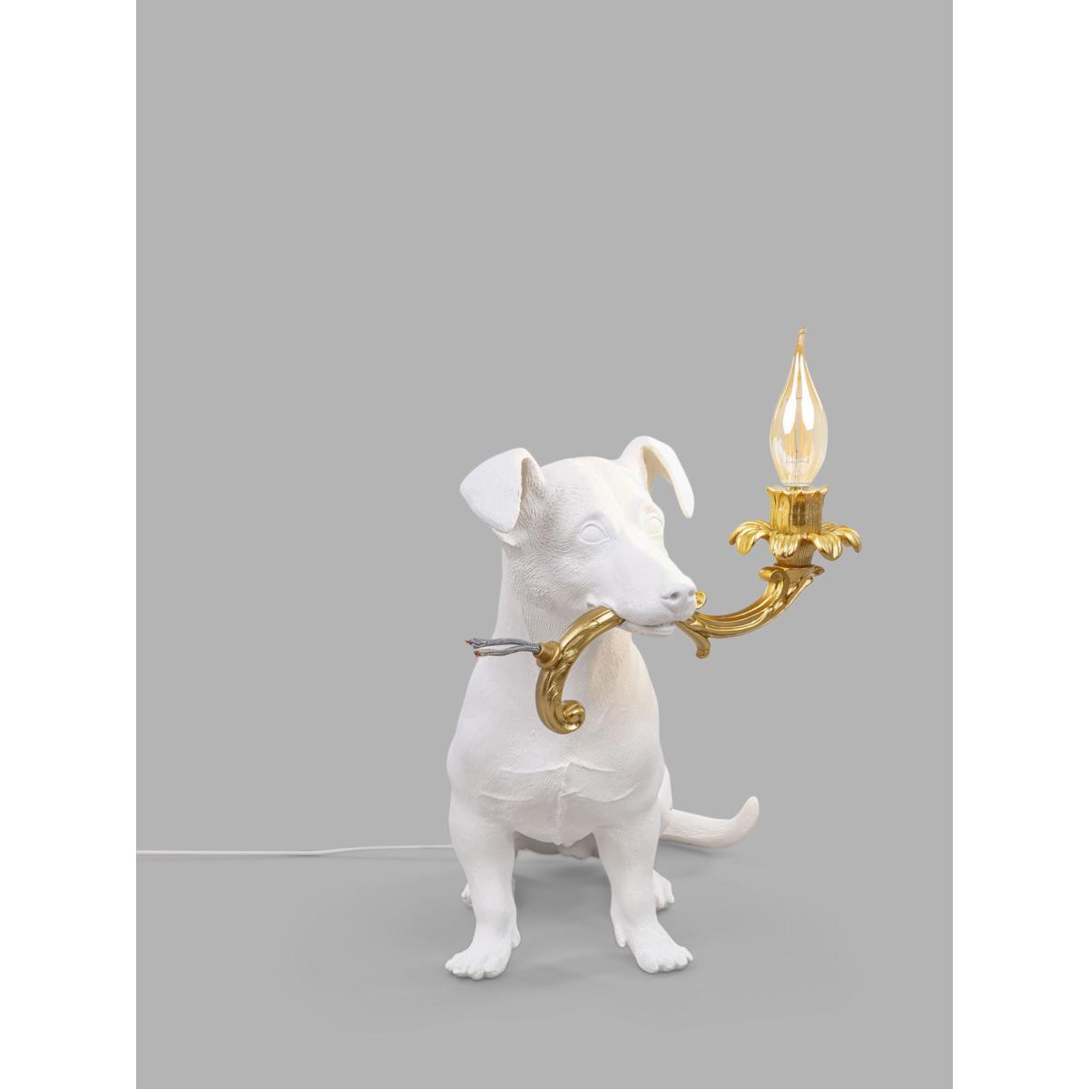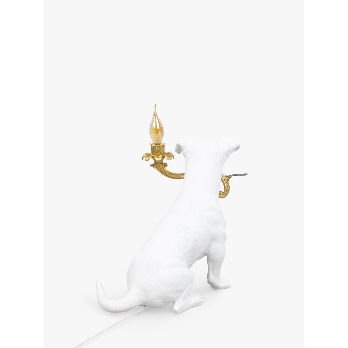 Modelled on Stefano Seletti's own Jack Russel Terrier, this life-sized table lamp offers a fun and quirky way to style your space. He's been up to his naughty old tricks and stolen an arm from a chandelier, proudly holding his work in his mouth. A replaceable LED bulb is provided which offers an ambient glow of light, making this lamp perfect for warming up cosy corners. For indoor use only.