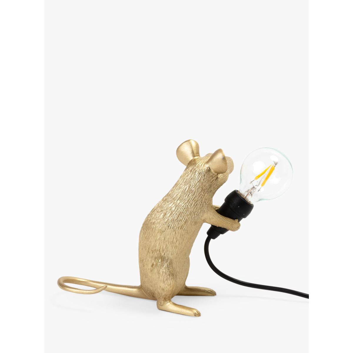 Cute and curious, this Sitting Mouse table lamp showcases Marcantonio's signature design for Seletti. A quirky addition to your home decor, it's made from resin and painted in a gloss finish that makes it really eye-catching on your shelf or table. Supplied with a replaceable LED cool to touch lamp, it's ideal for giving your space a subtle accent of light. For indoor use only.