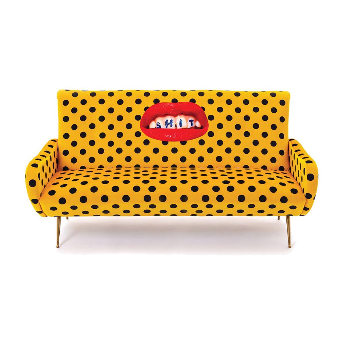 Why settle for ordinary? This three seater sofa makes a striking statement in any space. In a bright yellow colour, it's splashed with Seletti's iconic Sh*t design. Bright and irreverent, it'll make your living space impossible to ignore. Key features: * Three seater sofa * Material: * Frame: wood, polyurethane, metal * Upholstery: polyester * Dimensions: H86xW178xD86cm * Designed by Seletti wears Toiletpaper * Bright yellow colour * With Seletti's iconic Sh*t design * More furniture available from Seletti