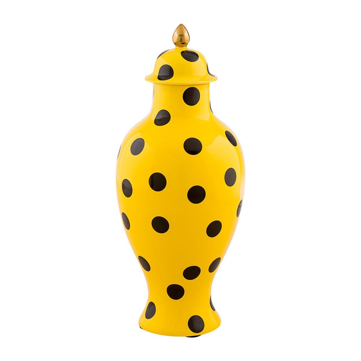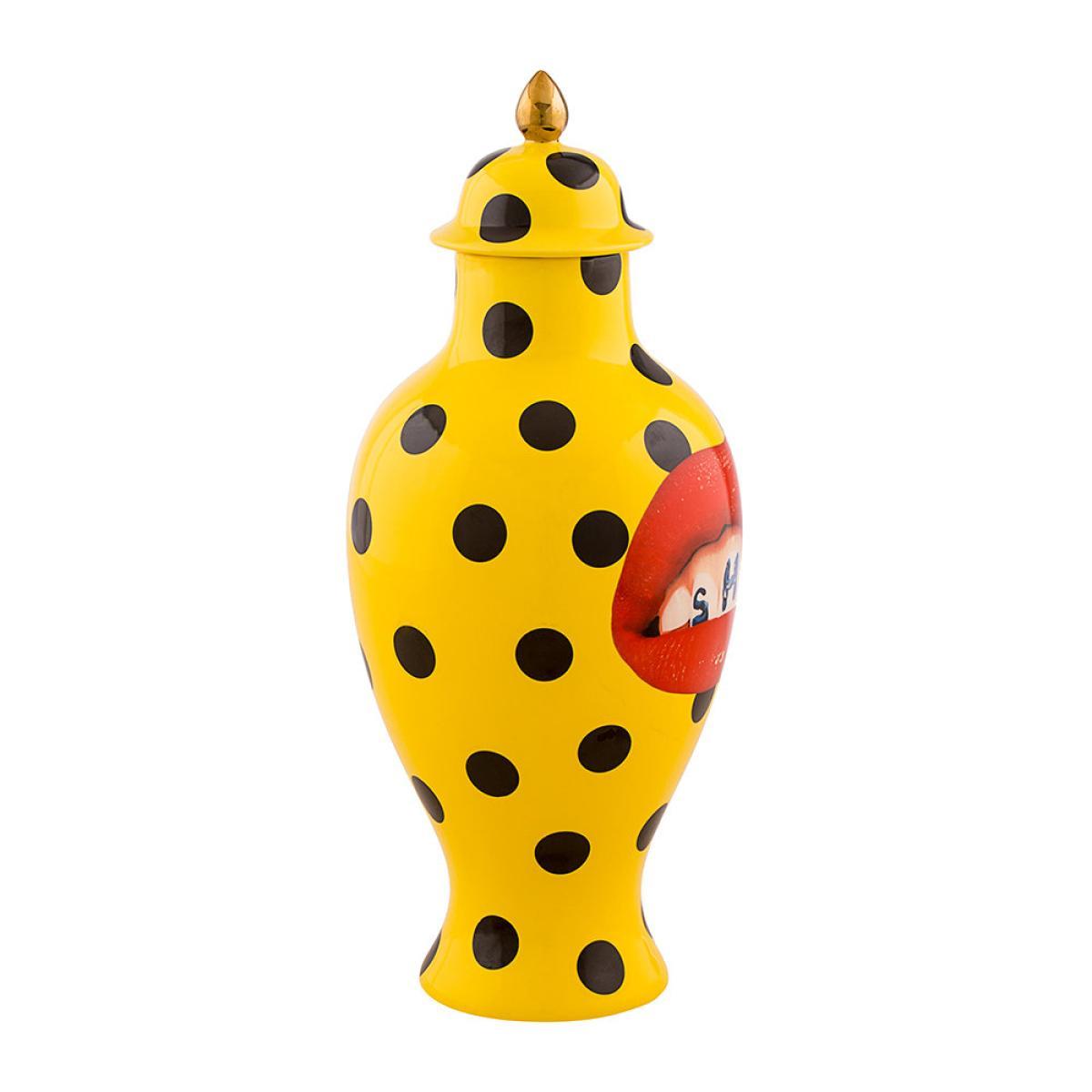 This quirky vase definitely makes a bold statement and works best in contemporary or eclectic interiors that embrace playful, avant-garde pieces. I love it styled as a standalone feature on a sideboard or shelf, paired with minimal greenery or small, simple florals to let it really stand out. Its bright yellow with black polka dots and the tongue-in-cheek lip detail makes it ideal for adding a pop of colour and humour to a room. To keep the look cohesive, avoid overcrowding with other bold patterns and instead, focus on clean, neutral backgrounds where this little character can truly shine. It’s perfect as a conversation starter or as an art piece in a modern space, where its eccentric charm can be appreciated.