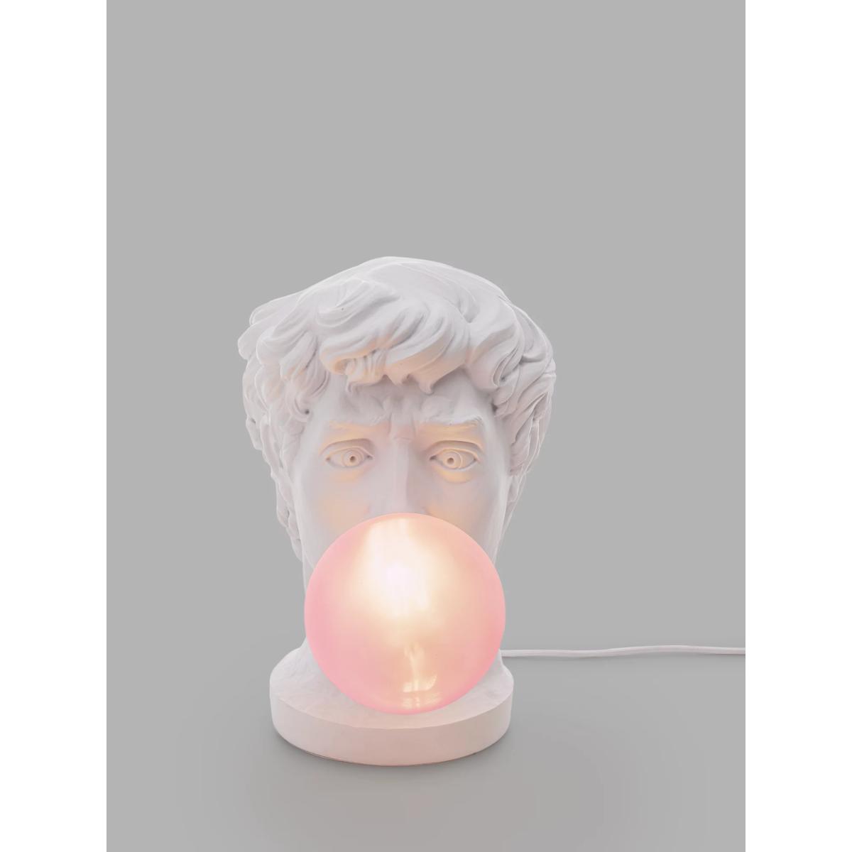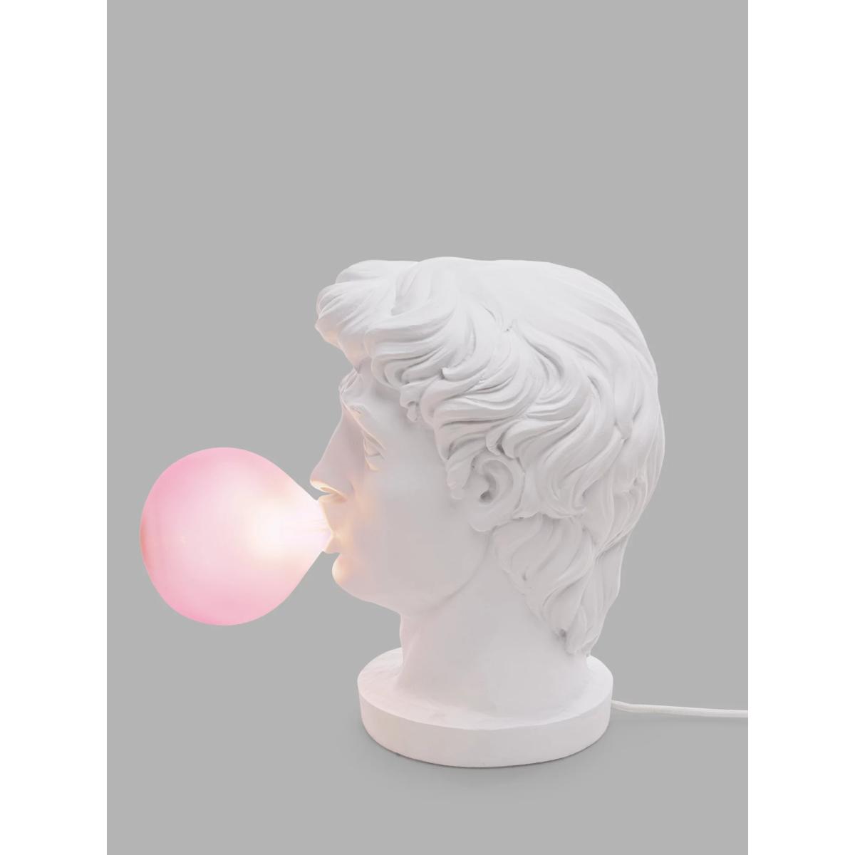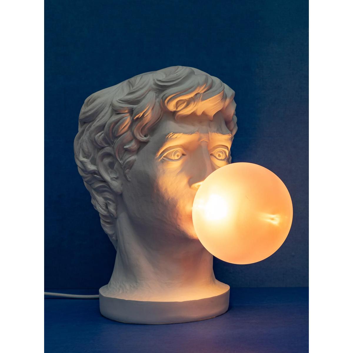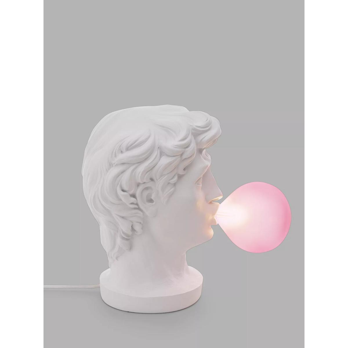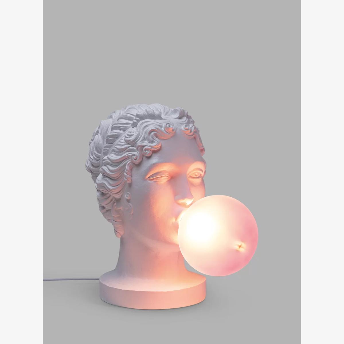 Style your home with lighting that won't go unnoticed. Designed by Uto Balmoral for Seletti, this novelty table lamp depicts a classic head figure blowing bubblegum. A special oversized LED bulb is included which glows inside the bubble and offers an ambient glow. For indoor use only, it's a fun way to dress up cosy living spaces.