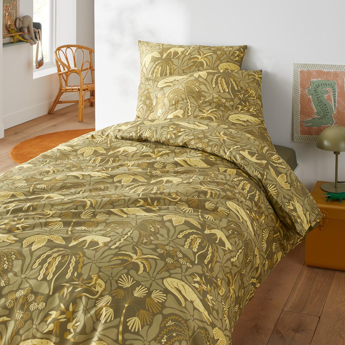 With a tropical influence, the animals of the jungle make a rendezvous in the bedroom... A duvet cover in soft cotton, for adventure-loving children! Designed by La Redoute Interiors. Cotton is part of our daily lives. We love it for its suppleness and softness. Easy Care, it is ideal for the beds of young and old alike!Product Details • 100% cotton, 115g/m2 • Contains 50% recycled cotton • 144 thread count • Jungle print on both sides • Straight buttoned hem. As the seasons change, add your own personal touch by mixing the Selim range with our range of plain Scenario bed linen. Care Advice • Machine washable at 40°CDimensions • 140 x 200cm: Single • Recycled cotton. Using recycled cotton is all about conserving resources and reducing waste. • OEKO-TEX® Standard 100. Standard 100 certification by OEKO-TEX® tests textile products for harmful substances via an independent, international label.