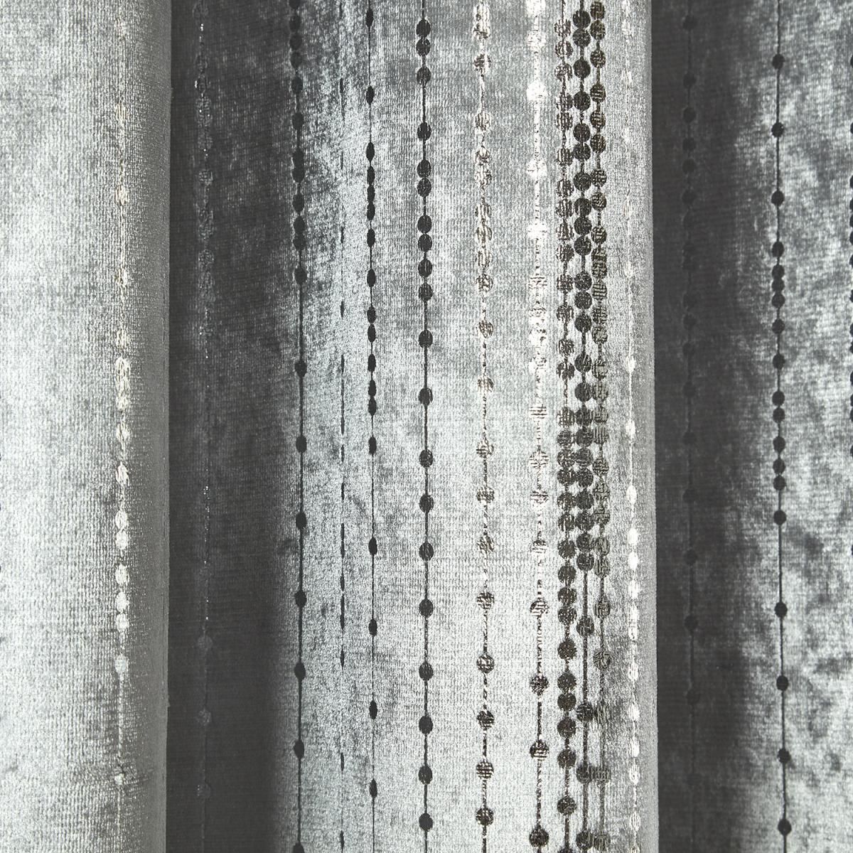 A divine and glamorous way to dress your windows, our Selina Foil Dotty Stripe Curtains are cut from alluring velvet fabric with a sleek and stunning lustre. Held up by modern metal eyelets, these lush curtains are decorated with streaks of foil detailing that glisten in the light for a gorgeous statement effect.
