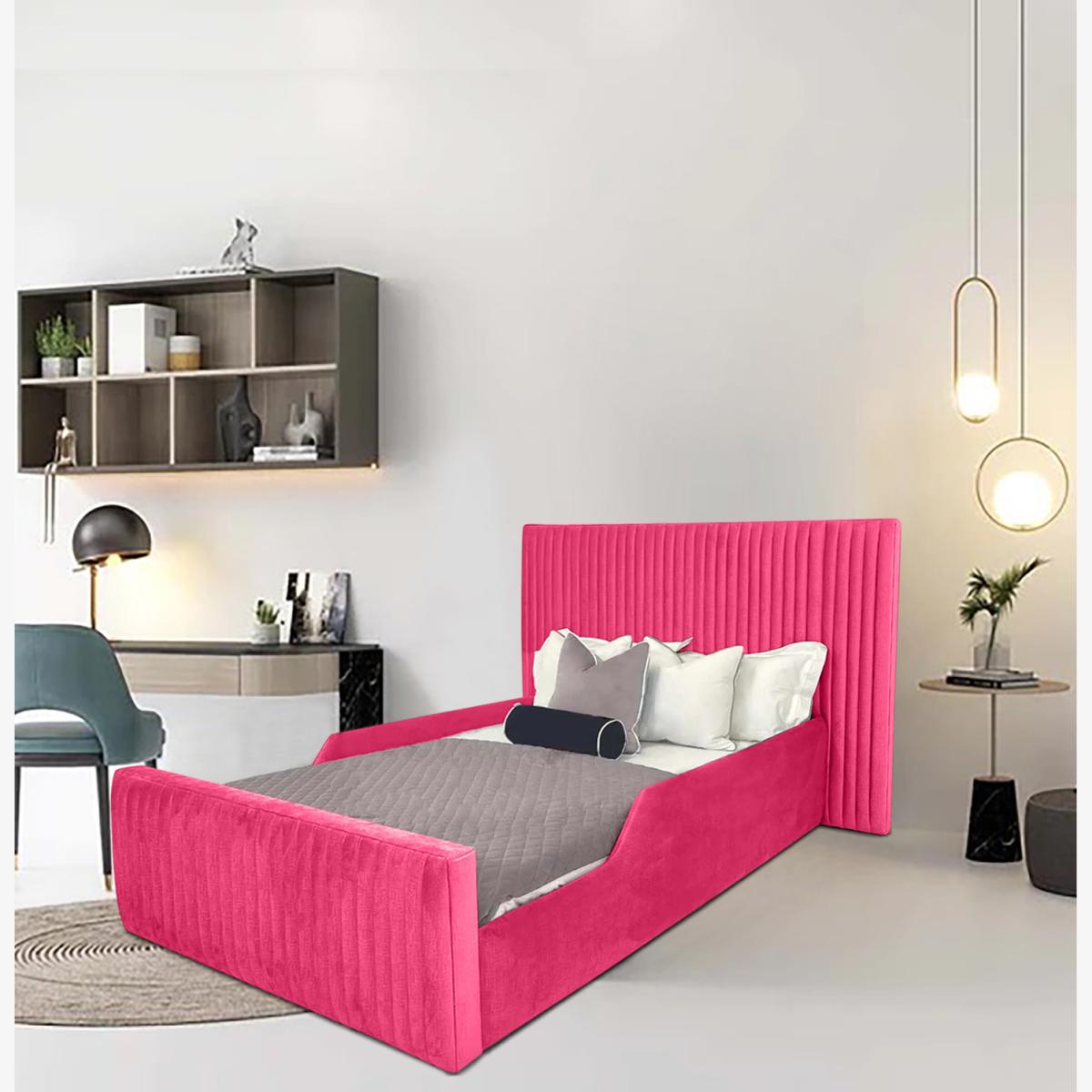 I love the bright pink of the kid's bed-it adds a playful pop of colour that works especially well in contemporary or Scandi-inspired interiors where bold accents are welcome. The plush velvet finish makes it look cosy and inviting, perfect for creating a fun yet comfortable space. The added safety siderails are a practical touch, making it suitable for younger children. Styling around it can be kept simple with neutral bedding in grey or white to let the bed stand out, and accessories like colourful throw cushions or a plush rug can bring in layers of texture and personality. For a more cohesive look, incorporate matching or complementary colours in the room's decor, keeping the overall aesthetic fun yet balanced.