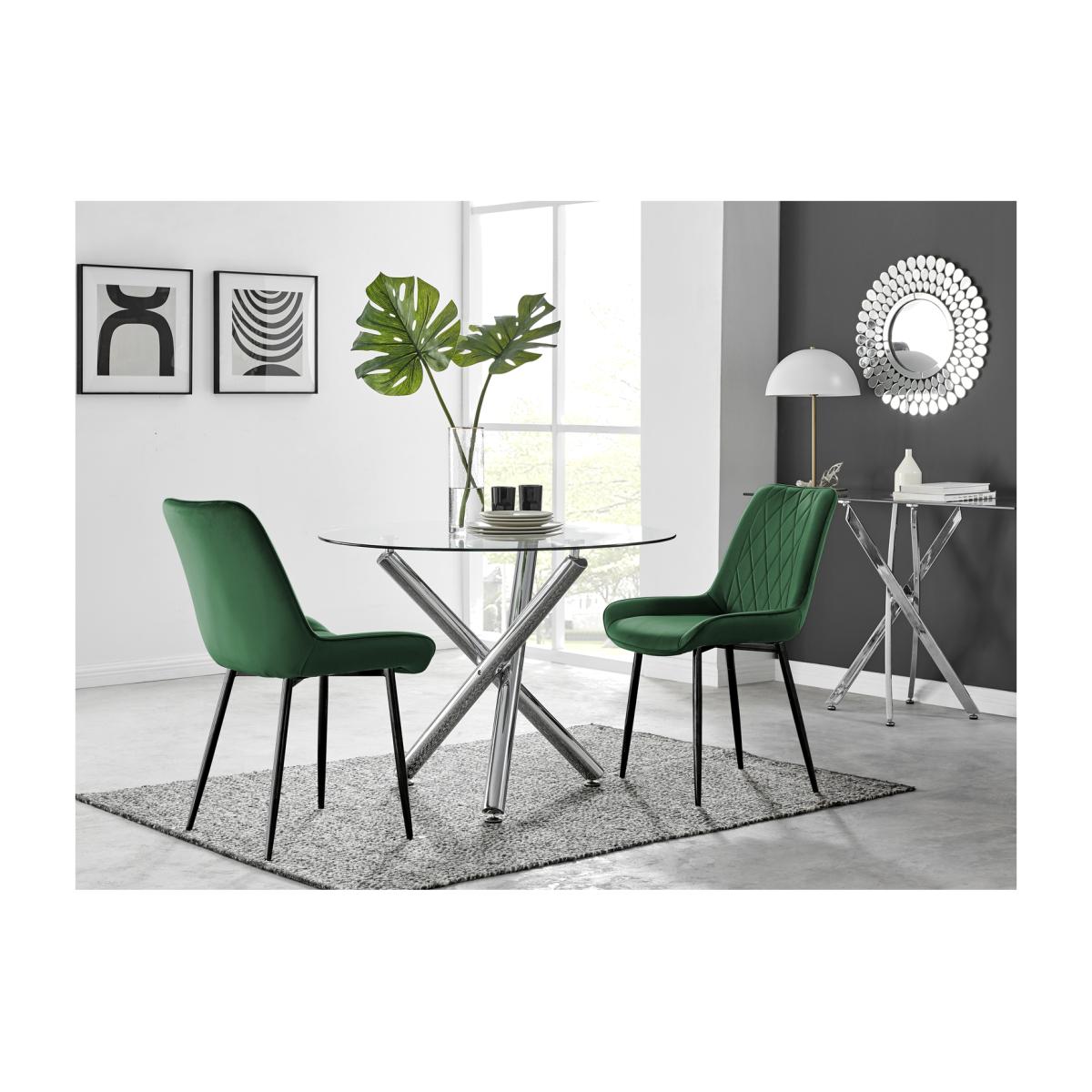 Selina Round Dining Table 2 Pesaro Black Leg Chairs - Green