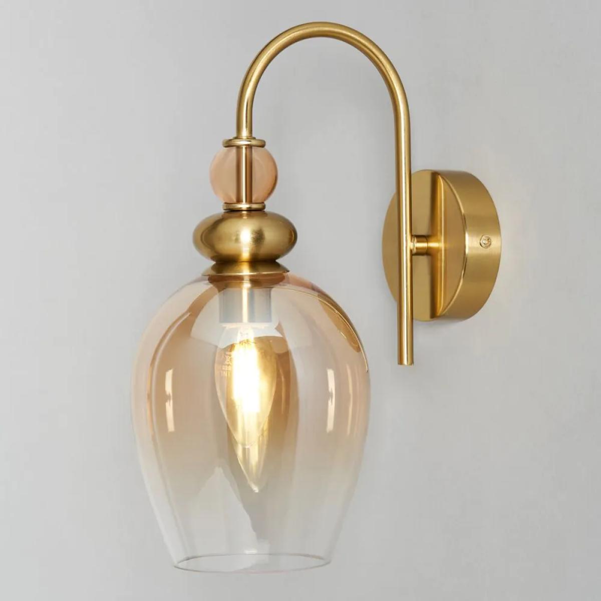 Illuminate your walls with the contemporary elegance of the Seline Champagne Wall Light in Satin Brass. With its sleek metal frame and tinted glass shade, this light fixture offers a warm, diffused glow, perfect for creating a cosy ambience. Whether used alone or in pairs, this wall light enhances both modern and classic decor styles.