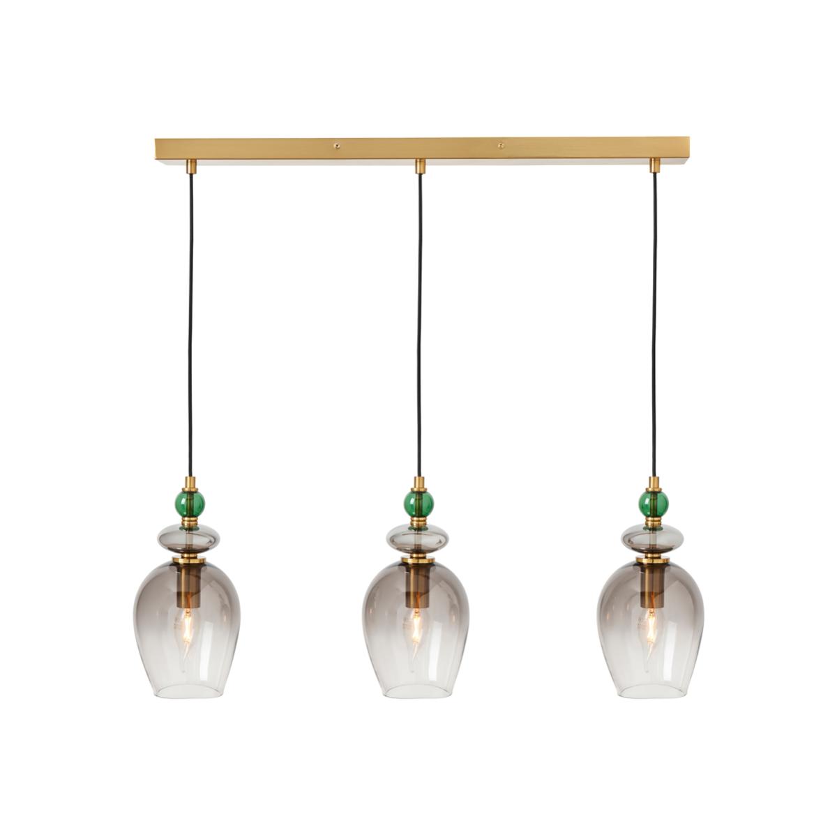 Seline Green 3 Light Diner Pendant, Satin Brass