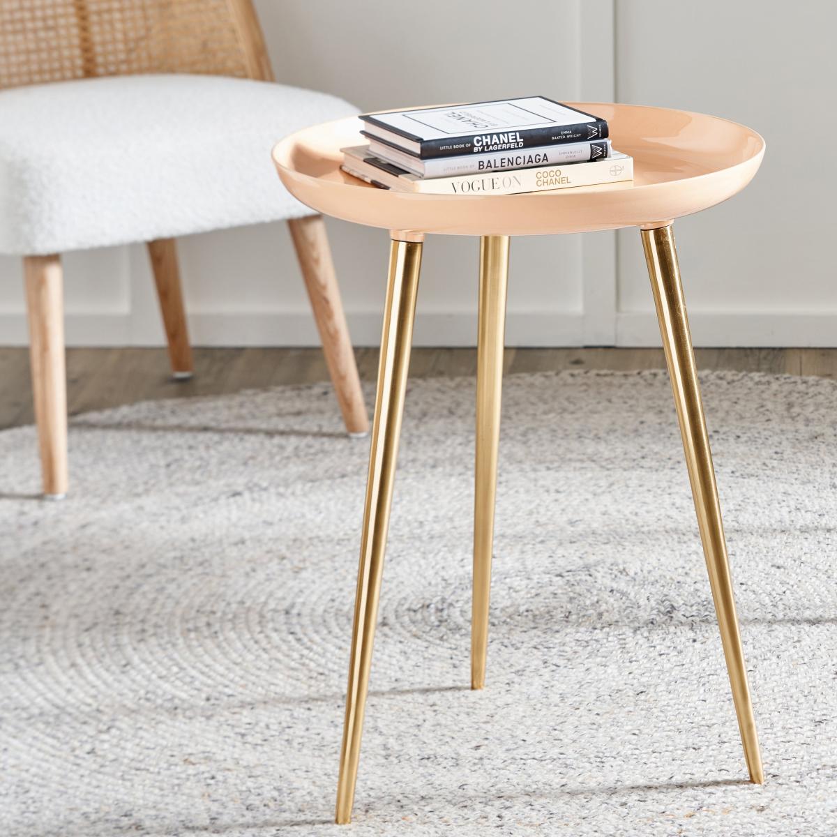 I’m a fan of this little apricot table for its softly rounded tray top and slim brass-tone legs - it adds a hint of colour without overwhelming a space. It works especially well in Scandi or modern-contemporary interiors, and can also inject a subtle glam note into a neutral scheme. Styling tips: use it as a bedside or sofa-side surface, keeping the top clear except for one or two objects - a sculptural vase, a book and perhaps a small plant. Pair it with natural-fibre rugs and woven chairs to balance the metal finish, or contrast it against deep blues and greens for a richer look.