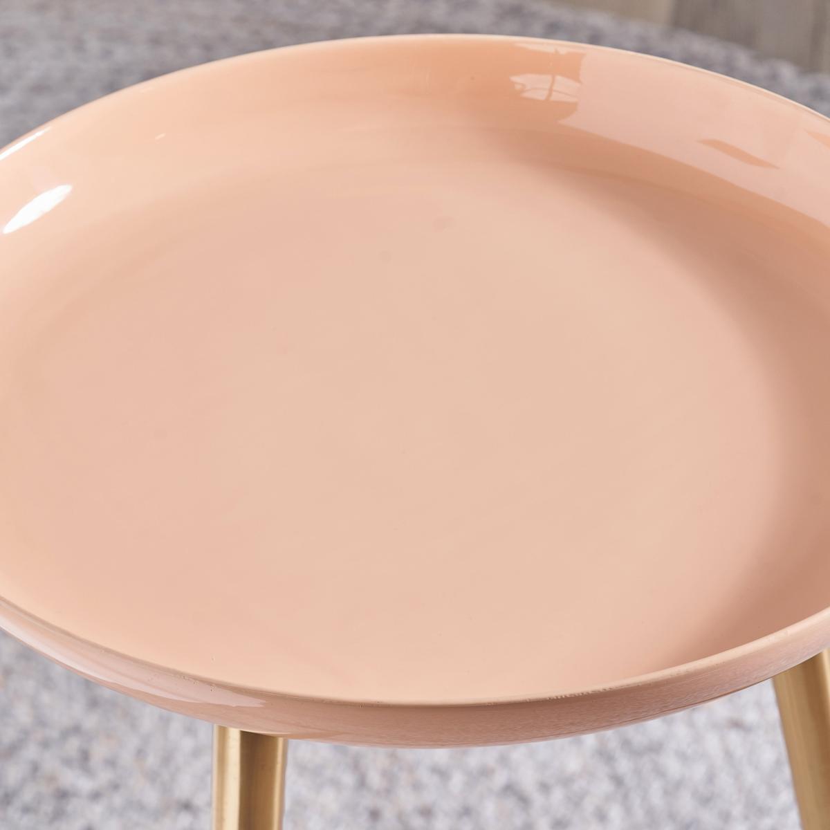 * Metallic legs* Enamelled tabletop* Crafted in India The table's cast metal metallic legs provide sturdy support and a luxurious feel, while the colourful enamelled tabletop offers a striking contrast that brightens up any room. This side table is perfect for adding a touch of personality to your living space, whether used to display decorative items or as a stylish spot for your coffee cup.