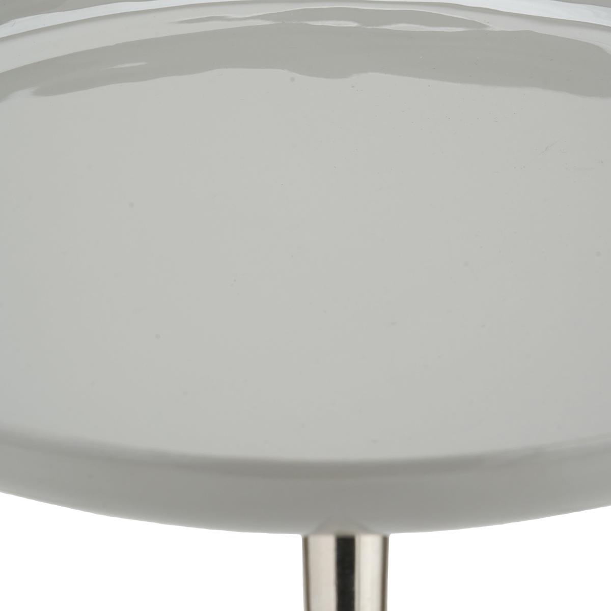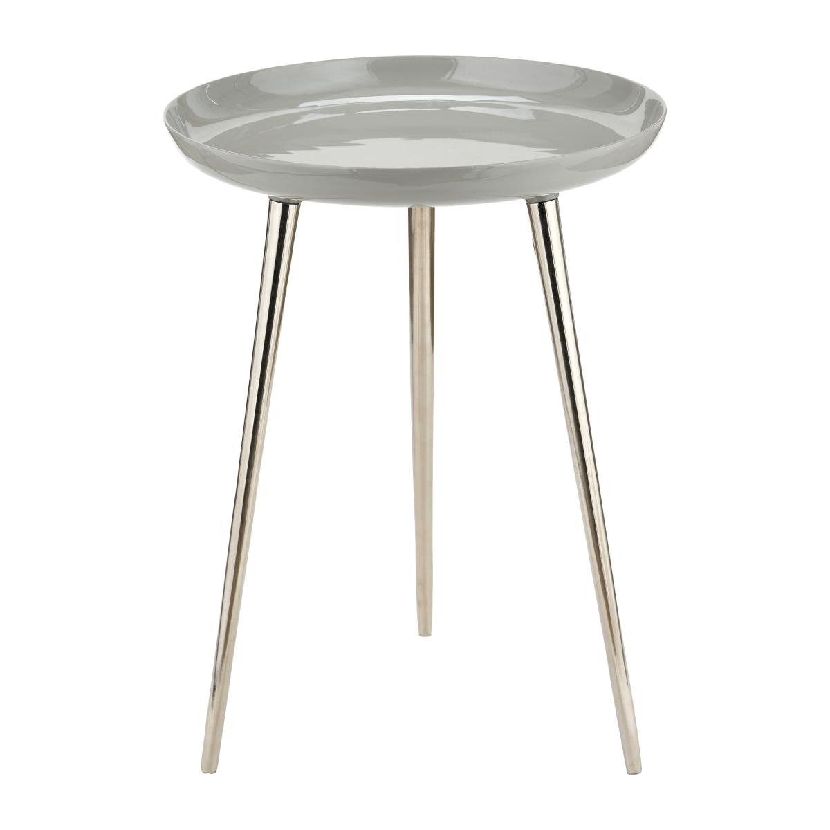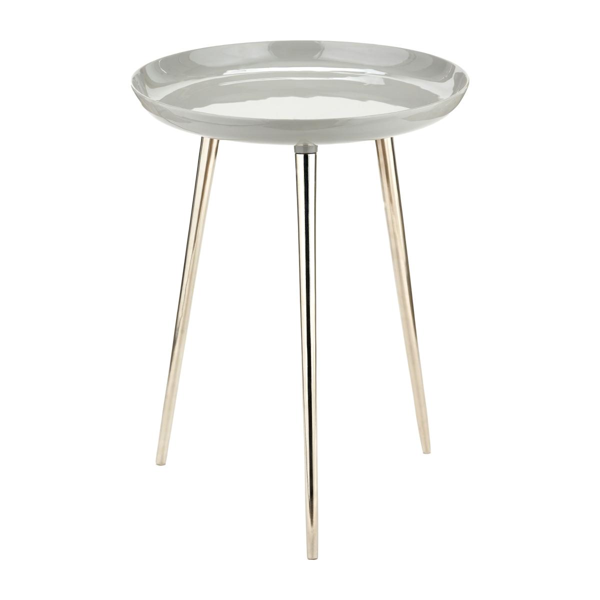 * Metallic legs* Enamelled tabletop* Crafted in India The table's cast metal metallic legs provide sturdy support and a luxurious feel, while the colourful enamelled tabletop offers a striking contrast that brightens up any room. This side table is perfect for adding a touch of personality to your living space, whether used to display decorative items or as a stylish spot for your coffee cup.