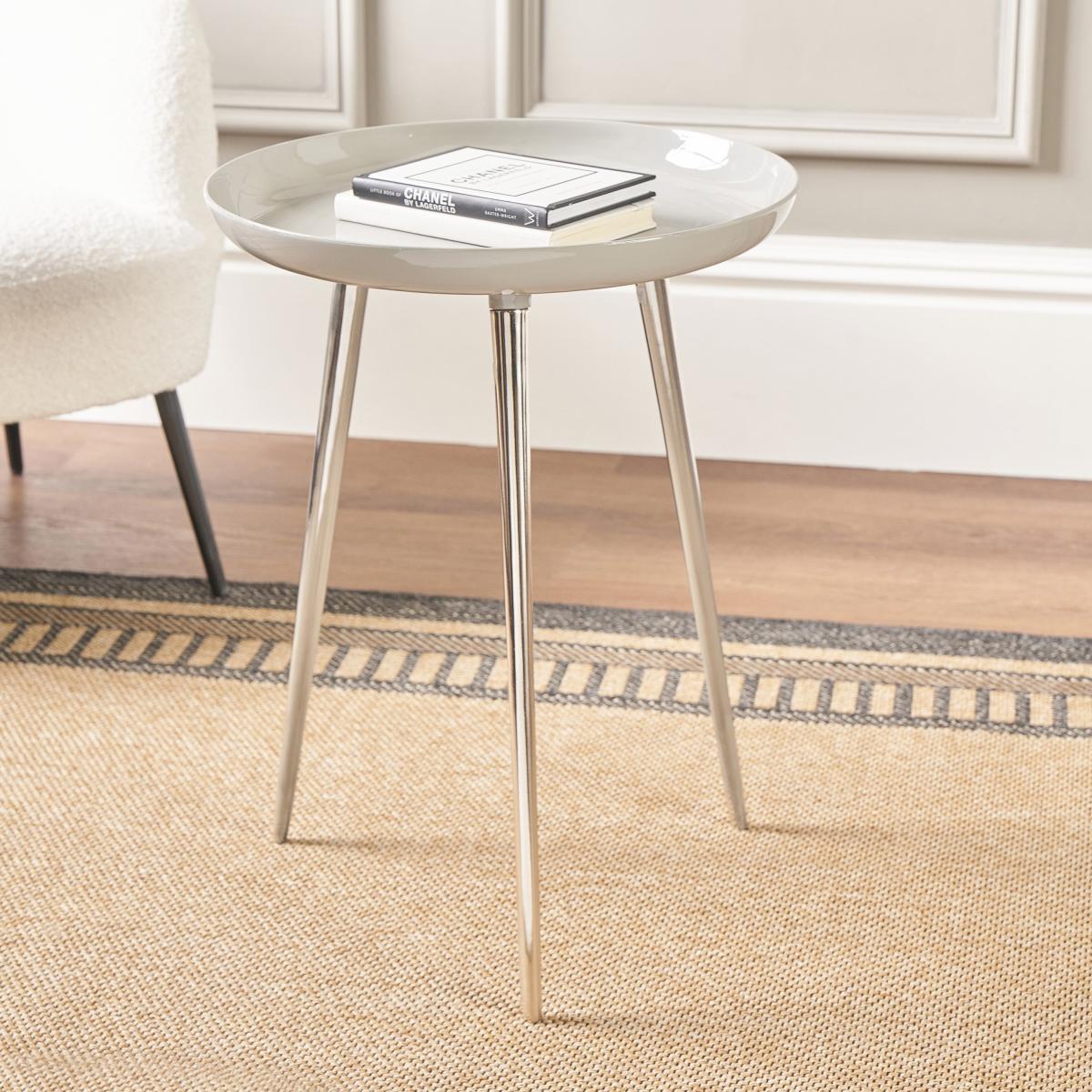 I’m a fan of the Seline side table in grey for its pared-back metal finish and slim tripod base - it brings a touch of modern simplicity without feeling cold. It sits comfortably in both minimalist and industrial schemes, and its neutral tone makes it an ideal pick beside a low-profile sofa or as a compact bedside surface. For styling, keep the top uncluttered: try a small stack of art books, a single sculptural vase or a neat tabletop lamp in a contrasting hue. Its raised edge also helps contain objects, so it works equally well in a snug reading nook or a hallway when paired with a tall mirror overhead.