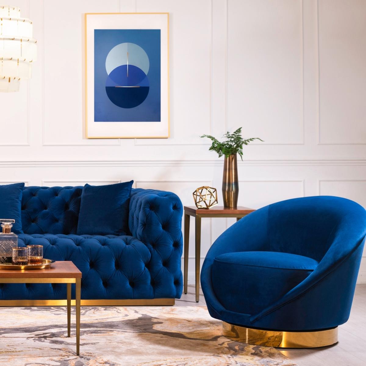 I love the navy blue swivel chair because it offers a striking yet versatile addition to various interiors. Its rounded shape and plush upholstery bring a contemporary touch, making it ideal for living rooms, bedrooms, or even home offices. It works particularly well in spaces that embrace colour blocking or where you want an accent piece to add depth without overwhelming the overall palette. A practical styling tip is to pair it with lighter or neutral surrounding tones to make the navy pop or combine it with metallic accents, like brass or gold, to enhance its modern vibe. This chair is perfect for creating a cosy reading nook or a stylish corner for casual conversations.