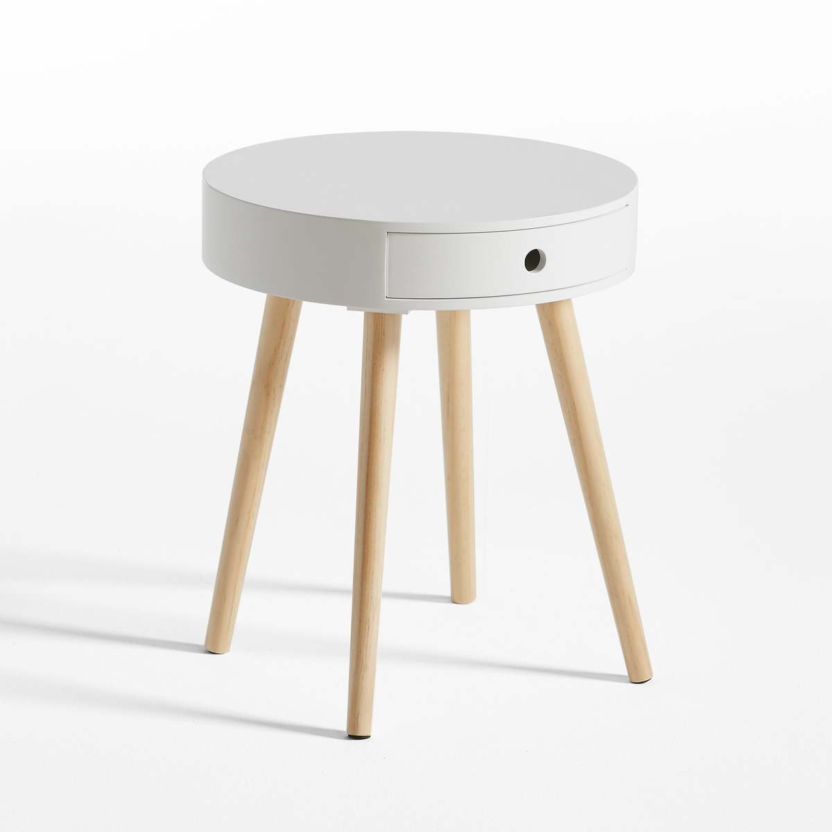 Everyone will admire this unusual round bedside table, inspired by the simplicity and modernity of Scandinavian design.