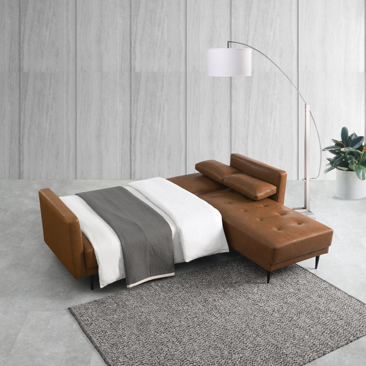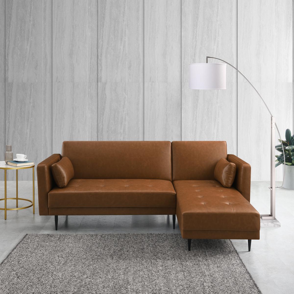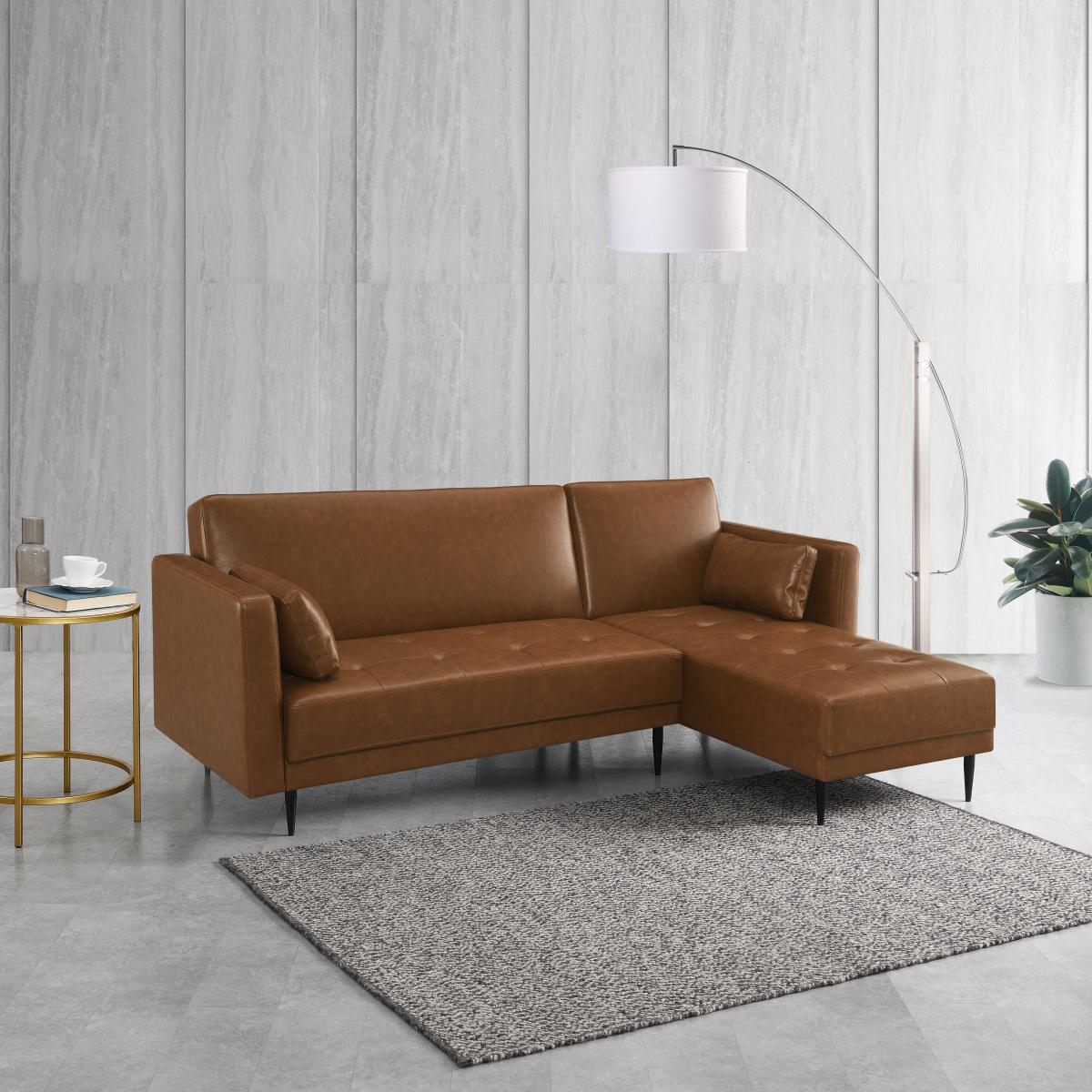 Selma Faux Leather Corner Sofa Bed Faux Leather Tan