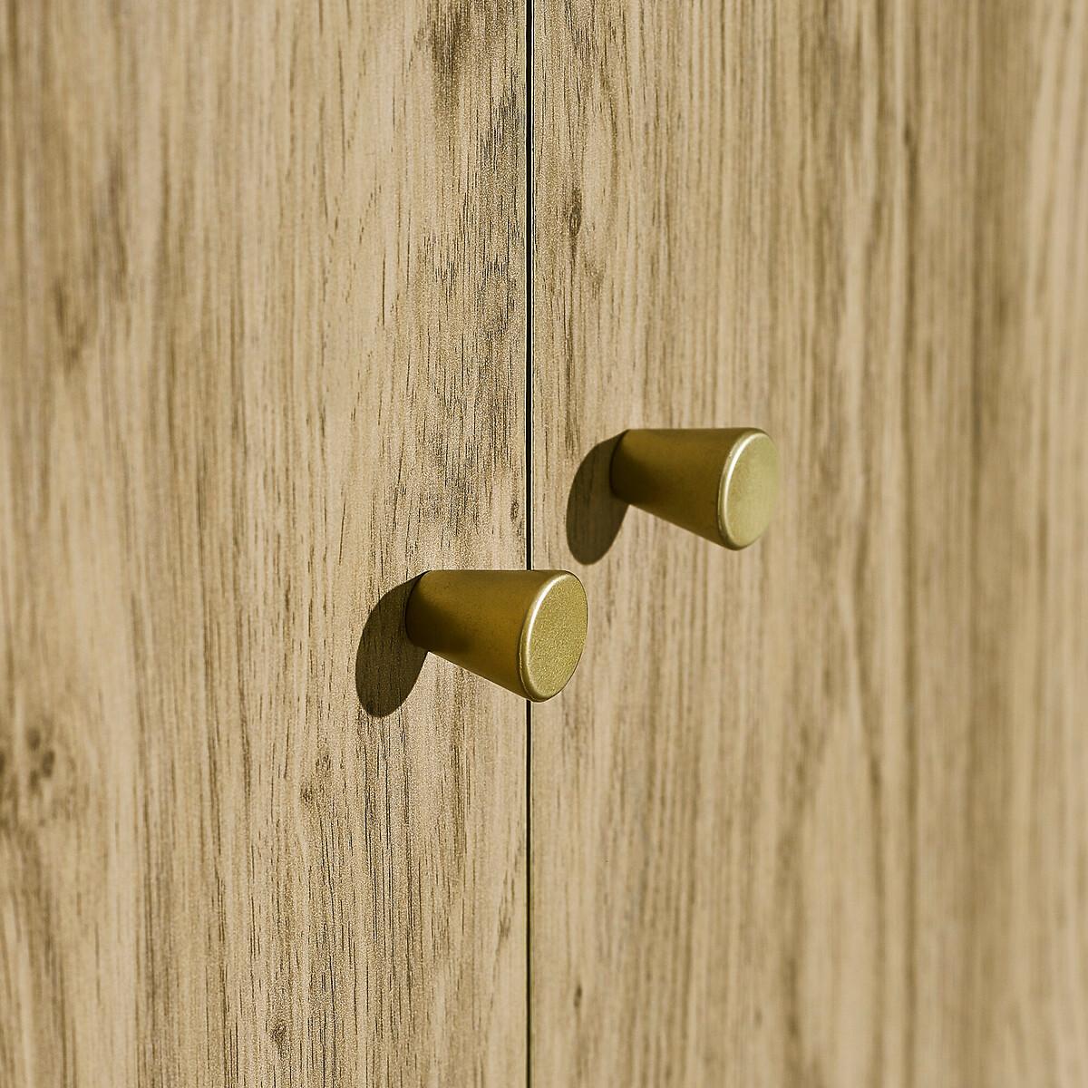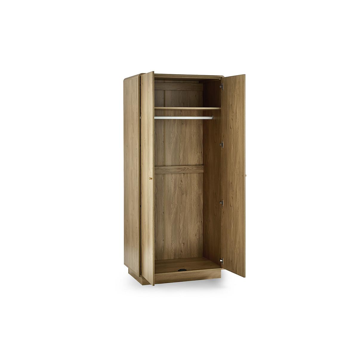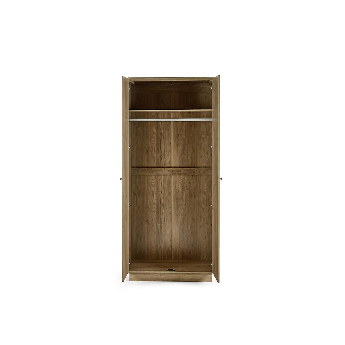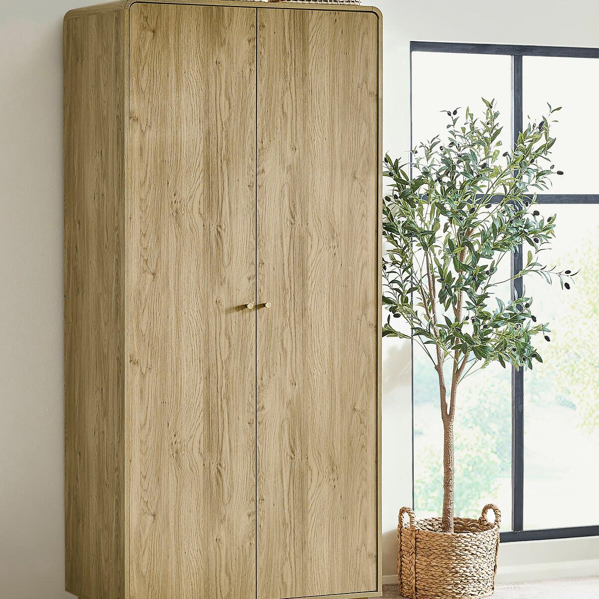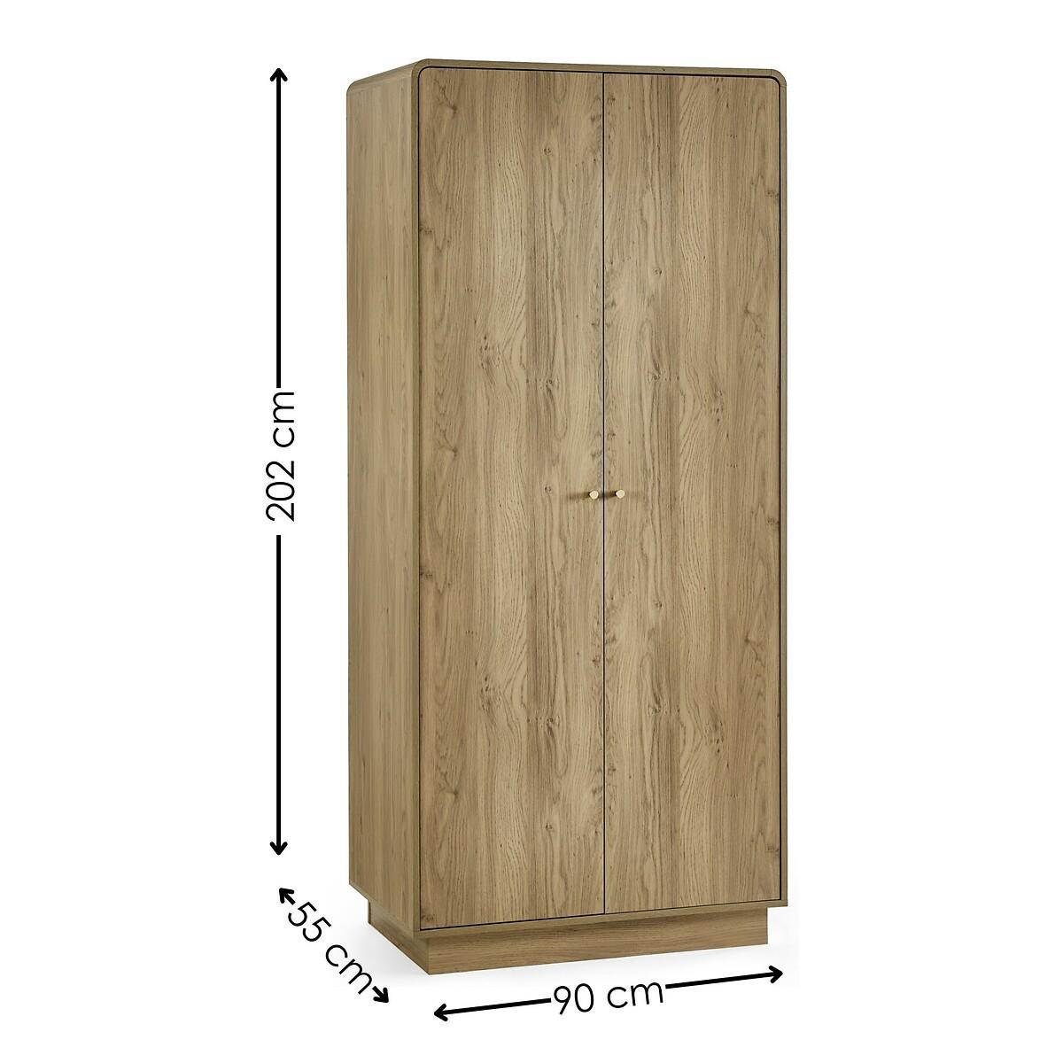 Meet Seluna — storage that looks as good as it works. With its wood-effect finish and gently curved edges, this 2 door wardrobe brings a soft, natural feel to your bedroom. Soft curves keep things looking sleek, while the gold-tone handles add just the right amount of glam. Inside, there’s plenty of space with a hanging rail and shelving to keep clothes, shoes and accessories neatly sorted. Product Details • Hanging rail • Shelving compartment • Sleek gold tone handles • Warm wood finish • Curved edges • Full assembly required • 12 month manufacturers warranty • Care advice - Wipe with a clean damp cloth. Product Composition - 95% Wood 3% Metal 2% Plastic. Product Dimensions - 90 cm x 55 cm x 202 cm , Weight - 66 KGParcel 1 Packaged Dimensions - 100 cm x 62 cm x 11 cm, Weight 24 KGParcel 2 Packaged Dimensions - 201 cm x 62 cm x 9 cm, Weight 46 KGThis product will be dispatched by one of our trusted suppliers. You’ll be contacted by their selected courier about your delivery. Please note: this product cannot be delivered to all Offshore Islands, Northern Ireland or Republic of Ireland.