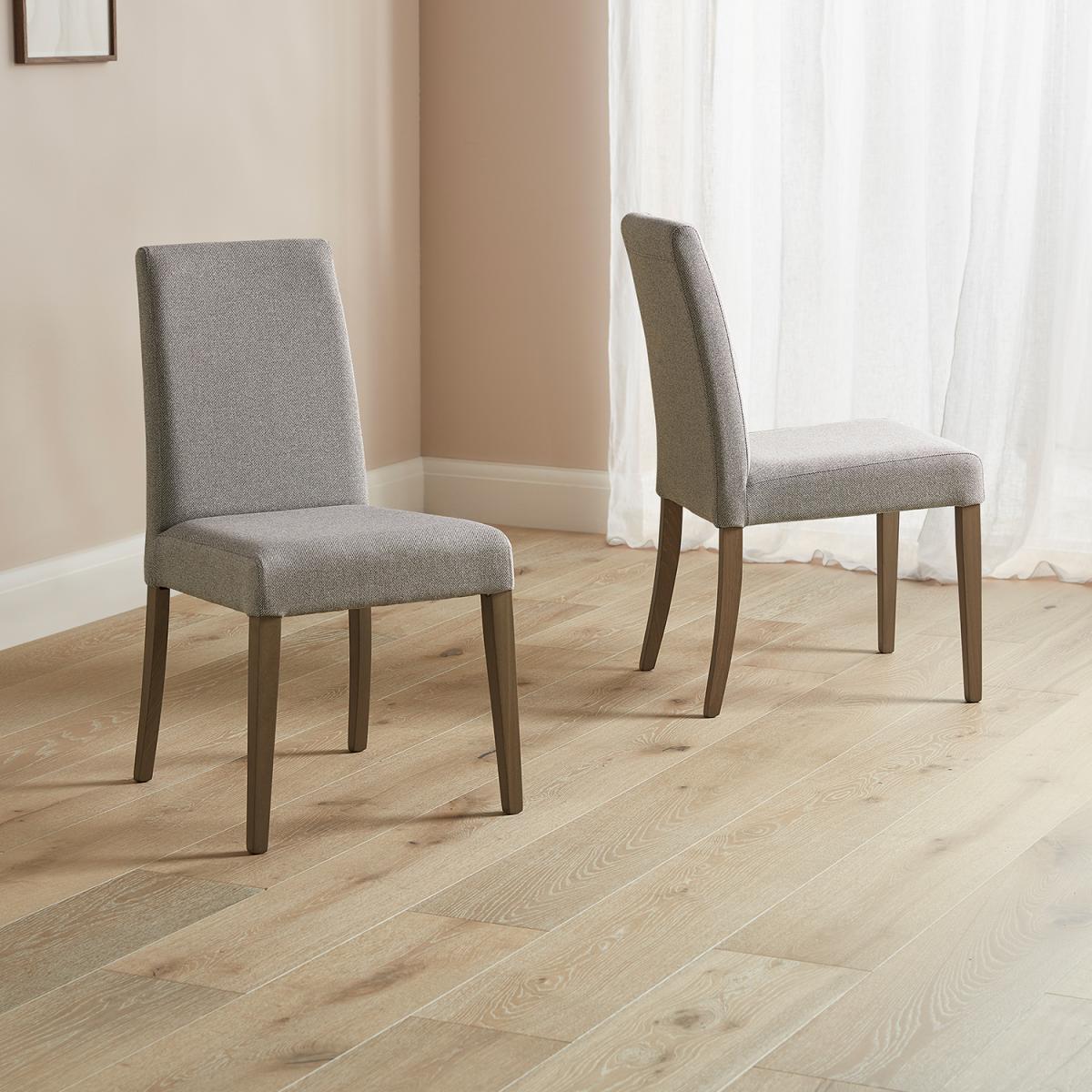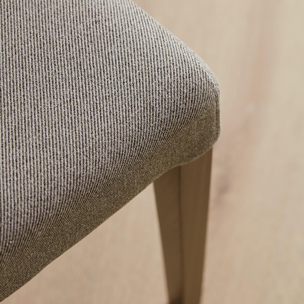 Our all-new. Selwood. Dining chair range comes with choice as standard. With five fabrics and two oak-finished wood shades to choose from we’re hoping to ready your dining table with the seating it deserves. This range of upholstered dining chair is a beautiful all fabric deeply padded high back option for hours of entertaining, daily use and everything in between. This dark wood option represents a lovely broody combination with the neutral tone of the mushroom. This fabric is all synthetic, chosen for its outstanding tactile feel and durability – it’s also largely anti-staining. A timeless chair ready for modern households that’s truly easy to combine with any number of dining ranges.